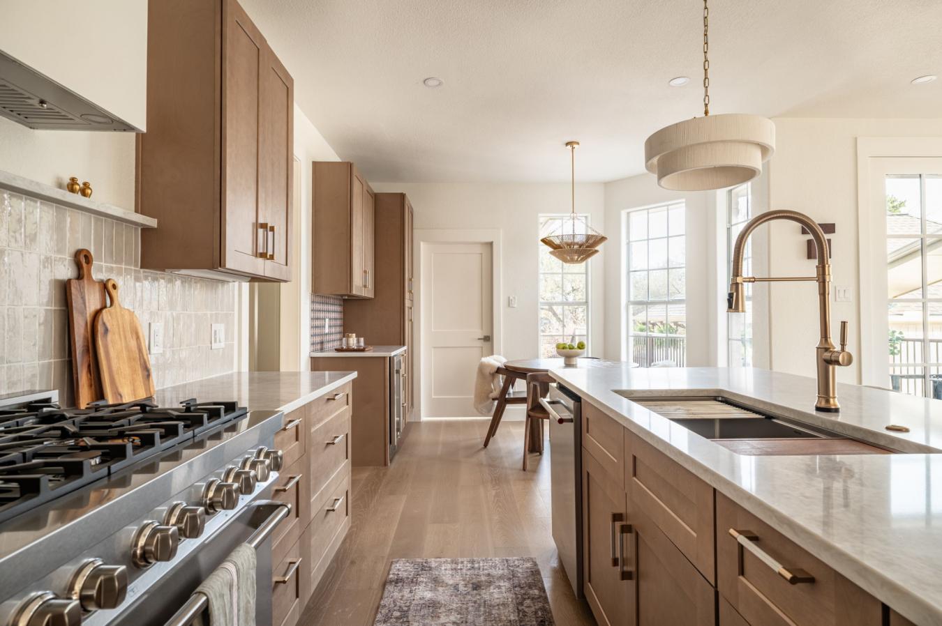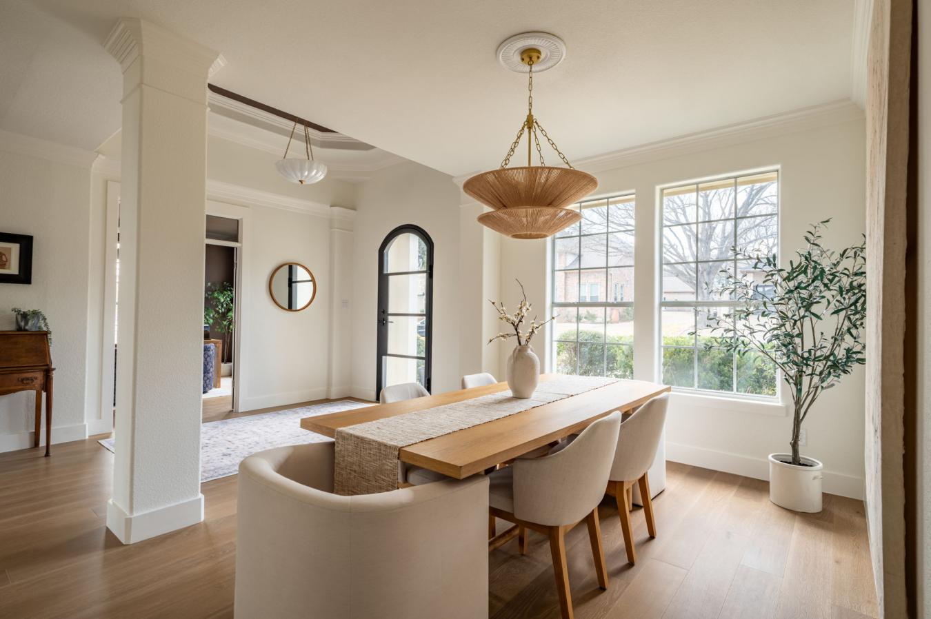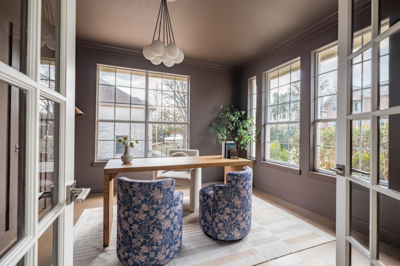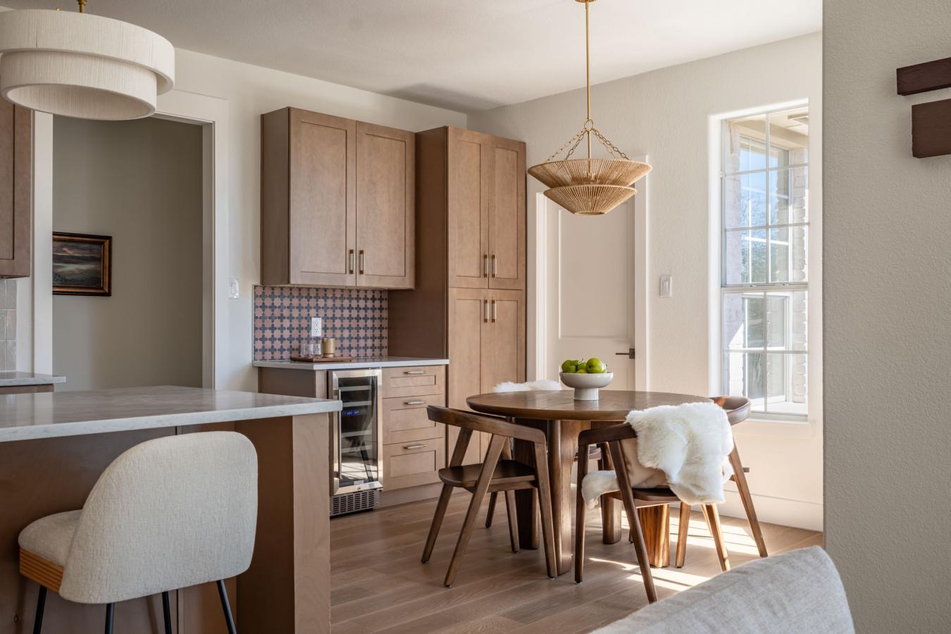 Blending French Chateau inspired elegance with warm contemporary design, this captivating, remodeled single-story residence offers a dramatic, light-filled home office in addition to four bedrooms, all nestled within one of Northwest Austins most desirable enclaves-Jester in Austin-known for its scenic Hill Country setting, peaceful atmosphere, welcoming community, and top-rated schools. Classic architectural lines and inviting curb appeal set the tone for what awaits inside. Reimagined by Making Modern Home, the refined interiors reflect an effortless, quietly luxurious feel-elegant yet comfortable, elevated yet entirely livable. A grand foyer entered through a custom steel door opens to a sophisticated dining room and a richly appointed private office framed by French doors and a transom, creating an inspiring and light-filled workspace. The great room is bathed in natural light and seamlessly connects to the outdoors through a striking wall of simulated divided-light French doors. An elegant brick fireplace, integrated TV nook, charming breakfast area, and thoughtfully designed bar create spaces that feel both curated and effortless. At the heart of the home, the chefs kitchen opens beautifully to the great room and features warm wood cabinetry, Taj Mahal quartz countertops, handcrafted zellige tile, a professional-style 36" dual-fuel stainless range, and a generous island designed for gathering. The open layout enhances the homes airy, expansive feel while maintaining intimacy and warmth. Soft neutral palettes, curated designer lighting, wide-plank flooring, and elegant moldings layer natural textures with clean modern finishes. The result is a home that feels cohesive, intentional, and quietly luxurious without being overstated. The expansive primary suite offers a private, hospitality-inspired retreat with direct access to the deck and serene canyon views. A spacious walk-in closet connects seamlessly to the spa-like bath, complete with a generous walk-in shower, freestanding soaking tub, and dedicated linen storage. Three additional bedrooms provide flexibility for family, guests, or creative pursuits. Outdoors, the generous yard captures beautiful canyon views and offers ample space for a future pool. A large bi-level composite deck provides low-maintenance entertaining areas ideal for gathering or relaxing beneath the Hill Country sky. A detached garage adds character and long-term potential, with the opportunity for a future guest apartment or studio above (buyer to verify). Mature landscaping, modern steel edging, and thoughtfully integrated stonework complete the setting while preserving the homes seamless connection to its natural surroundings. Refined yet relaxed, architectural yet inviting, this exceptional Jester residence embodies elevated Austin living-where European influence meets contemporary Hill Country sophistication.