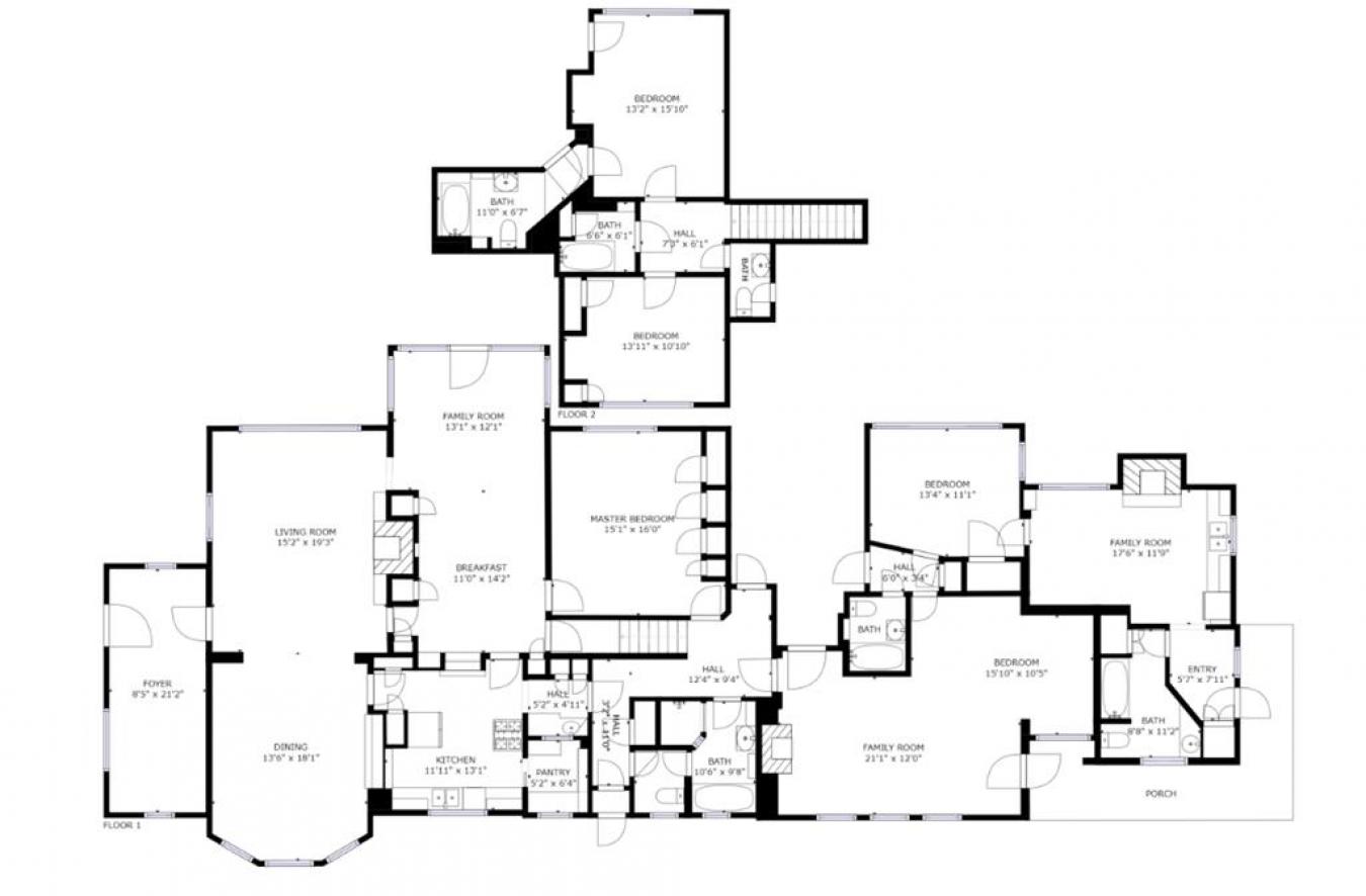 See 3D Virtual Walk-thru Video! One of the grandest old homes in Fredericksburg! Built in 1923 by architect Edward Stein, the home is unusually large for a brick bungalow. Great for entertaining. Includes 5 bedrooms and 5 baths in the main home PLUS an office. The guesthouse is a large 1 bedroom 1 bath.
