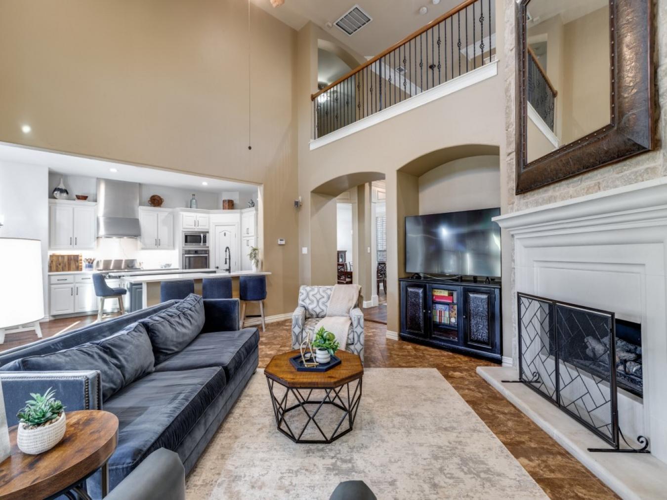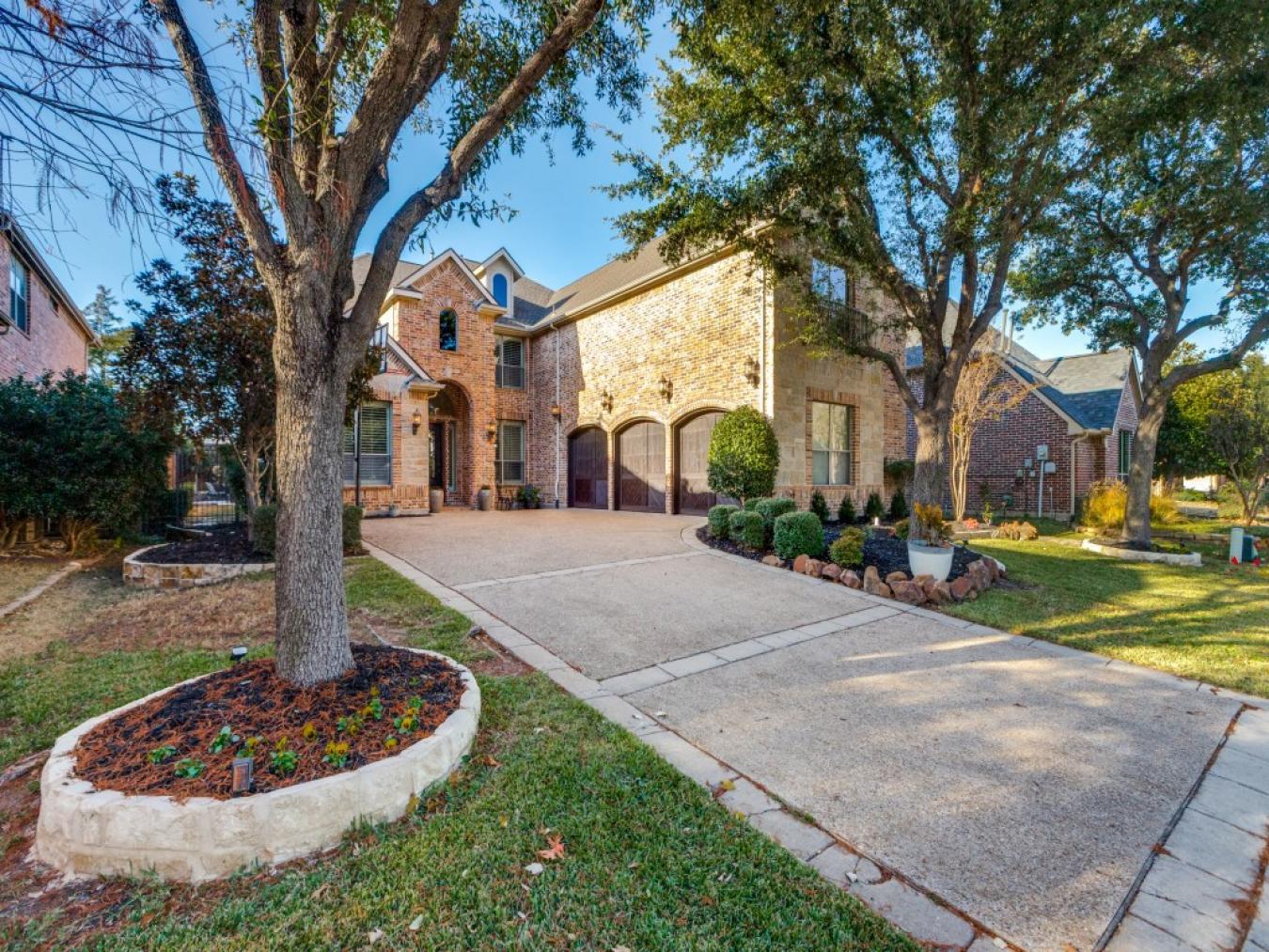 Exquisite Mediterranean estate perfectly positioned on an expansive corner lot and appointed with a sparkling pool, spa, sport court, extended covered patio, and dedicated dog run. A dramatic two-story foyer introduces a sweeping wrought-iron staircase and is gracefully framed by a private study, elegant dining room, and formal living area. The serene downstairs primary suite offers a spacious sitting area and a romantic see-through gas fireplace, creating the ultimate retreat. Crafted for culinary excellence, the gourmet kitchen showcases dual islands, a butlers pantry, a gas cooktop, stainless steel appliances, extensive cabinetry, and rich granite countertops. The impressive 20x20 family room centers around a focal gas fireplace and enjoys lots of natural light filtering in through picture windows overlooking the pool. An exceptional entertainment wing features a combined media and game room complete with a built-in aquarium-an immersive space designed for unforgettable gatherings. Upstairs, a wet bar opens to an elevated balcony with picturesque views of the backyard oasis and the adjacent greenbelt. Ideally located in Friscos highly sought-after Cheyenne Crossing, this home offers immediate access to The Star, Grand Park, the Dallas North Tollway, and SH 121. Walk to Allen Elementary and Legacy Christian Academy. Thoughtful updates include 2024 upstairs HVAC, 2022 carpet & whole-house interior paint, 2022 pool equipment, 30,000 in upgraded windows (2020), 2017 water heaters, and 2016 HVAC units, roof, and fence.