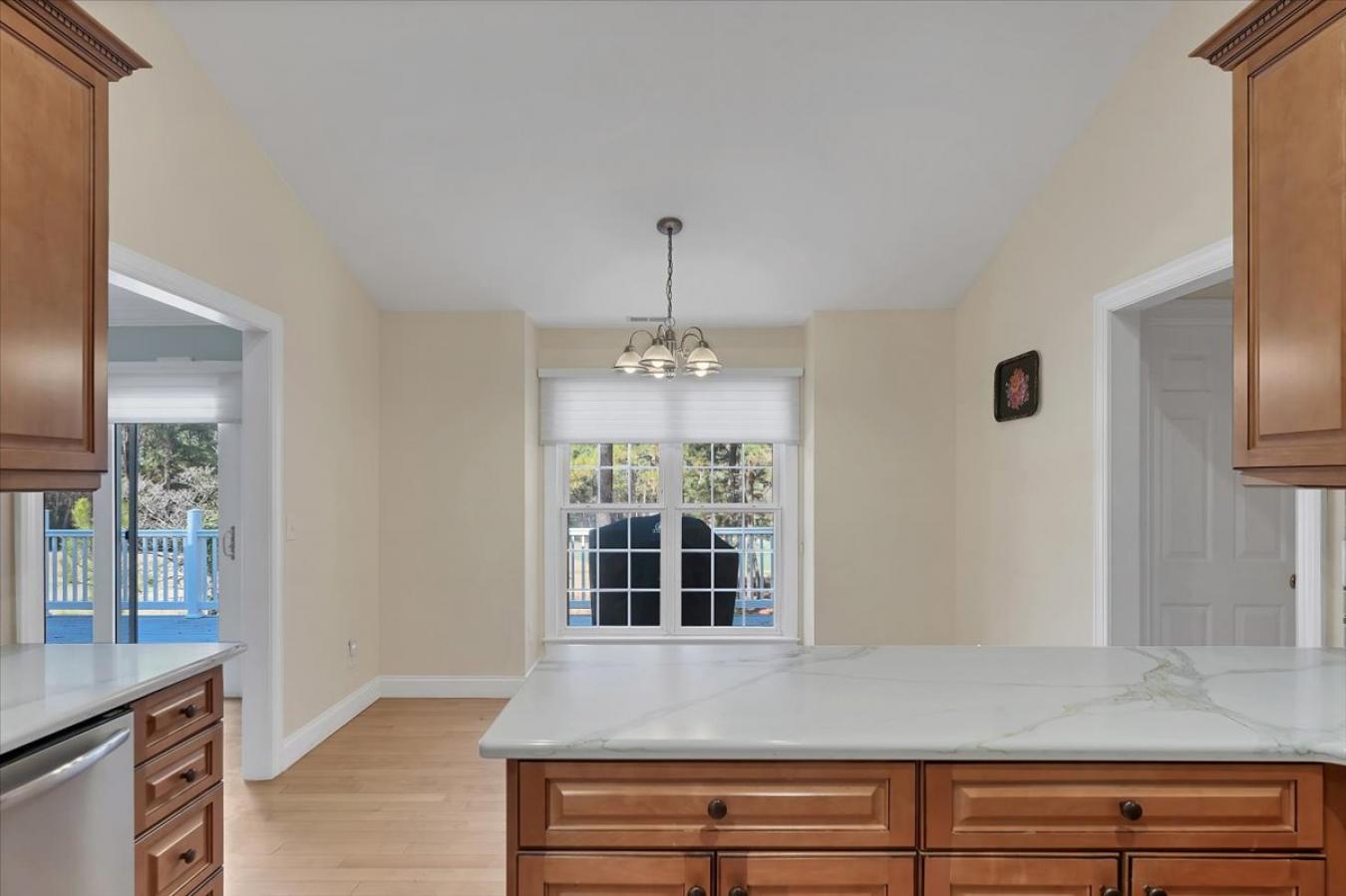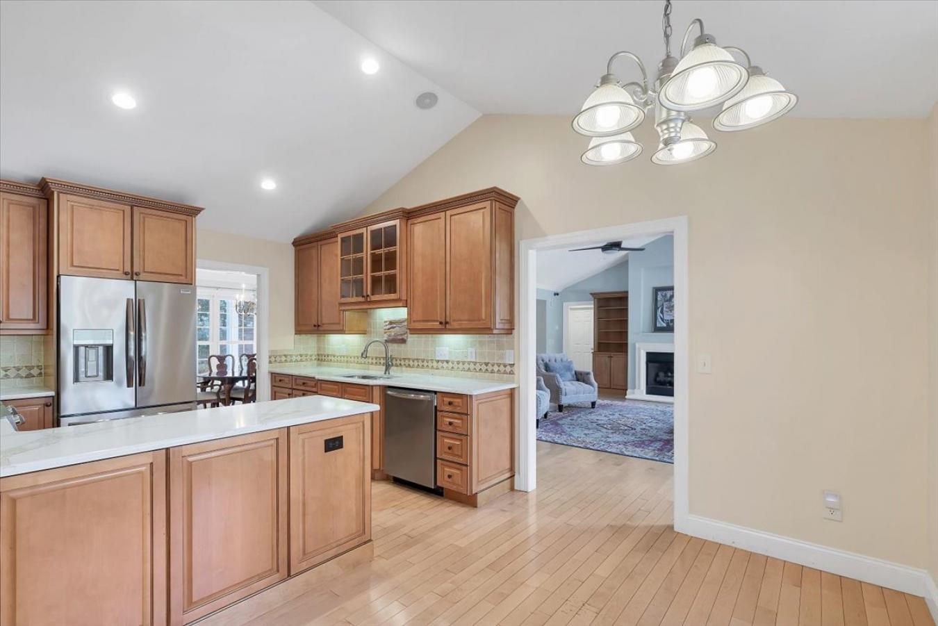Welcome to this beautifully updated home in Amberlys Village Square, offering nearly 4, 000 sq.ft. of thoughtfully designed living space across three level including a recently finished walk-out basement. Nestled on a private, fenced lot backing to wooded views, this home blends comfort and functionality in one of West Carys most desirable communities. The Main level features a Two-Story Foyer, and the heart of the home is the Kitchen showcasing freshly painted Cabinetry, NEW Quartz Countertops and Backsplash, updated Hardware, a brand-new Stove, and beautiful redone Hardwood Floors. The center Island offers seating and flows into a sunny breakfast area and cozy Family Room with Fireplace, all opening to a lovely screened porch overlooking the backyard. New carpeting, landscaping, lighting and Plantation Shutters. So many updates. Upstairs, youll find four Bedrooms, each with direct access to a Bathroom, including a spacious Primary Suite with a Sitting area, walk-in closet and updated Primary Bathroom. All bathrooms have new painted cabinets, and the Second Floor features new carpet and has been freshly paint throughout the home. The walk-out Basement, recently completed by the current owners, adds incredible versatility with a large Bonus/Flex room, 6th Bedroom or home office, and a full bath, ideal for guests, and a Media room, or multi-generational living. Step right out to the fenced-in Backyard, offering privacy and peaceful wooded views. Enjoy all the resort-style amenities including two Pools, Fitness Center, private Playground, Basketball courts, and access to nearby Greenways and walking trails. Located in the heart of West Cary, youre just minutes from top-rated schools, shopping, I-540, RDU Airport, RTP, and so much more.