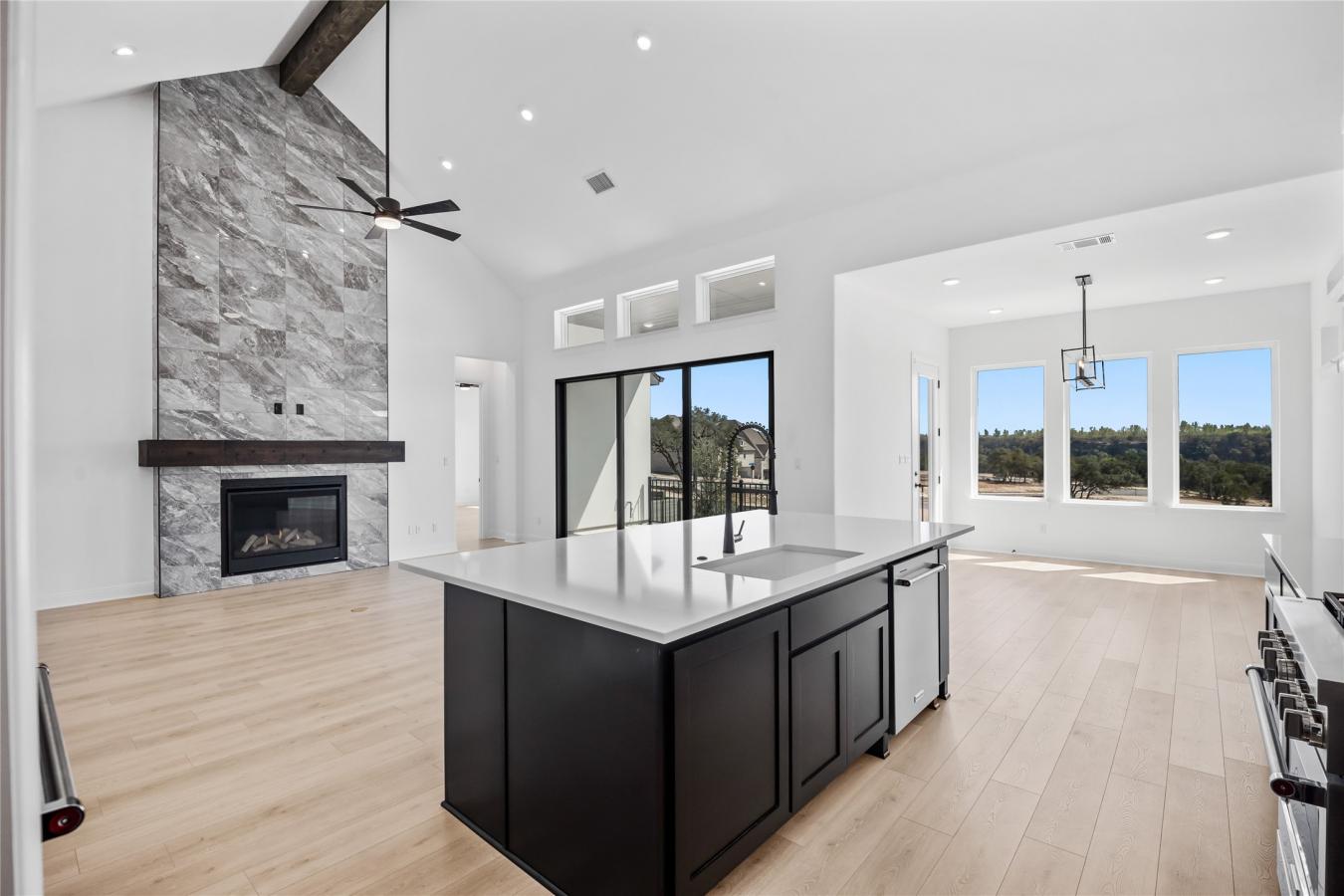 Built by Drees Custom Homes, this northwest-facing, 3,631 sq ft, two-story Sumlin floor plan is located within Georgetowns desirable Wolf Ranch community. This master-planned neighborhood offers convenient access to shopping, dining, and everyday essentials, along with resort-style amenities. Situated within the community, the home offers five bedrooms and four and a half baths, providing comfort and privacy throughout. A stone arched entryway and upstairs balcony create standout curb appeal from the front of the home. Upon entry, the foyer opens to a private home office with French doors and a formal dining room or additional living room set behind sliding barn doors. Just beyond, the main living area opens with wide-plank wood floors, soaring ceilings with exposed beams, and a dramatic floor-to-ceiling tiled fireplace. Expansive three-panel sliding glass doors open the living space to the outdoors, creating seamless indoor-outdoor living. The open-concept kitchen serves as the heart of the home, featuring an oversized island, abundant cabinetry, quartz countertops, and double ovens, with effortless flow into the casual dining area located just off the kitchen. The primary suite is accessed from the main living area and offers a peaceful retreat with a boutique-style ensuite featuring custom tile, a walk-in shower, dual recessed niches, a standalone tub, dual sinks, and a spacious walk-in closet. This wing of the home also includes a secondary bedroom with an ensuite bath, a powder room, a utility room, and a mudroom, all leading to a spacious three-car garage designed for everyday convenience and organization. On the upper level, you will find an additional living flex or game room, a private en suite bedroom, and two additional bedrooms sharing a full bath, offering excellent separation for living, entertaining, and relaxation. From soaring ceilings and designer finishes to versatile living spaces, this Wolf Ranch beauty checks every box for comfort, style, and location.
