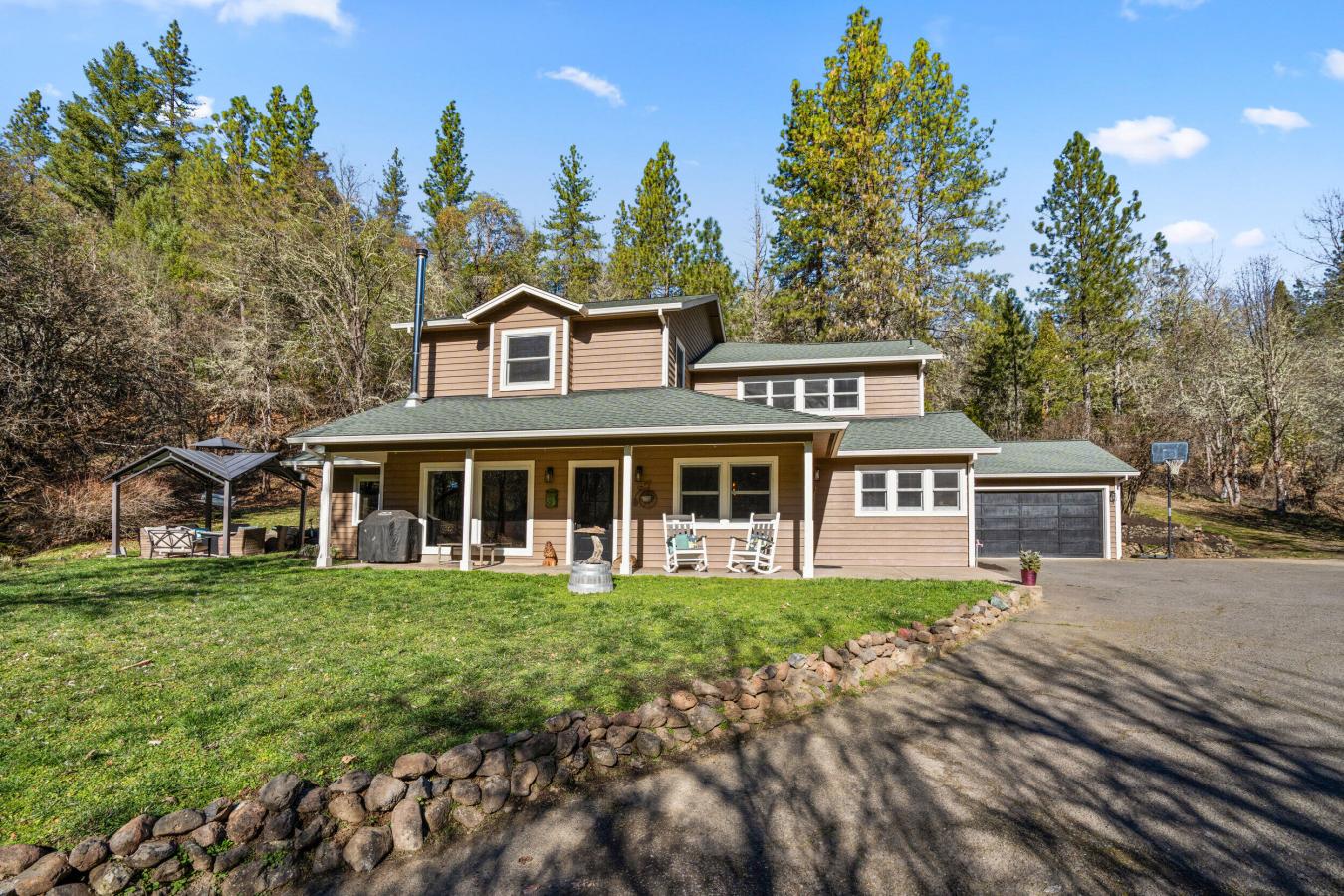 Your Southern Oregon luxury homestead dream awaits. This peaceful rural property offers a serene, self-sustaining lifestyle with fenced pastures, rolling hills, two seasonal creeks and irrigation rights off E Evans Ck from 1892. Organic gardens, fruit and nut trees make this property ideal for homesteading. Land is suited for livestock, theres room for dairy cows, cattle, horses and more. 3-stall 16 x 20 barn, covered hay storage, fenced arena plus a chicken coop complete the farmstead. Access over 1, 500 acres of BLM land, enjoy hiking, hunting, trail riding right from your backyard. The home blends country charm with modern comfort, featuring a custom kitchen with Viking cooktop, granite counters, island seating, double refrigerator, two pantries; two primary suites; custom windows; 9 and vaulted ceilings; and energy-efficient heating and cooling. Private, south-facing, and thoughtfully designed, this is a rare opportunity, turn-key and one of a kind! Schedule a showing toda