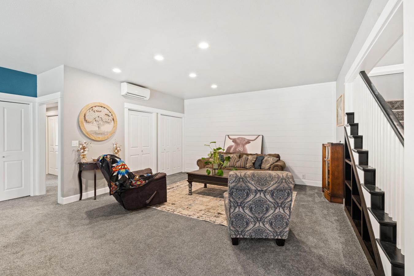 Welcome to this stunning smart-enabled home in the prestigious community of Riviera, where timeless style blends seamlessly with modern convenience. A bright OPEN-TO-BELOW foyer welcomes you with expansive windows and beautiful EXPOSED CEILING BEAMS that highlight the homes architectural charm. The main floor offers a dedicated OFFICE, a stylish powder room, and added ease with the NEST SMART SYSTEM. The gourmet kitchen serves as the centerpiece, showcasing UPGRADED APPLIANCES, a gas cooktop with chimney hood fan, an oversized island, and STRIKING FEATURE WALLS. The adjoining living room is warm and inviting with its GAS FIREPLACE and airy, light-toned finishes. Upstairs, a bright bonus room with CUSTOM FEATURE WALLS provides flexible living space. The west-facing kids bedrooms offer cozy SHIPLAP DETAILS, while the primary bedroom is a luxurious haven complete with its own FIREPLACE, TINTED WINDOWS, AUTOMATIC BLINDS, and a spa-like 5-PIECE ENSUITE with soaker tub, tiled shower, and a WALK-THROUGH CLOSET with BARN DOOR and CUSTOM ORGANIZERS. The FULLY DEVELOPED BASEMENT is designed for hosting and relaxation, featuring 9-ft CEILINGS, a WET BAR with BAR FRIDGE, a spacious THEATRE ROOM enhanced by UNIQUE BEAMS, and ABUNDANT STORAGE. Step into your west-facing backyard, PROFESSIONALLY LANDSCAPED with an ELEVATED COMPOSITE DECK and GLASS RAILINGS, PERGOLA, STONE GAS FIRE PIT, and mature trees lining the PIE-SHAPED LOT for enhanced privacy perfect for relaxing or entertaining. NOTABLE FEATURES: Multiple custom feature walls Brand-new air conditioning Automatic blinds & smart-home integration Engineered hardwood flooring West-facing, fully landscaped yard Experience the best of Riviera living surrounded by natural beauty, river pathways, and a true family-friendly environment.