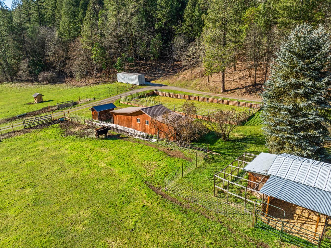 Your Southern Oregon luxury homestead dream awaits. This peaceful rural property offers a serene, self-sustaining lifestyle with fenced pastures, rolling hills, two seasonal creeks and irrigation rights off E Evans Ck from 1892. Organic gardens, fruit and nut trees make this property ideal for homesteading. Land is suited for livestock, theres room for dairy cows, cattle, horses and more.