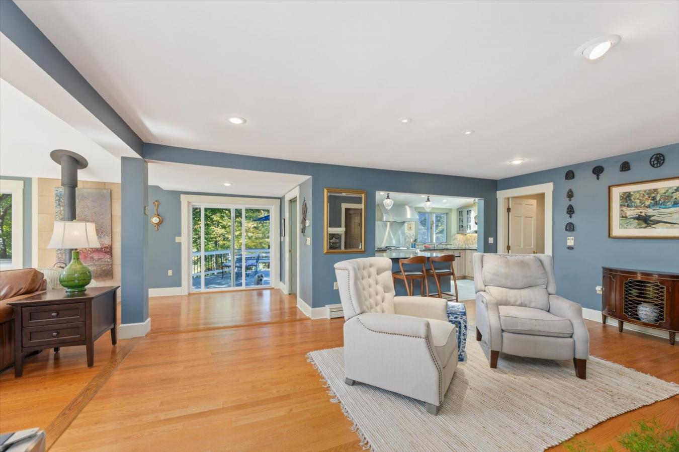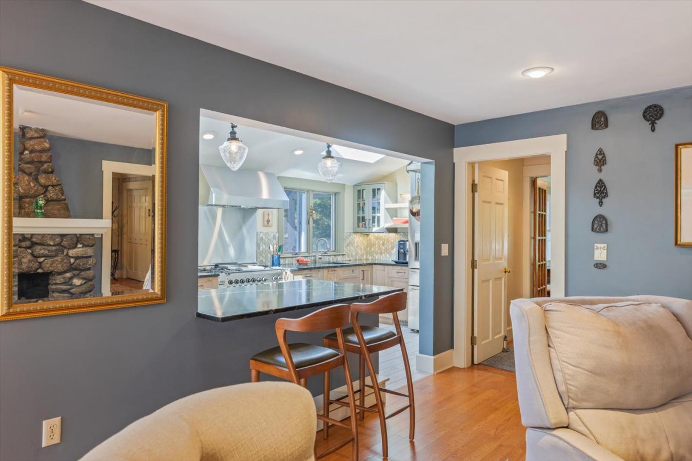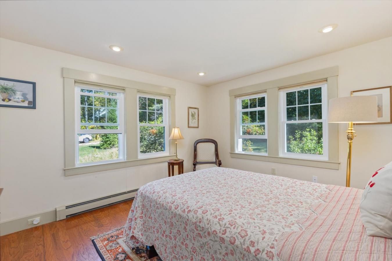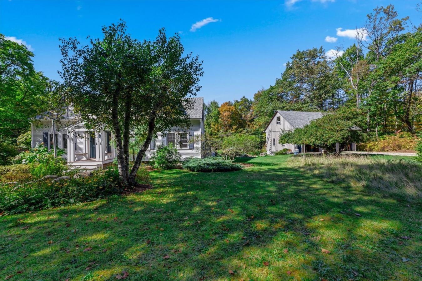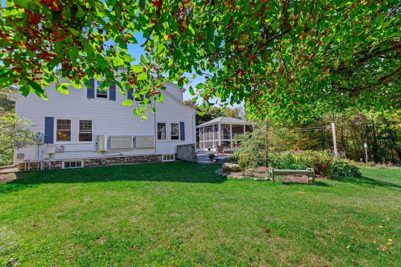 Welcome to 18 Antrim Road in Hancock, a spacious 1930 Cape-style home thoughtfully updated with contemporary flair. Offering over 3,200 sq. ft. of finished living space, this 5-bedroom, 3-bath residence is set on 2.8 acres in a private country setting with open fields, wooded surroundings, and paved road frontage. The light-filled interior features a large living room with a wood-burning fireplace, a generous dining room, and a bright kitchen designed for both function and style. Cathedral ceilings and abundant natural light highlight the homes character, while wood floors, tile, and quality finishes add warmth throughout. The primary suite includes its own full bath with soaking tub, and four additional bedrooms provide ample flexibility for family, guests, or office space. A partially finished walkout basement/garage with a family room expands the living area, and the home is equipped with modern comforts including a whole-house fan, generator-ready service, and a wood stove. Outdoor living and entertaining is easy with a deck with a screened-in gazebo, a barn, a shed, and plenty of space for gardening or animals. With an attached two-car garage plus additional driveway parking, convenience meets charm in this well-rounded property. Located in the Contoocook Valley school district and close to Hancock village, this retreat combines timeless New England character with contemporary updates-ideal for those seeking both comfort and room to roam.