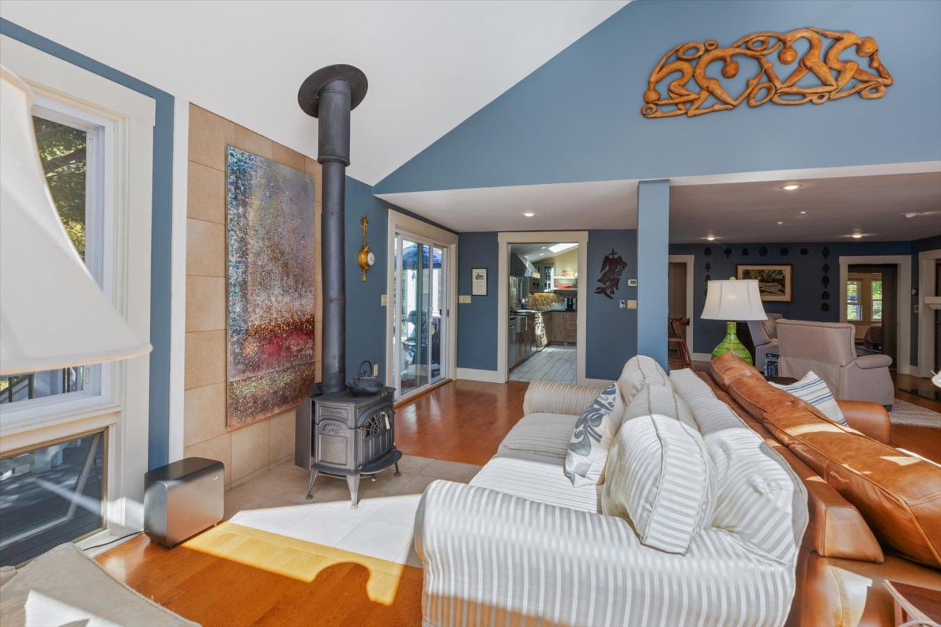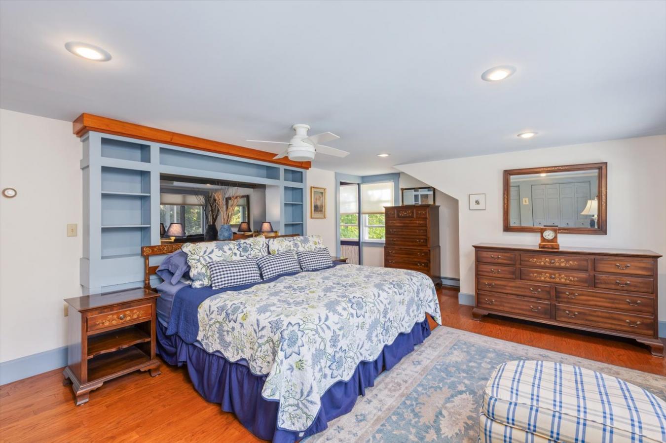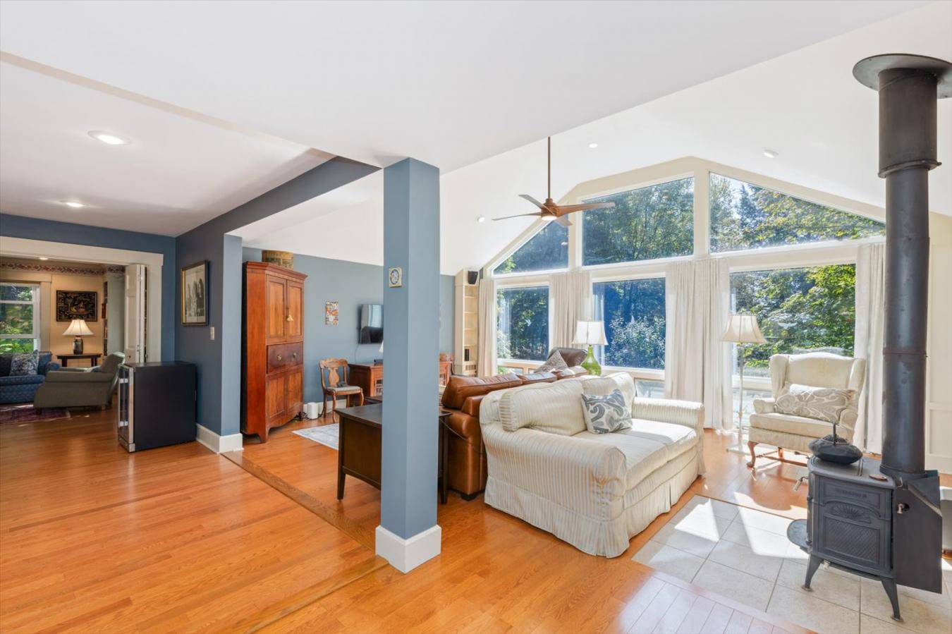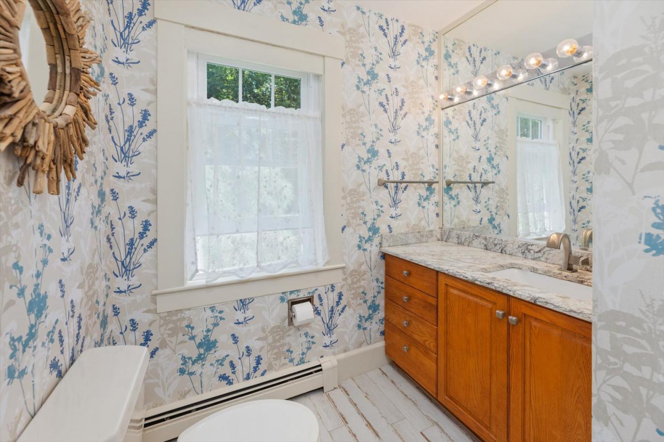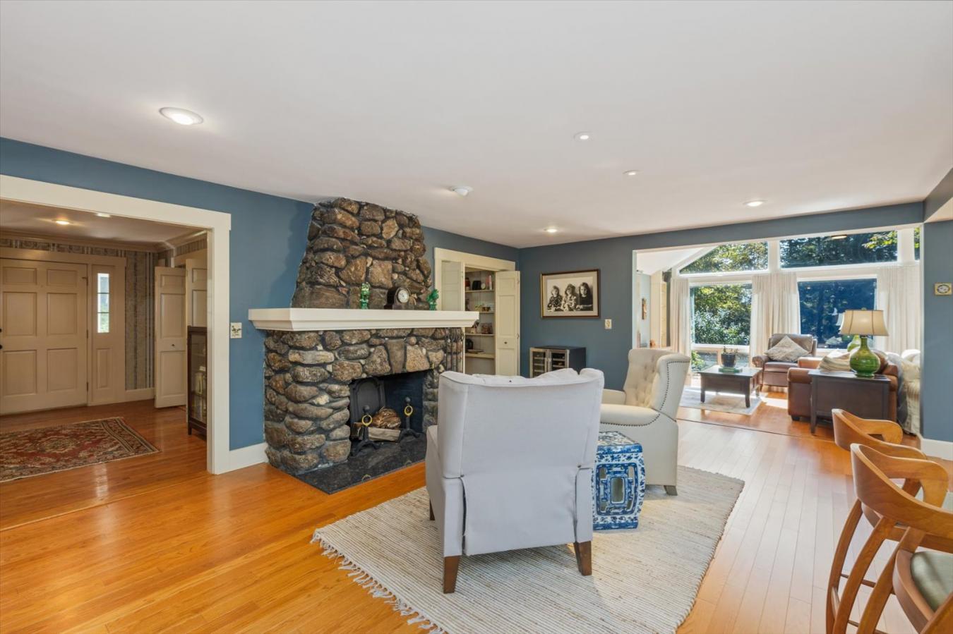 Welcome to 18 Antrim Road in Hancock, a spacious 1930 Cape-style home thoughtfully updated with contemporary flair. Offering over 3,200 sq. ft. of finished living space, this 5-bedroom, 3-bath residence is set on 2.8 acres in a private country setting with open fields, wooded surroundings, and paved road frontage. The light-filled interior features a large living room with a wood-burning fireplace, a generous dining room, and a bright kitchen designed for both function and style. Cathedral ceilings and abundant natural light highlight the homes character, while wood floors, tile, and quality finishes add warmth throughout. The primary suite includes its own full bath with soaking tub, and four additional bedrooms provide ample flexibility for family, guests, or office space. A partially finished walkout basement/garage with a family room expands the living area, and the home is equipped with modern comforts including a whole-house fan, generator-ready service, and a wood stove. Outdoor living and entertaining is easy with a deck with a screened-in gazebo, a barn, a shed, and plenty of space for gardening or animals. With an attached two-car garage plus additional driveway parking, convenience meets charm in this well-rounded property. Located in the Contoocook Valley school district and close to Hancock village, this retreat combines timeless New England character with contemporary updates-ideal for those seeking both comfort and room to roam.