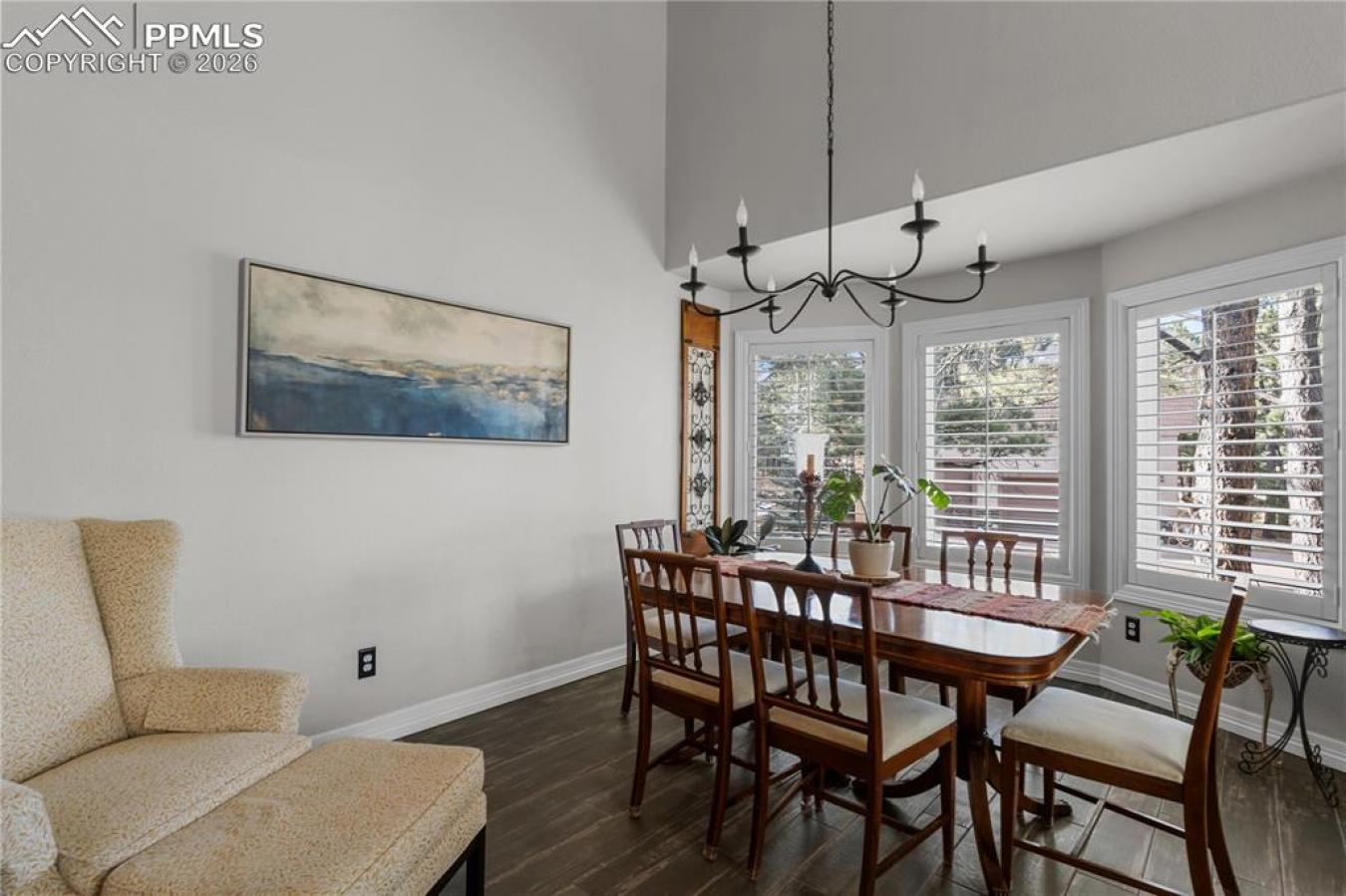 Welcome to Woodmoor Forest, where privacy, trees, and timeless architecture come together. Tucked at the end of a long, private driveway and set on nearly 0.60 acres of mature pines, this impeccably maintained 6-bedroom home offers the kind of setting that simply doesnt come along often. The curb appeal is undeniable-a beautiful approach through the trees, a quiet, established lot, and a sense of retreat from the moment you arrive. Inside, the main level flows effortlessly with formal living and dining spaces, an inviting family room, and an eat-in kitchen designed for both daily living and entertaining. The custom kitchen features stainless JennAir appliances and opens seamlessly to the show-stopping outdoor space. And this is where the home truly shines. An expansive deck overlooks the treed backyard, complete with a pergola and hot tub-a private sanctuary perfect for Colorado evenings, summer gatherings, or quiet mornings with coffee among the pines. Upstairs, the primary suite feels like its own retreat, complete with a fireplace, seating area, spa-inspired bath with jetted soaking tub, river rock walk-in shower, and generous walk-in closet. With six bedrooms, there is flexibility for home offices, guest rooms, fitness space, or creative studios-whatever your lifestyle requires. The finished walkout basement adds even more versatility, featuring two additional bedrooms, a full bath, and direct access to the backyard and hot tub. Located in desirable Woodmoor Forest with easy access to I-25, this home offers a convenient commute to both Denver and Colorado Springs while preserving the peaceful, wooded character that makes Monument so special. Nothing is needed here; simply move in and enjoy.