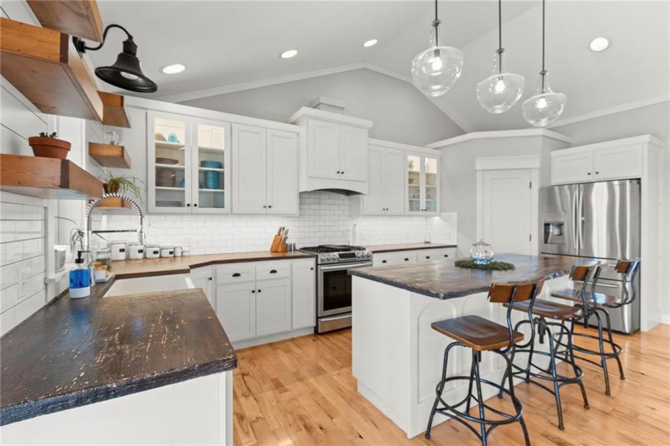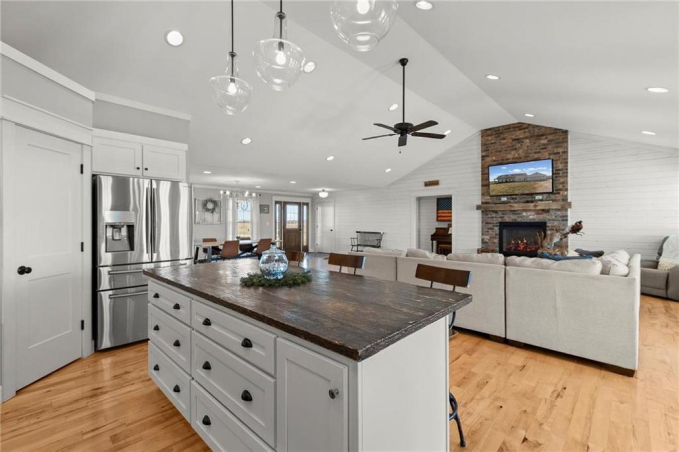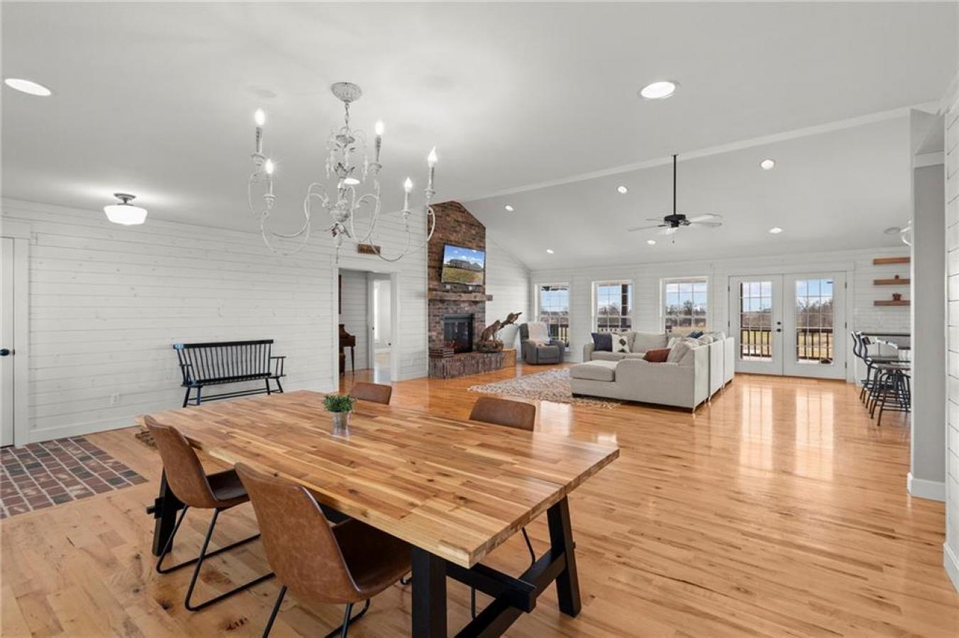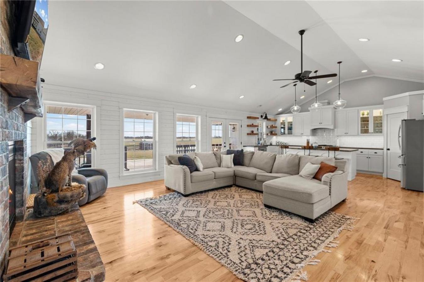 Nearly 4,000 sq ft of finished living space on 2.25 acres offers a true live-work property in rural Deepwater, Missouri. This property supports home-based business, multi-generational living, or remote work with fiber-optic internet and extensive infrastructure already in place. The main level features 3 bedrooms, including a spacious primary suite, two full bathrooms, and a half bath. Vaulted ceilings and a gas fireplace highlight the open living and dining area, connecting to a custom kitchen with live-edge wood countertops, custom cabinetry, and a walk-in pantry. A dedicated mudroom and laundry are located off the oversized attached two-car garage. The partially finished basement adds 3 additional bedrooms (two with egress windows), all with walk-in closets, a second family room, and a full bathroom, providing space for guests, extended family, or private office areas. The insulated steel-beam shop building is temperature controlled and currently configured for meat or deer processing but adaptable for workshop, storage, agricultural, or commercial use. It includes concrete floors, a walk-in cooler, an office, a kitchen area, laundry hookups, a full bathroom, its own 200-amp electrical service, solar panels, and covered lean-to parking. Outdoor amenities include an in-ground pool, hot tub, covered patio, and large covered front porch overlooking open countryside with no nearby neighbors. Additional improvements include a new HVAC system and dual water heaters. This property solves a problem most buyers have: choosing between workspace and home life. Here, you dont choose. You get both. A rare combination of luxury living, rural privacy, and operational infrastructure, all in one address in Deepwater.
