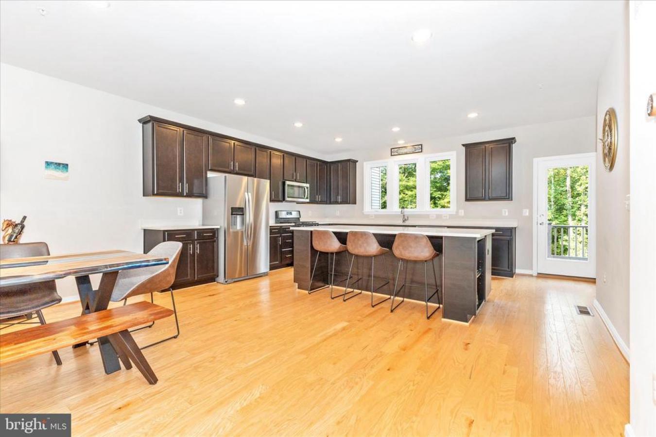 BETTER THAN NEW townhome: Located in the sought-after Watershed community, this fashionable 3-level townhome blends luxury features and comfort in a beautifully designed living space. A true PREMIUM location within the community, this home backs to a luxuriously private of mature hardwood trees. Very few homes in this community have that benefit. Enjoy a stylish kitchen with bright windows overlooking the rear view. Espresso contemporary cabinets topped with quartz, stainless steel appliances, and a large center island that opens to the dining and gathering rooms. Upstairs, the owners suite features a walk-in closet and spa-inspired bath with dual shower heads all overlooking that unique private view of peace. Two additional bedrooms and a hall bath complete the upper level. The fully finished walkout lower level allows plenty of space for a home office, gym, or guest suite. The 2-car garage is a convenient front entry with stairs to the main level of the interior. Gutter guards were installed in 2021. This home is in pristine condition. Watershed residents enjoy resort-style amenities including walking trails, playgrounds, pools, and a clubhouse, all just minutes from major commuter routes, shopping, and dining.