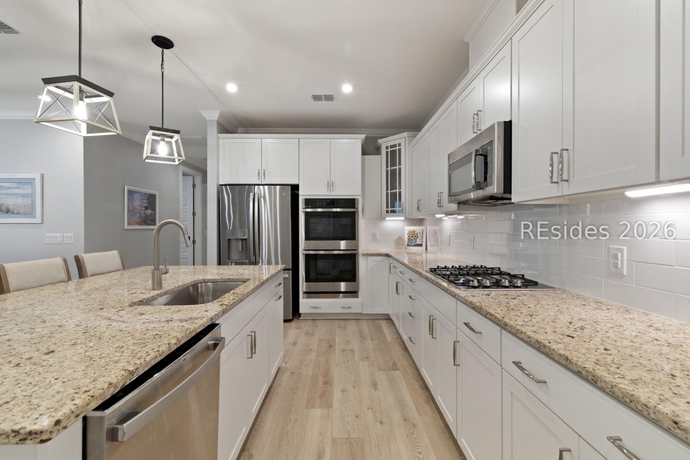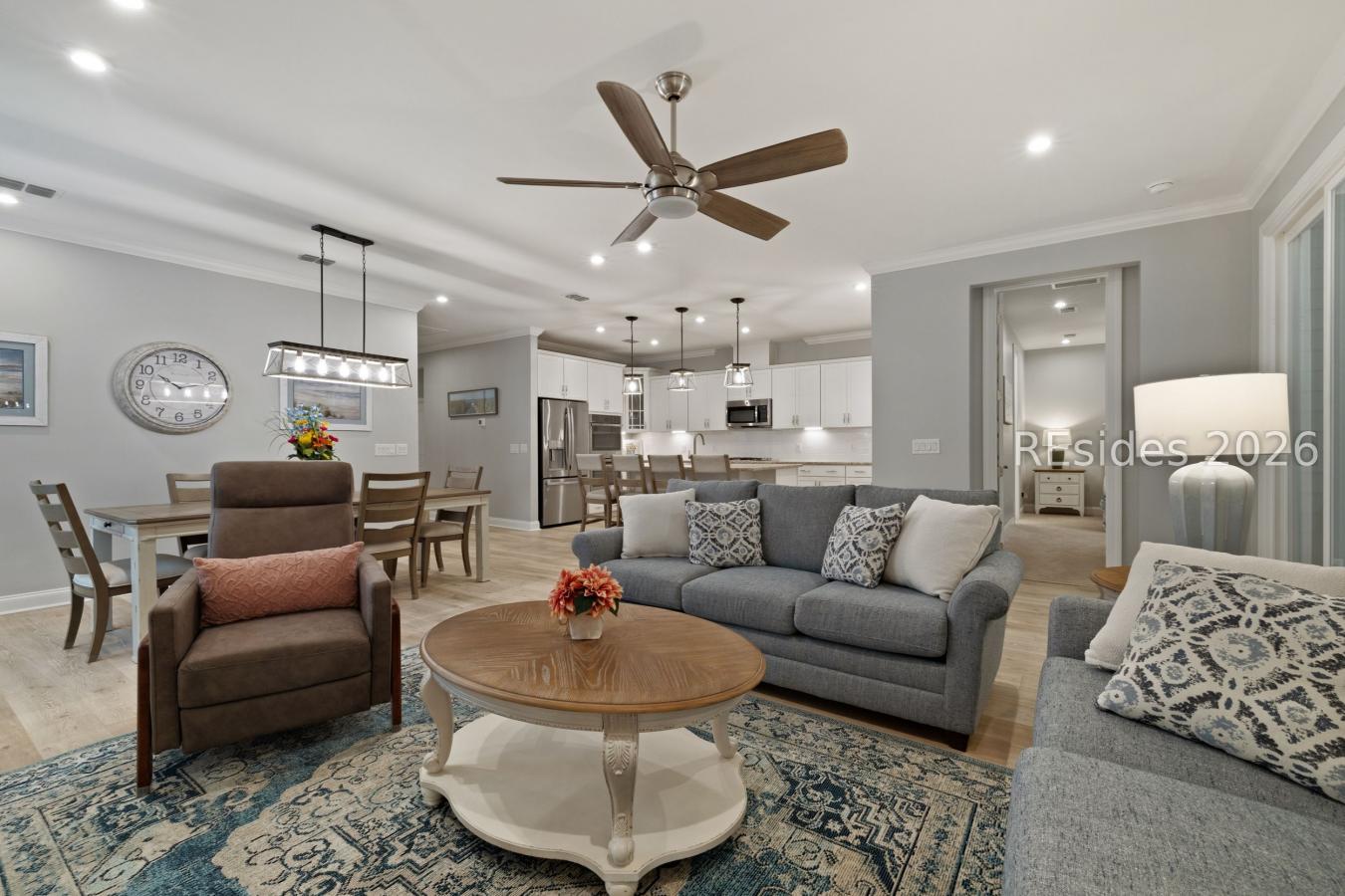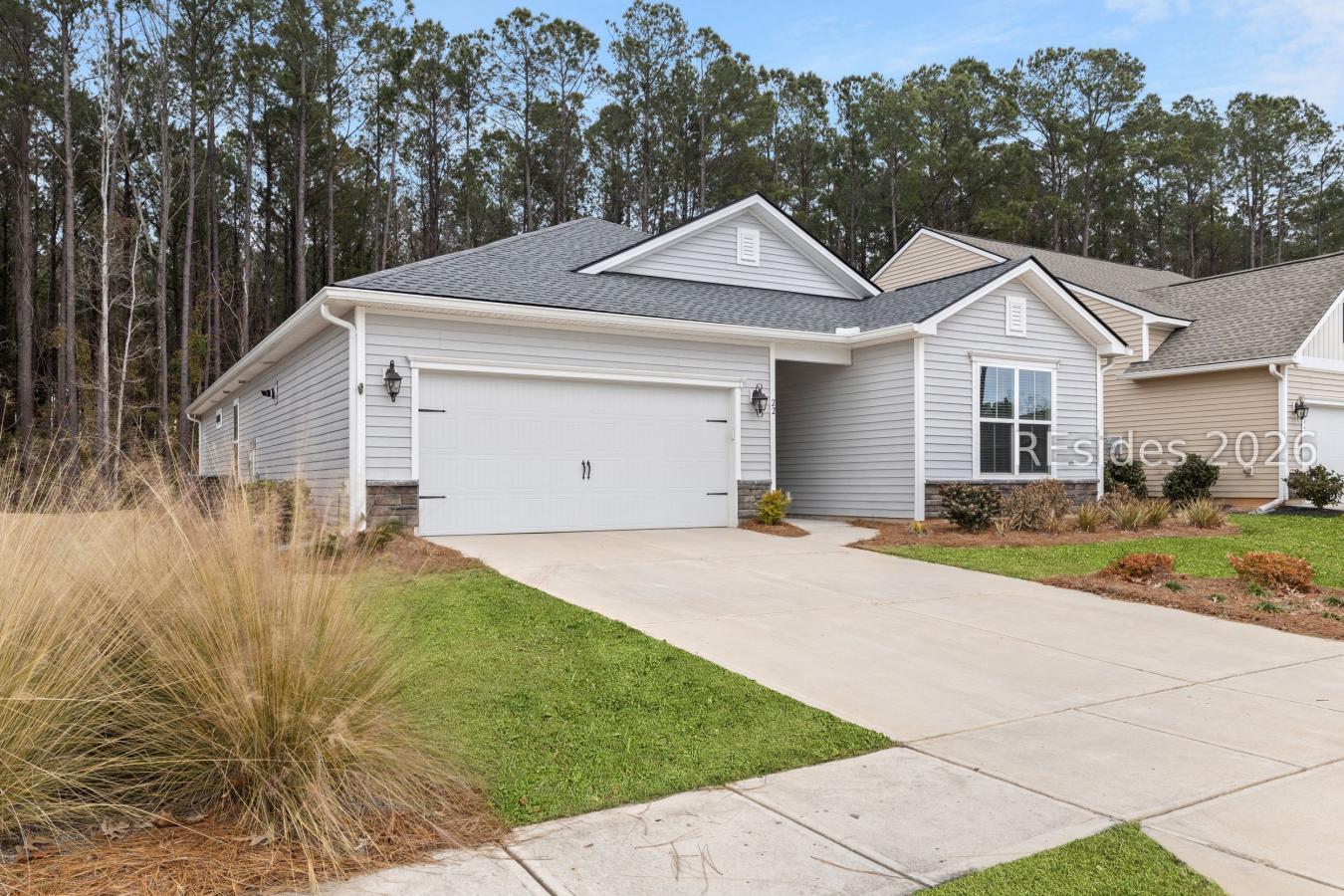 Move-in ready and truly unique! This rare 4BR Palmera II in Four Seasons at Carolina Oaks features a private in-law suite with separate entrance, kitchenette, full bath, and flexible living/sleeping space-perfect for multigenerational living or long-term guests. The main home offers 3 additional bedrooms (or 2 flex room/office), a chefs kitchen, open-concept great room, and a screened-in porch overlooking wooded views - peaceful & tranquil. Like new, lightly lived in, and close to resort-style amenities. Gated community and close to all of the best Bluffton has to offer - minutes from shops, restaurants and spa. Furnishings negotiable-just bring your suitcase! WELCOME HOME!