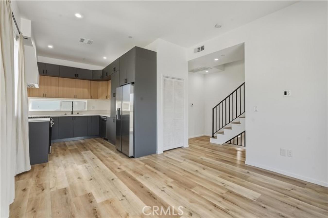 SKYLINE VIEWS IN HI-FI! Welcome to this ambitious 3-bed, 2-bath townhome representing the quintessential modern residence. This tri-level L.A. masterpiece boasts 1520 sq. ft. of architectural excellence with a full-width roof deck capturing miles of twinkling city lights. Designed with an open-plan layout, the home features khaki-hued laminate flooring, elevated ceilings with integrated lighting, and a first-class epicurean kitchen with chic matte cabinetry. With a secluded primary suite and versatile guest rooms for a home office, this property is meticulously crafted for sophisticated living. Just 10 minutes to Dodger Stadium and L.A. Live, and a short drive to Silverlake and The Grove, this is the perfect blend of style and city access.