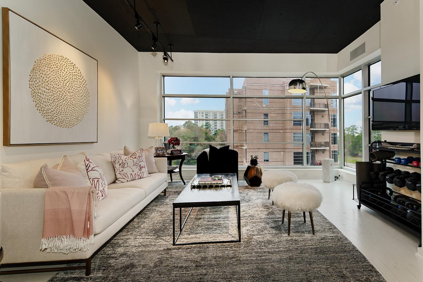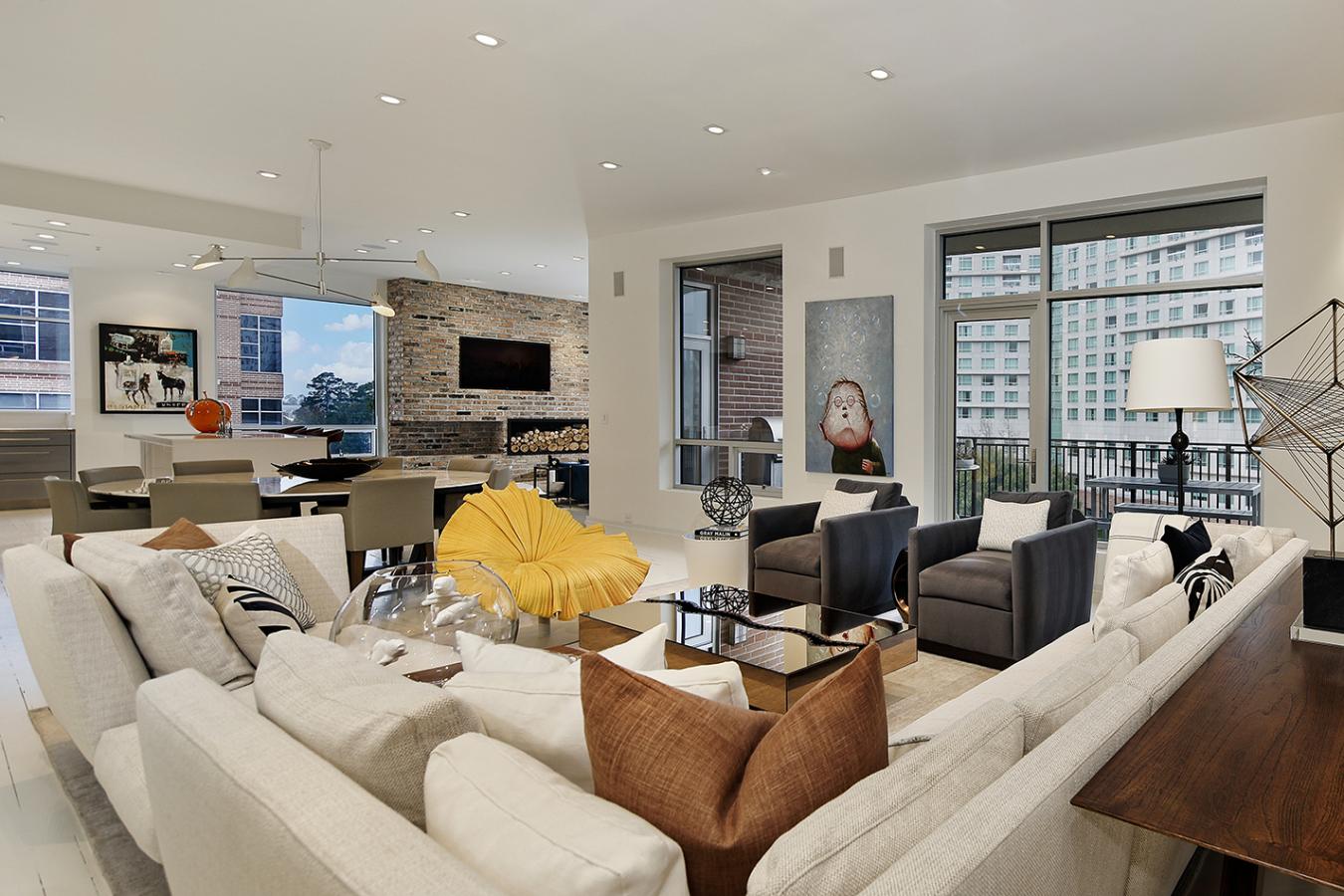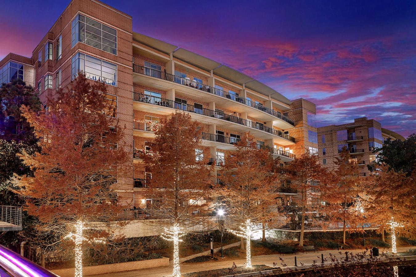 A rare find in Woodlands Waterway! This 3 bed/3.5 bath fabulous residence features all the rooms youd need in a home, but in a low-maintenance condo. Painted reclaimed wood floors, decorative brick, and a Savant system for lighting, shades, and music. The kitchen is the heart of this home, pairing high-end finishes with thoughtful functionality, offering an ideal setting for everyday living and hosting. With 3 quartz islands, a Blue Star 6-burner gas range, soft-close cabinetry and drawers, theres room for many chefs! The living/dining/game room and kitchen are open to one another, with panoramic views through the enormous windows. The primary suite is tucked away, with 2 huge walk-in closets and an elegant bath. Study with pocket doors; media room with projector and screen is located by the 2 large guest suites and 2nd game room; 6 parking spaces & additional storage. Amenities include a pool & spa, grilling area & key FOB building access. Walk to endless restaurants & shops in this lock-and-leave location!