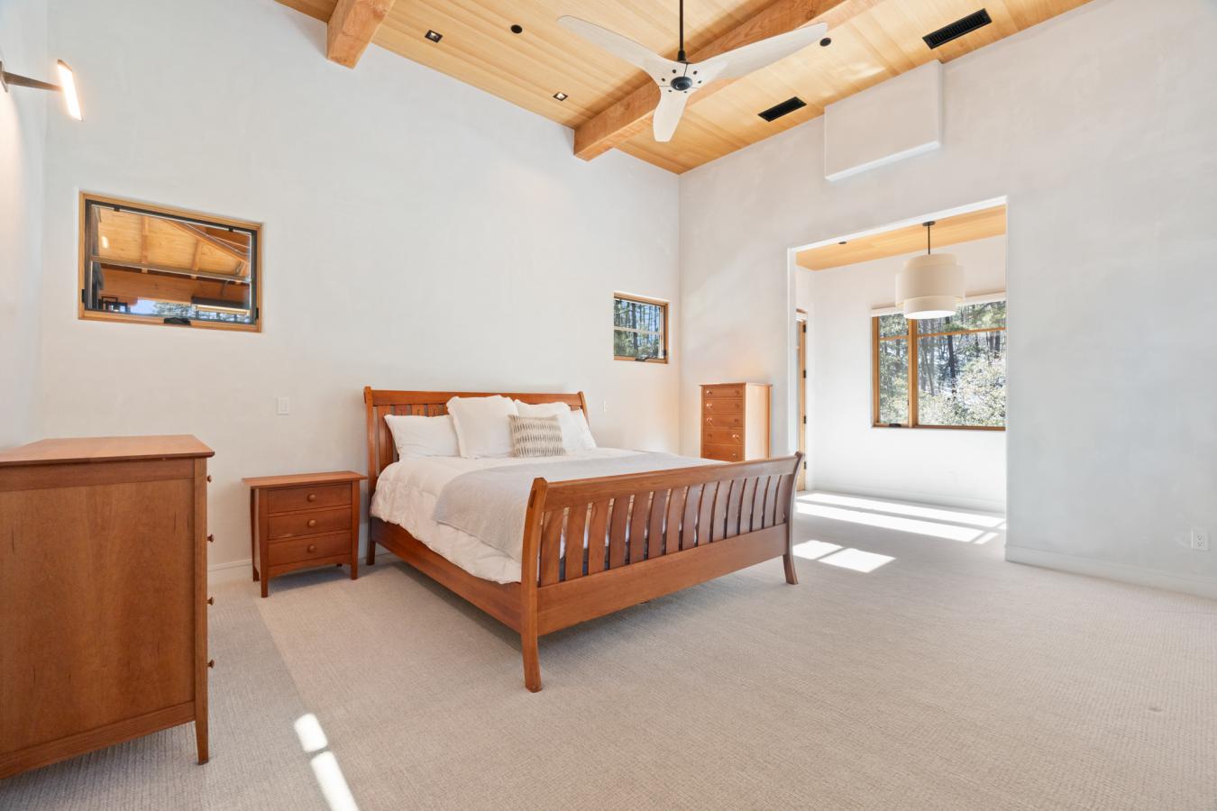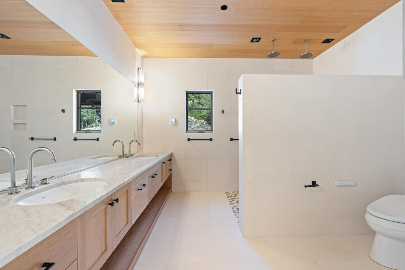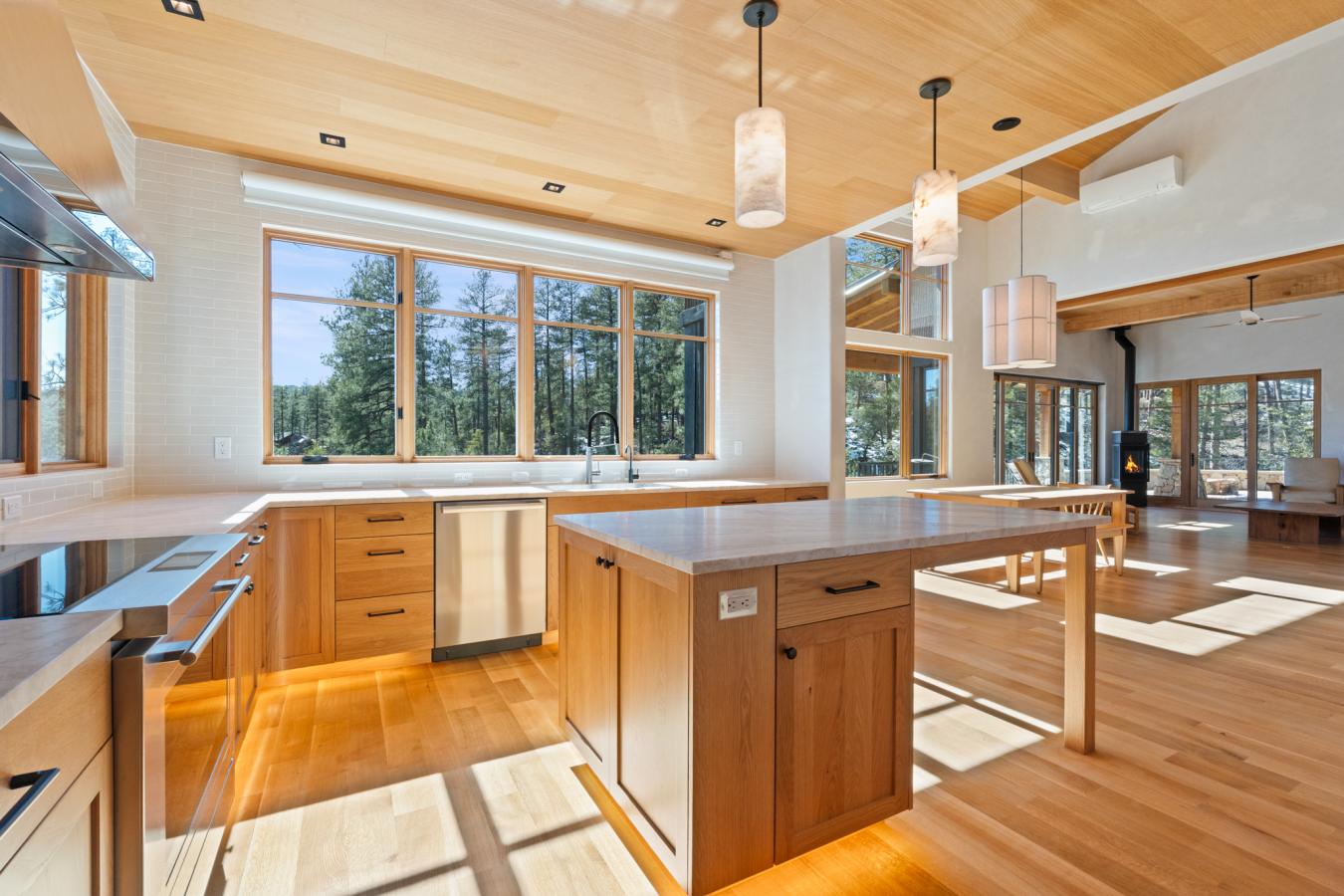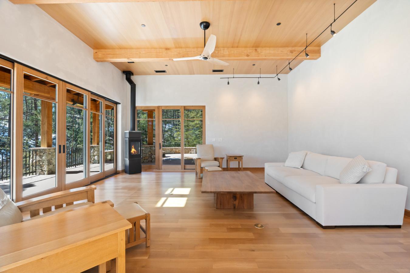 Architecturally significant modern luxury in the private gated community of High Valley Ranch -- located just minutes from historic downtown Prescott while offering exceptional privacy surrounded by pristine pines. Completed in December 2023 and only lightly lived in due to extensive travel, this custom-built, site-specific, near new, residence represents a distinct tier of construction within the community. Designed to integrate seamlessly with its pine forest surroundings, the main living areas were intentionally oriented to capture both sunrise and sunset, allowing natural light to define the interior experience throughout the day. Unlike many homes in the area, this residence is anchored by massive Arizona stone retaining walls rising from a full solid concrete foundation -- creating structural permanence, thermal stability, and sculptural presence. Rustic timbers and distinctive Poplar wood tiles enrich the exterior aesthetic, blending natural materials with modern refinement. A durable metal roofing system crowns the structure, selected for longevity and architectural cohesion. A dramatic retractable glass wall system forms the architectural centerpiece of the living room, opening fully to expansive outdoor entertaining spaces. This seamless indoor-outdoor living design creates year-round connection to the incredible landscape. Inside, refined modern finishes reflect elevated craftsmanship: hand-troweled plaster walls with smooth wax texture, white oak flooring, soaring ceilings approaching 20 feet lined with white oak veneer, and custom solid white oak soft-close cabinetry and drawers extending throughout the kitchen, bathrooms, and garage. Taj Mahal quartzite surfaces, solid wood doors, and carefully curated materials reinforce both durability and design integrity. The chefs dream kitchen anchors the main level with an expansive quartzite island, SubZero refrigeration, Wolf cooking appliances, Miele dishwasher, a thoughtfully integrated butlers pantry and beautiful views of the forest. The open-concept layout was designed for effortless entertaining while maintaining architectural cohesion. Spa-inspired baths feature heated natural limestone flooring and river rock walk-in showers. The main-level primary suite provides patio access and a cedar-lined walk-in closet, creating a private retreat designed for full-time living. Additional highlights include a Nexo freestanding gas stove, built-in gas fire pit, integrated patio heaters, plush wool bedroom carpeting, private theater room, stainless-steel chemical-free hot tub, large sauna, 15.4 kW solar system, multi-zone Mitsubishi climate control, whole house humidity control, whole-house water filtration and softener, and an insulated oversized three-car garage with EV charging, built-in heaters, custom cabinetry and stainless-steel sink. Purposefully constructed for long-term performance, this residence stands apart as one of High Valley Ranchs most recently completed architectural homes -- offering modern craftsmanship, structural integrity, luxury, and enduring design within one of the most beautiful natural settings in Prescott.