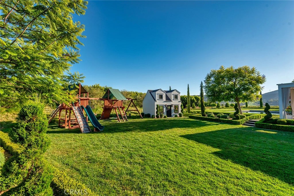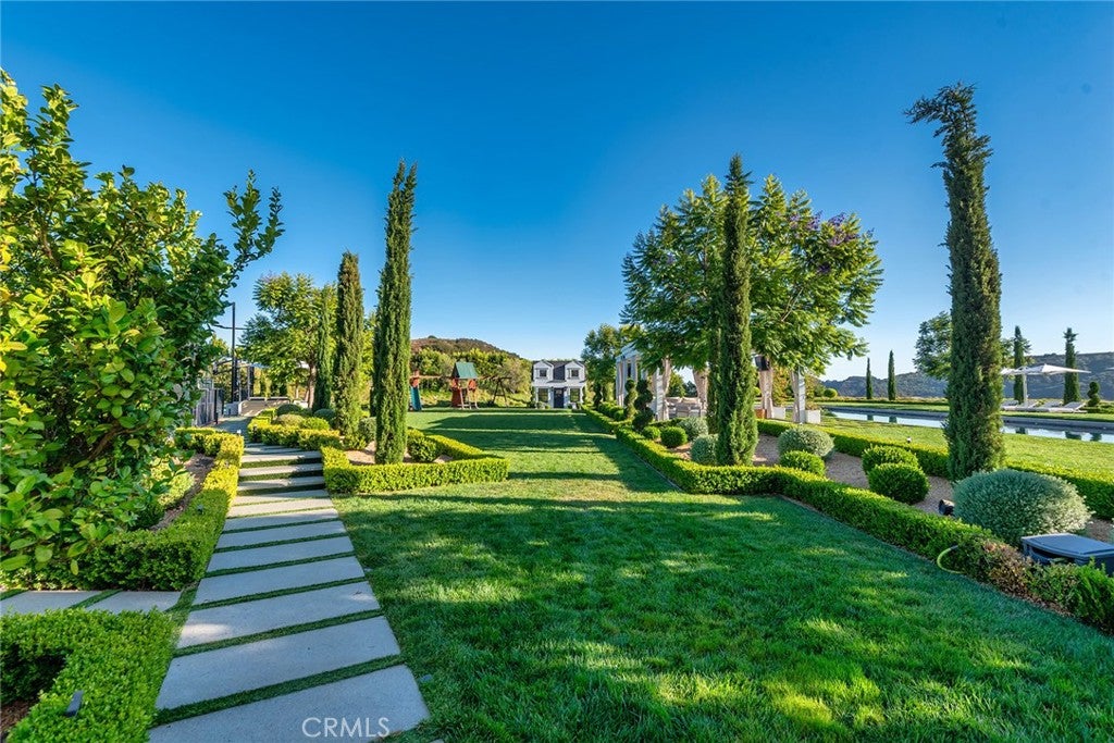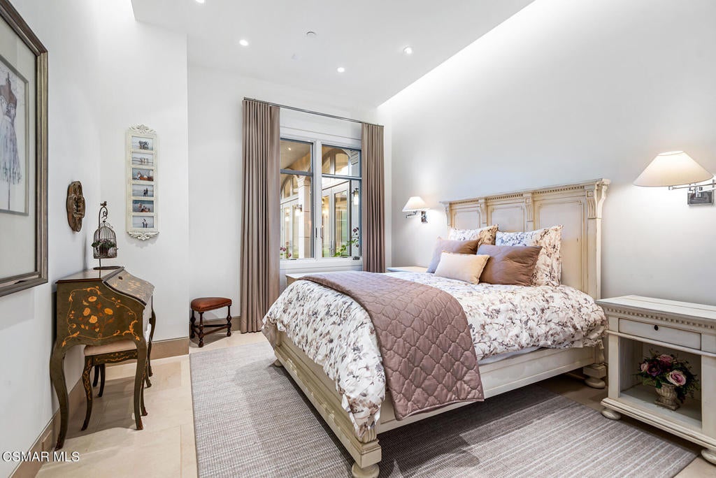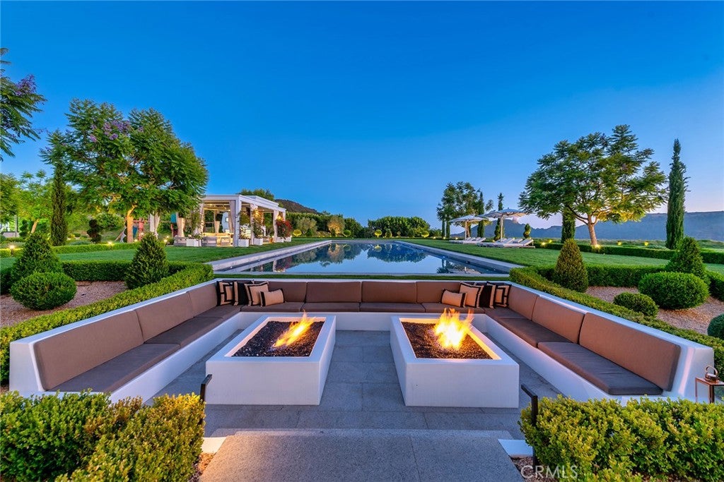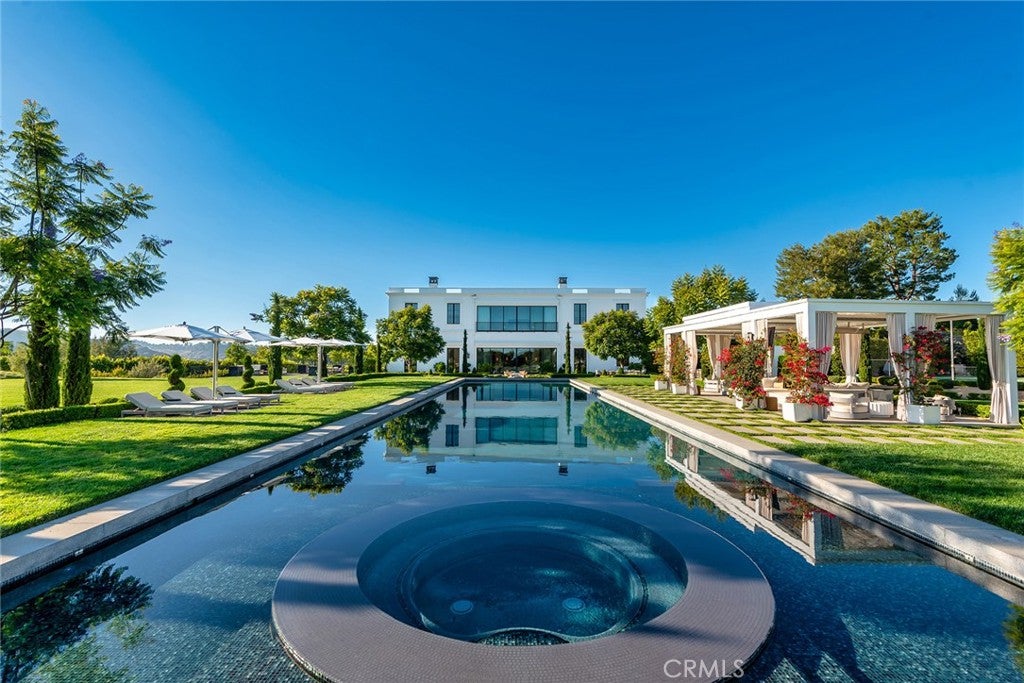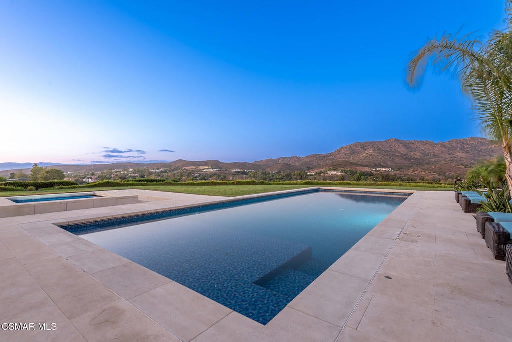 The ultimate Landmark trophy estate in guard gated North Ranch Country Club Estates! Absolutely exquisite contemporary showplace atop 6 privately gated acres with complete privacy and explosive unobstructed views! Nearly 10,000 square foot newer SINGLE STORY designed and built with the finest finishes throughout! Interior features include imported stone, custom burl and walnut wood finishes, lit onyx wet bar, multiple sets of automated pocket doors and magnificent detailed ceilings throughout. An indoor/outdoor enclosed breezeway leads to a separate 2 bedroom guest house. The resort quality grounds are simply breathtaking! Custom mosaic tiled pool and spa, sensational outdoor living room with fireplace, chef quality outdoor kitchen, an abundance of lush manicured lawns and an amazing waterfall cascading koi pond all with the best views North Ranch has to offer! Other amenities include a 5 car garage, massive long privately gated driveway with oversized motor court, top of the line solar and smart home systems, security cameras, beautiful formal library, large gym and so much more. A one of a kind awe inspiring estate that offers everything one can expect and demand for a home of this caliber.