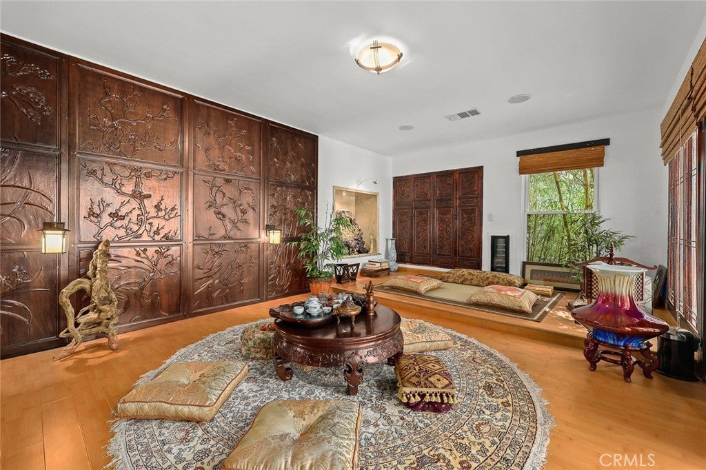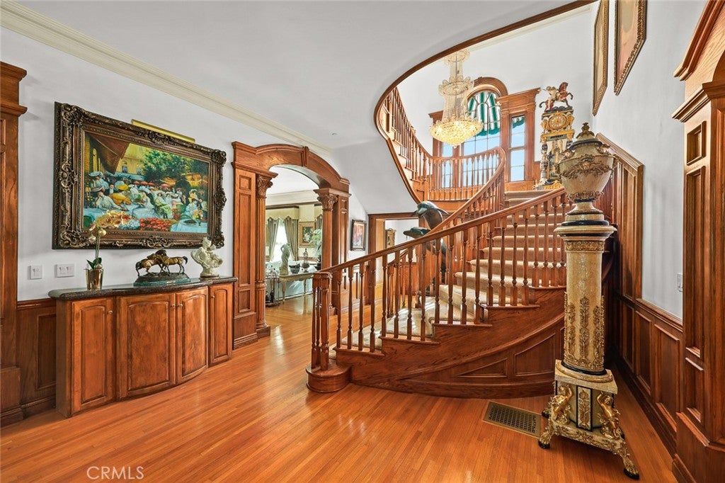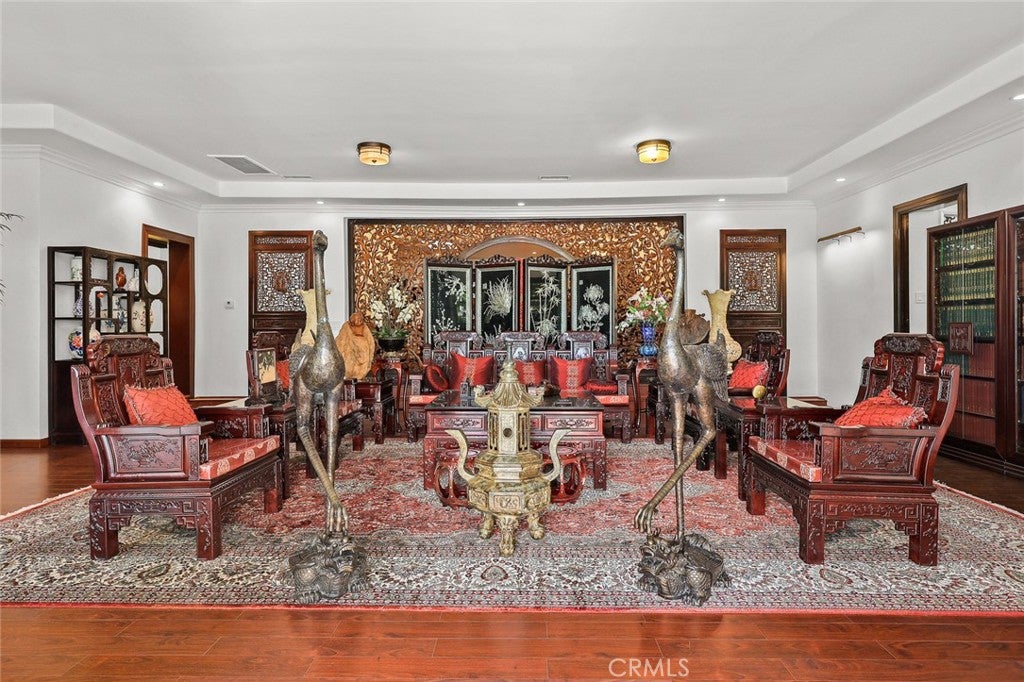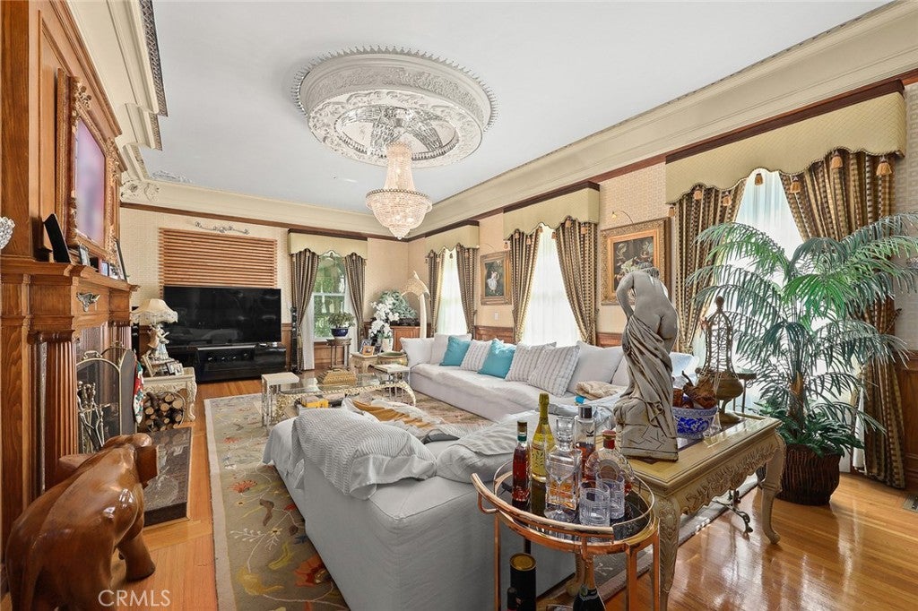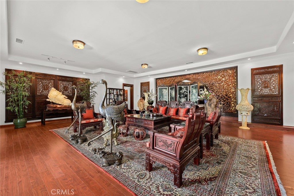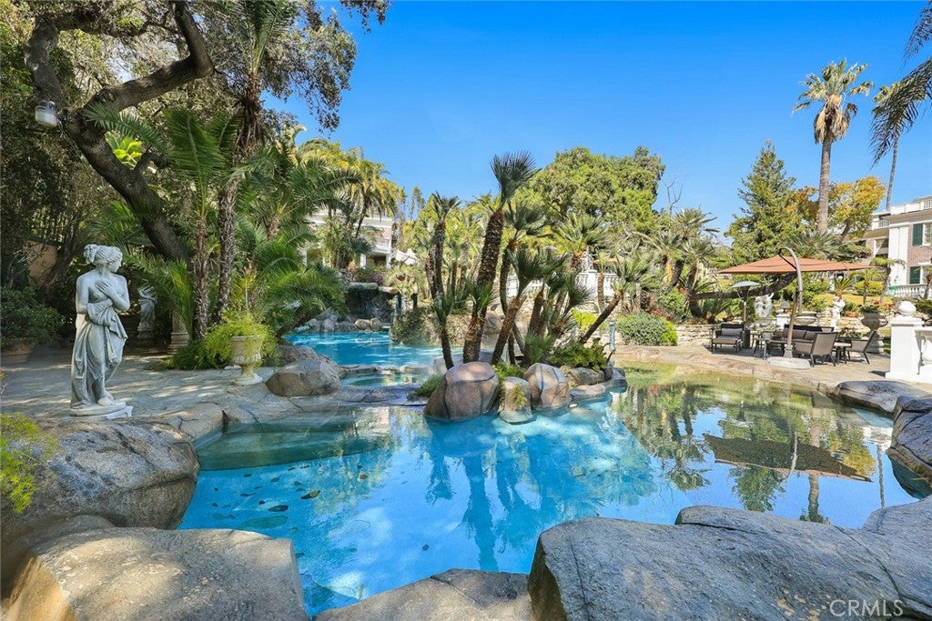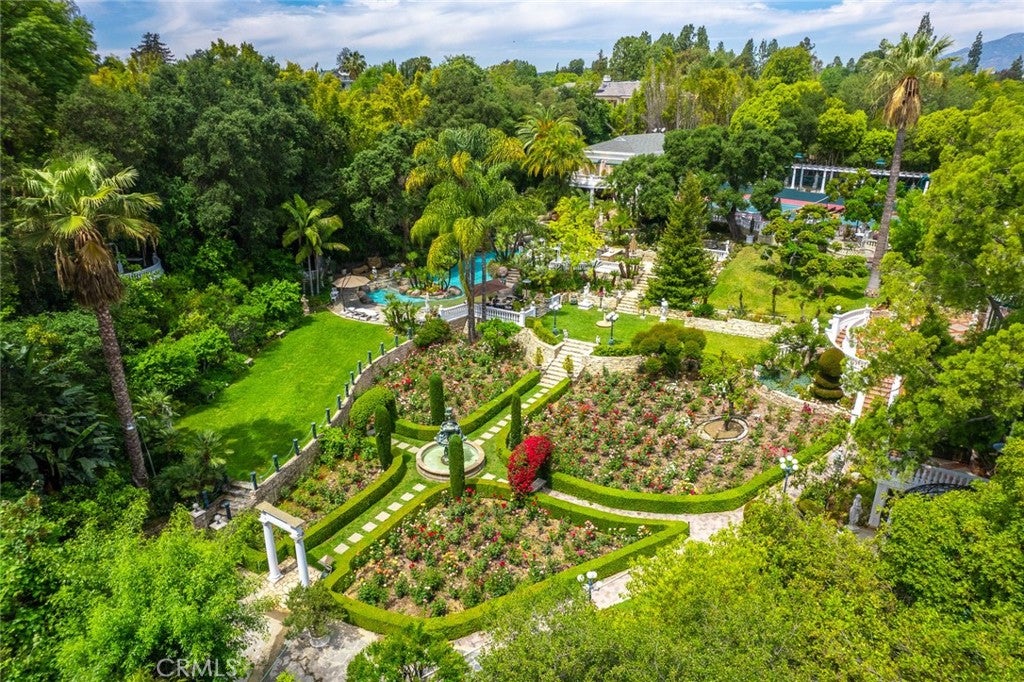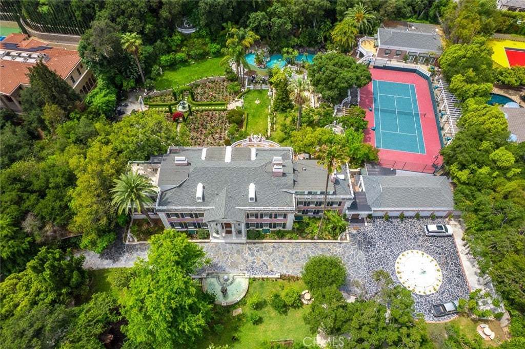 Located in the prestigious estate area of San Marino, this distinguished Georgian Colonial residence offers a rare blend of timeless architecture, refined luxury, and notable historical provenance. Originally constructed in 1918, with historical accounts attributing its origins to Henry E. Huntington, founder of the Huntington Library and Huntington Hospital, the property encompasses approximately 10,458 square feet and has been meticulously maintained, preserving its architectural integrity while incorporating modern amenities. Sited on an expansive 2.29-acre parcel, the property offers exceptional land value and usability, complemented by a long, private driveway with ample on-site parking capable of accommodating large gatherings with ease. Set behind wrought-iron gates and mature landscaping, the residence enjoys exceptional privacy and a strong sense of arrival. The grand interior features soaring 12-foot ceilings, elegant chandeliers, rich wood detailing, and graciously scaled formal spaces, with an elevator and sweeping staircases providing access to all levels. Designed for both formal entertaining and comfortable daily living, the residence offers a thoughtfully balanced floor plan. The primary suite serves as a private retreat with a jacuzzi tub, walk-in shower, expansive walk-in closet, and a separate sitting area, while six additional ensuite bedrooms provide ample comfort and privacy. Formal living areas include a grand dining room, stately library, conference room, and a private cinema, complemented by a fitness room, massage and barber room, multiple wet bars, and an extensive wine cellar. The grounds are designed to feel serene and impressive, featuring multiple balconies and terraces ideal for entertaining, along with resort-style amenities including a pool with waterfall and lighting, tennis court, cabanas, koi pond, and a Japanese-inspired tea house. Garden pathways, a gazebo, and secluded seating areas further enhance the landscaped grounds. Additional improvements include a six-car garage, maids quarters with two ensuite bedrooms, and a spacious two-story guest house. Fireplaces throughout the home and zoned central air conditioning provide year-round comfort. Located within the award-winning San Marino School District, this exceptional estate presents a rare opportunity to acquire a property of this scale, land value, privacy, and historical character in one of Southern Californias most desirable communities.
