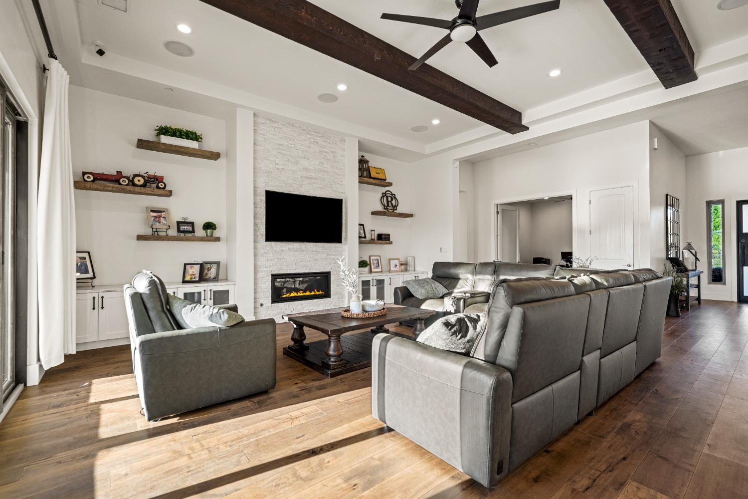 Modern sophistication meets exceptional convenience with effortless access to Downtown DC, the Pentagon, Tysons, Reagan National, and Dulles International. This extraordinary residence delivers the ultimate luxury lifestyle within a newly established enclave of highend homeswhere thoughtful design, premium finishes, and modern efficiency come together seamlessly.Constructed with the latest energyefficient materials, this home impresses from the moment you step inside. European French Oak flooring, highperformance windows, and topoftheline Caf appliances anchor the homes sleek, modern aesthetic. Offering three fully finished levels, six bedrooms, seven full bathrooms, and two half baths, the residence features soaring 10foot ceilings on all levels and a sundrenched open floor plan that feels both expansive and refined.A Kitchen designed to be the heart of the home. The chefs kitchen is a true showpiece, anchored by an exceptionally expansive quartz island that provides generous seating, prep space, and visual impactideal for everyday living and largescale entertaining alike. A large walkin pantry offers abundant storage, while elegant glassfront top cabinetry adds both function and architectural interest. Striking brass kettle faucets serve as a statement detail, blending classic craftsmanship with modern design. Every element of the kitchen reflects thoughtful upgrades and elevated finishes, making it as beautiful as it is practical.Designer details continue throughout the home, including elegant crown molding, substantial 7.5inch baseboards, and exquisite quartz countertops in the kitchen, the oversized island, and all seven bathrooms plus both half baths. Designed for seamless indooroutdoor living, the main living area opens to a large Trex deck through fivepanel sliding glass doors with automatic retractable screensperfect for entertaining, relaxing, or hosting unforgettable gatherings.The main level includes a private inlaw suite with its own full bath, offering flexibility for guests or multigenerational living. An extrawide staircase leads to the upper level, where the Owners Suite serves as a true retreat. Enjoy a screenedin porch, fireplace, and wet bar, along with a spainspired bath featuring a freestanding soaking tub, steam shower, two walkin closets, and two private toilet rooms. An oversized laundry room with washer, dryer, and closet is conveniently located adjacent to the primary and secondary bedrooms.The lower level is an experience unto itself. Accessed by another extrawide staircase, it features a lavish sauna room, steam room, and paddedfloor gym, creating a private wellness oasis at home. A quartzappointed wet bar and kitchenette include a refrigerator, microwave, dishwasher, sink, and abundant cabinetry, complemented by a stunning fireplace. This level also offers a sixth bedroom with an ensuite bath, ideal for guests or extended stays.This residence was the original model home for Premier Homes and includes nearly every upgrade available, thoughtfully selected to showcase the builders highest level of craftsmanship and design. Additional highlights include a home security system, a garage EVready charger, and epoxycoated garage floors, along with countless premium enhancements throughout.Positioned on a sunfilled corner lot perched high on a hill, the home enjoys abundant natural light and a peaceful setting while remaining moments from every urban convenience. This residence strikes the perfect balance between tranquil retreat and connected livinga home youll love not only for how it looks, but for how it feels. Sellers relocating with their jobs. Sellers work from home.