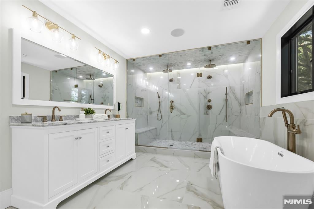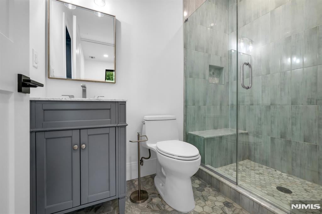 Exceptional, new construction masterpiece Offers over 6000 sqft of luxurious living space, ideally situated on the prestigious east side of Paramus. Nestled on a quiet street, this expansive floor plan features 6 bedrooms and 5 1/2 bathrooms. The impressive two-story foyer, seamlessly transitions into the open concept living and dining areas, complimented by a sun-filled great room, equipped with a fireplace. The gourmet kitchen boasts a spacious center Island, sleek, quartz countertops and custom designer cabinetry. A guest suite with a private full bath is conveniently located on the main floor. Upstairs, retreat to the luxurious primary suite complete with a spacious walk-in closet and a spa inspired en-suite bath. This level also includes a junior suite with a bath, two additional bedrooms, a full hall bath and a laundry room. The fully finished basement provides additional space for entertaining and relaxation, featuring a movie theater, a large recreation room with a wet bar, a wine room, an additional bedroom and a full bath, additional highlights include a two car garage, generator, ready, hook ups, a speaker system, security cameras, a paver driveway and more. Kosher kitchen. Approved plans for a separate entrance from the basement outside. The property also boasts a large backyard with a paver patio. Residence can enjoy top rated schools, a wonderful community, easy access to New York City and all major highways, and amazing shopping options in Paramus.
