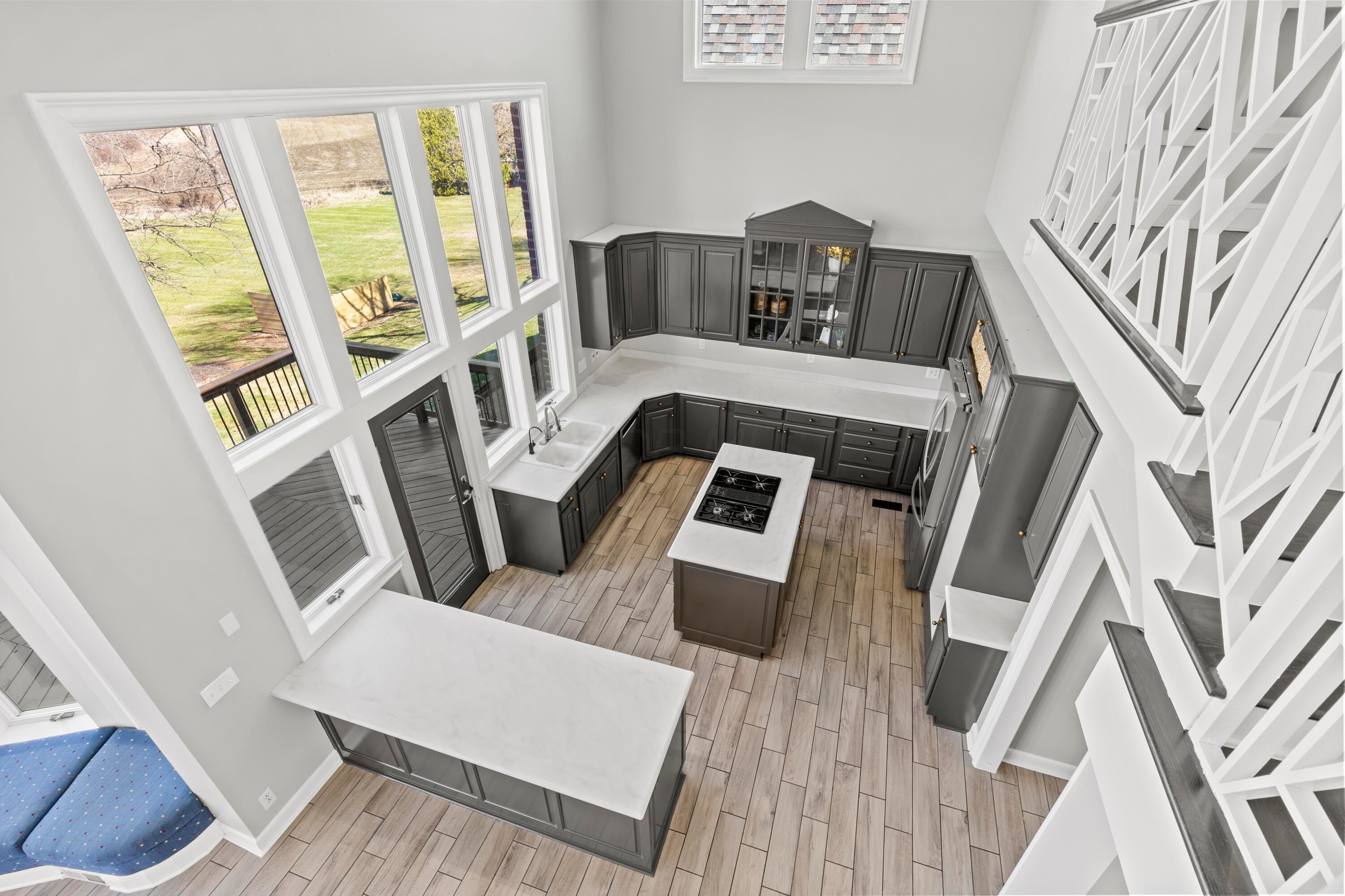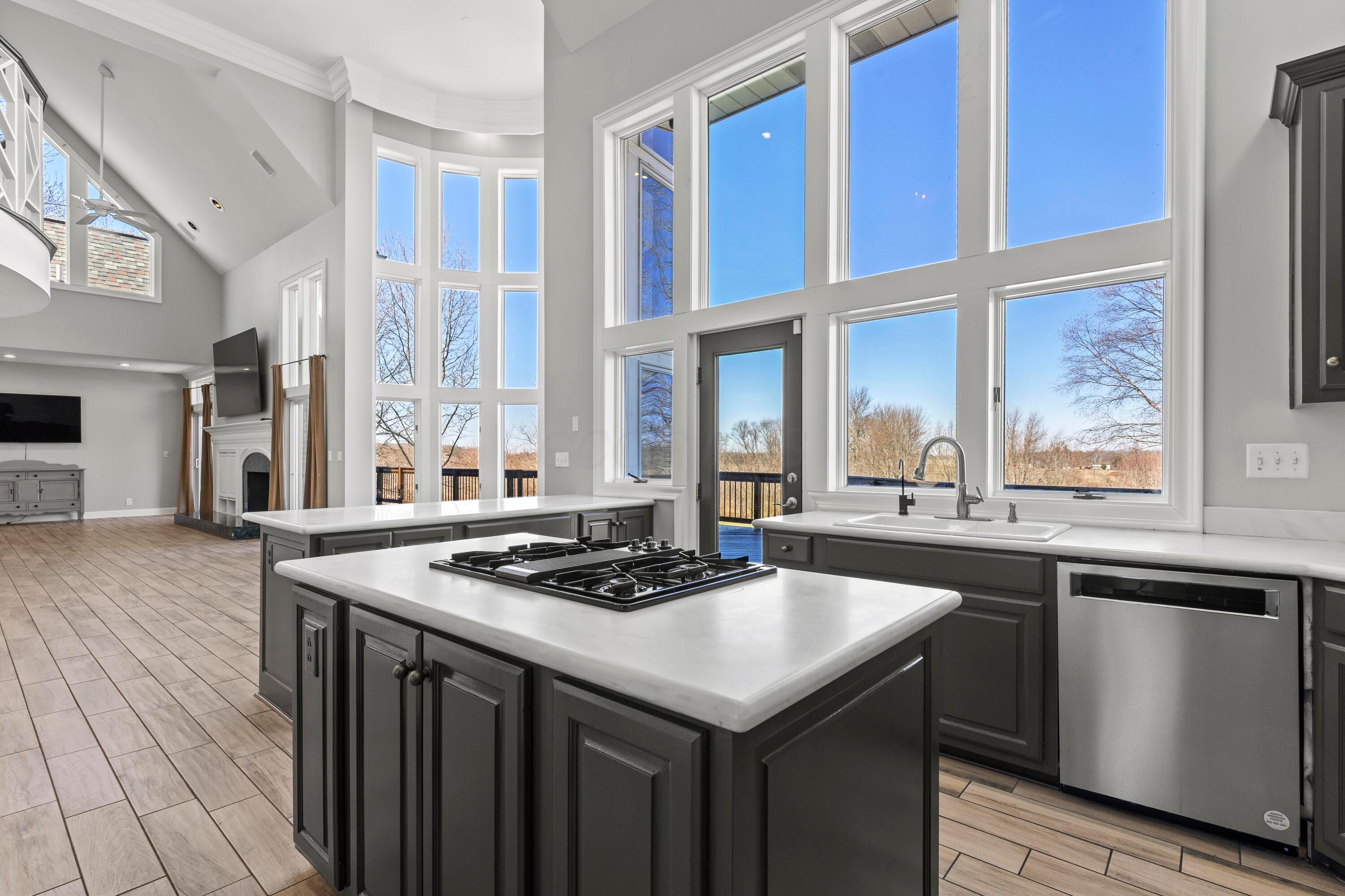 Improved Price! Designed with Distinction in this custom built modern-style home with handsome exterior of stone and hardi-board siding in a deep rich color palette and dramatic roof angles. Luxury interior featuring tucked away dedicated office or formal living room for privacy, elevated vaulted ceilings in the great room with expansive windows showcasing endless views of the lake and mountains, stone fireplace and steel railings compliment the warmth of the hardwood floors, gourmet kitchen with premium appliances / dual ovens / desirable gas range / large center island / lots of cabinets for ample storage plus large walk-in pantry, roomy dining area, seamless indoor-outdoor flow to the expansive covered deck for year-round entertaining. Primary bedroom with ensuite having generous tiled shower with multiple shower heads / dual sinks, walk-in closet with washer and dryer hookups. Additional bedroom with ensuite on main level, and mud room with half bath. The finished lower level is ideal for entertaining in the extensive family room complete with wet-bar and sliding doors to large covered patio and fire pit area, two additional comfortable bedrooms and 1 full bath. Thoughtfully designed bonus space just steps away featuring exercise room, theater room area and plenty of room for family game night. Ample space for vehicles, recreational toys and storage in the multi-car garage. Owner is a licensed real estate agent. Schedule via Aligned Showings.