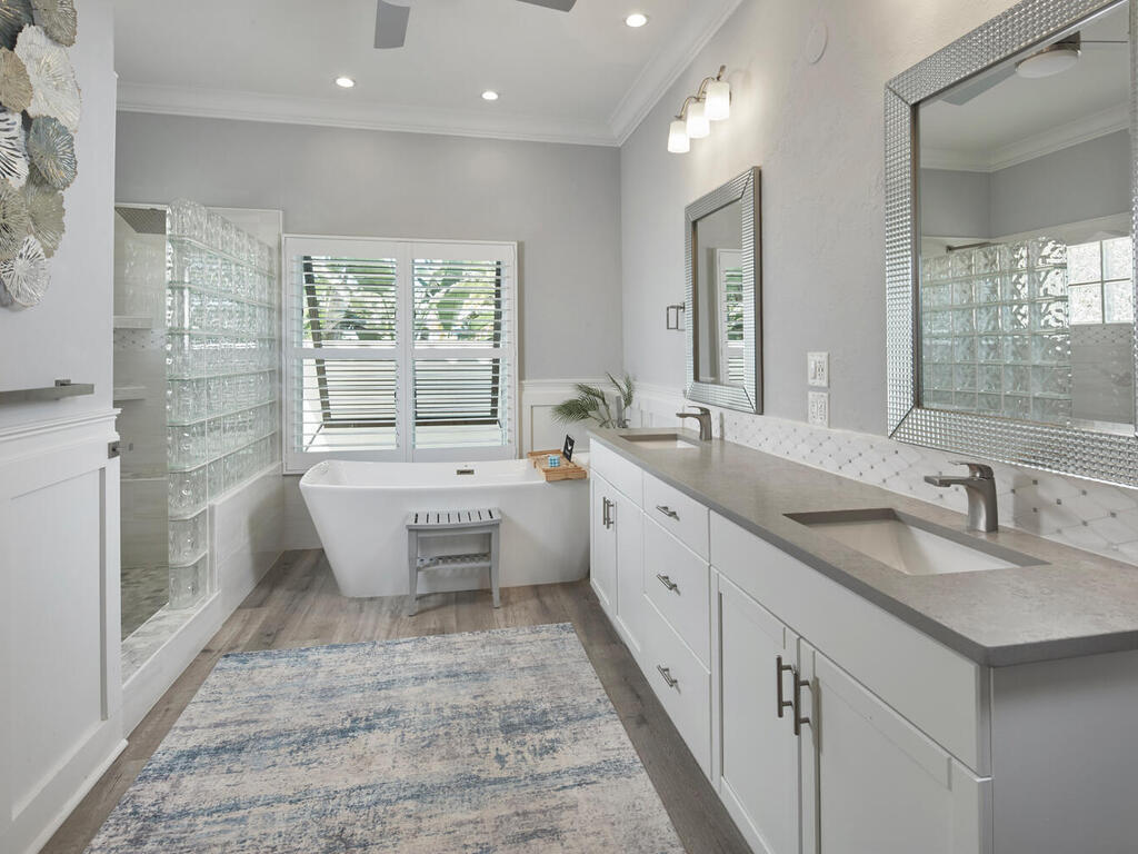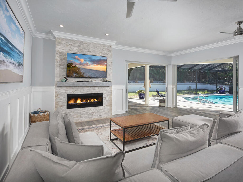 Exceptional 4 bedroom, 3 and a half bath home located in the prestigious Estates of Marco Island. Upon entering the home, you will be impressed by the soaring ceilings, light and bright interior, and luxurious finishes throughout. The living room offers a beautiful stone feature wall and views of the spacious lanai. The kitchen is sure to delight any chef with center island, white cabinetry providing ample storage space, breakfast bar, and open sightlines to both the living room and family room - perfect for entertaining groups large and small. The family room provides the ideal place to relax while enjoying the ambiance of the fireplace. The master suite is a private retreat with access to the lanai, generous sitting area, and ensuite bath with freestanding soaking tub, walk-in shower, and dual vanities. The additional 3 bedrooms provide ample space and privacy for guests. The spacious lanai offering much privacy provides multiple seating areas, summer kitchen, pool, spa, and full pool bath. Enjoy playing a game of bocce in the yard after taking a quick swim in the beautiful pool. Located on an oversized homesite, this magnificent home boasts instant curb appeal with lush, tropical landscaping and stately circular drive. Make this stunning Estate home your piece of paradise.
