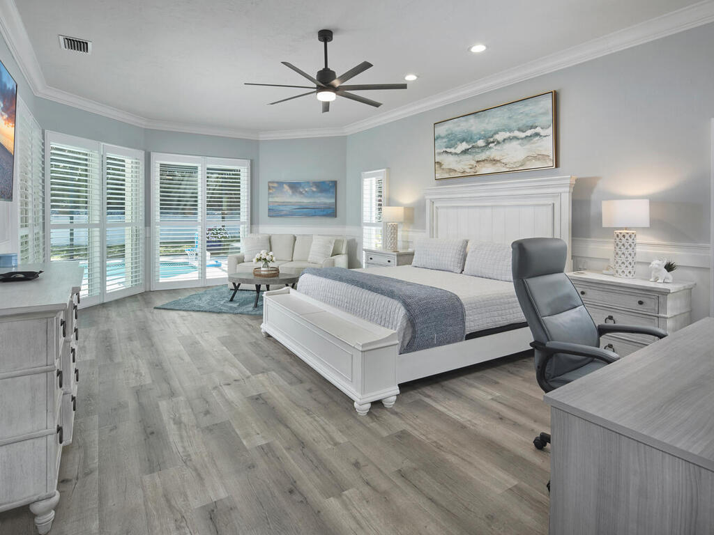 Wake up to breathtaking sunrises and the soothing sound of the Atlantic in this beautifully curated oceanfront retreat. Oceanfront elegance meets exceptional construction at 2677 S Ponte Vedra Blvd. Built by Gary McCumber and meticulously upgraded, the home has first 2 levels of concrete construction and is supported by 30 auger-cast pilings w/ continuous grade beams for superior strength. Offering 2,253 SF, the residence was fully remodeled in 2020 with additional 2024 enhancements including all hurricane-impact Anderson windows, updated Hardie siding, new exterior doors, marine-grade lighting, fresh interior/exterior paint, and upgraded outdoor staircase. Additional improvements include new garage doors, oversized water softener, 2022 water heater, LED lighting, Lutron dimmers, and designer window coverings. Can be sold fully furnished and equipped, this smart-enabled coastal retreat is truly turnkey. Excellent vacation rental history with all 5-star reviews