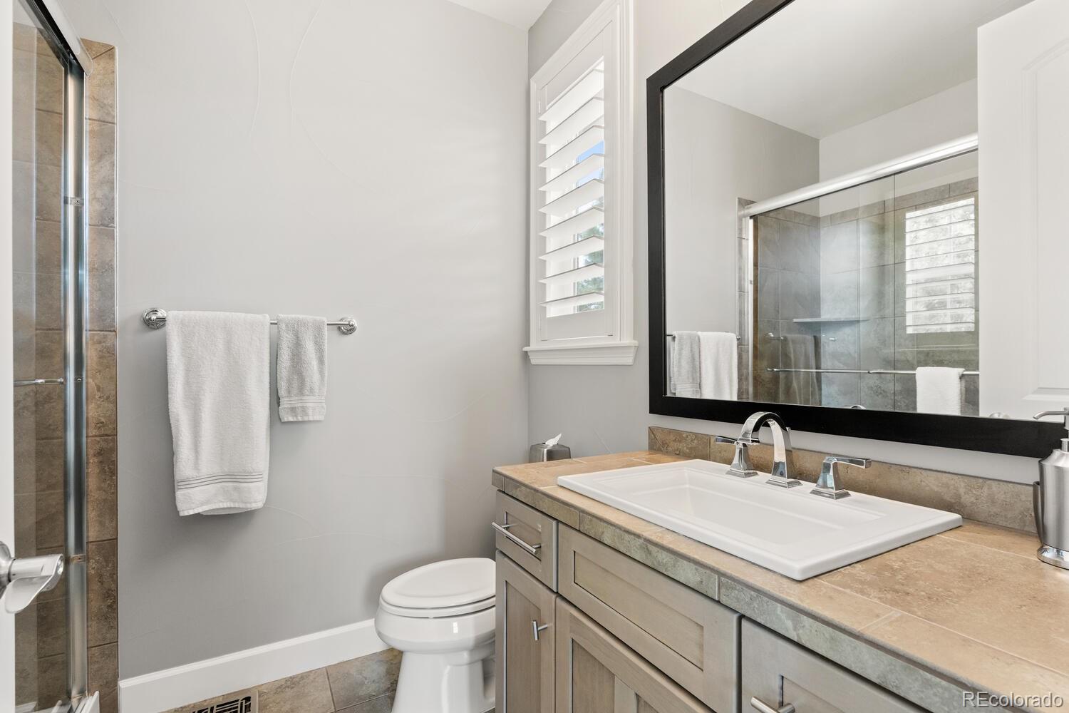 This meticulously maintained, move-in-ready home is nestled on a premium lot offering mountain views and designer finishes throughout. Upon entry, youll be greeted by vaulted ceilings, expansive mountain vistas, and exquisite lighting. The kitchen is an entertainers dream, equipped with high-end appliances, a large island, ample cabinetry, and an eat in kitchen with doors to patio. The main floor also features a private bedroom with an en suite, an office, dining room with a wet bar and sliding doors to a secluded patio, a great room, and a versatile bonus room. Upstairs, the spacious primary suite includes a fireplace, a sitting area, and a luxurious bath with dual sinks and a generous walk-in closet. Three additional bedroomstwo with en suite bathsalong with a laundry room and a loft that opens to an upper deck with a hot tub, perfect for soaking in the mountain scenery, complete this level. The finished lower level offers a great room with a wet bar, a bonus room that could easily be converted into a bedroom, and a bathroom. This home also boasts a rare 4-car garage, front and rear staircases, and an in-ground trampoline. Step outside to your private patio and relax by the fireplace while enjoying breathtaking Colorado sunsets! Embrace the Backcountry lifestyle with resort-style pools, a fitness facility, trails, parks, ponds, and so much more.