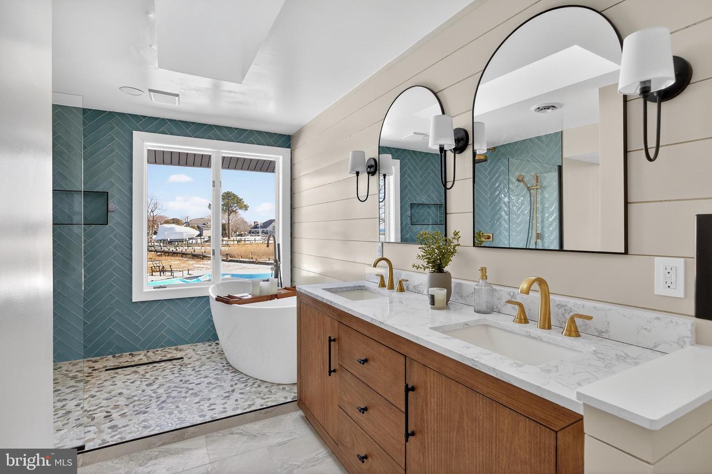Your Dream Home - New Construction Offering 3 Levels, Elevator, Entry Foyer with Additional Spare Room, 4 Bedrooms, 3.5 Baths, 3 Level of Decks, Living Room with Electric Fireplace & Deck, Dining Area, Chefs Kitchen with Stainless Steel Appliances & Quartz Countertop, Large Primary Bedroom Suite, Full Bath/Deck, Lots of Closets, Walk In Closet, Oak Floors Throughout, Utility Room, Gracious Size Bedrooms. Spiral Staircase to Rooftop Deck (27x24), Gas Hook up for BBQ, & Water Sprit, 2 Zone Central Air & Heat, Fire Sprinklers, 40 X 100, Yard, 1 Car Garage, Driveway, Fabulous Beachfront Community.