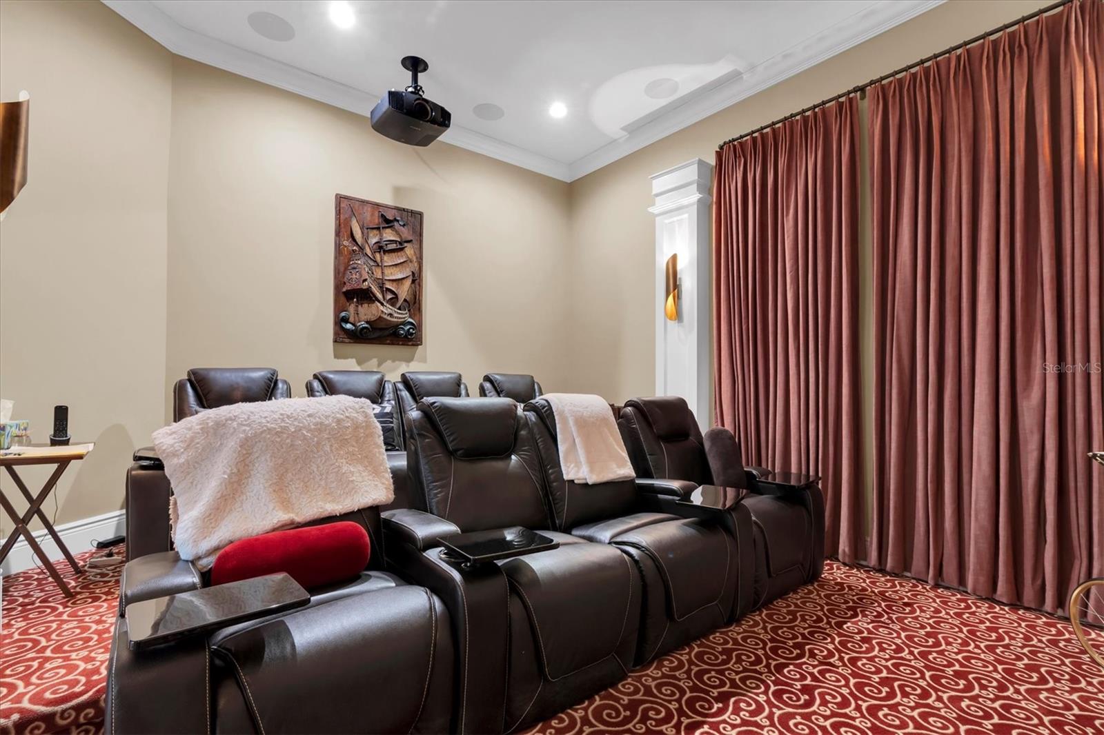 Tucked away on a quiet and beautiful 1 acre lot on Lake Tarpon, this stunning residence offers magnificent water views from nearly every room with one of the most private entrances and lot in the area. This newer home (6yrs) blends, charm and modern comfort, with the light filled rooms, open floor plan features begin upon entering by way of the Porte-cochere through custom designed double entry doors to a foyer with 20 foot soaring ceiling & retractable chandelier with piano alcove and light-filled conversation room featuring a fireplace to start the presentation of an absolutely stunning home. Craftsmanship is showcased throughout this home, from the millwork around all door openings, baseboards, coffered ceilings, to the 10 foot designer highlighted doors to each room, custom cabinetry in the kitchen, butlers pantry, bathrooms, game room and both full sized and equipped laundry rooms. The combined family room, breakfast room and kitchen features coffered ceilings, spectacular views of the covered dock with lift, fire pit & seating overlooking the approximately 2600 acre Lake Tarpon as well as the sparkling open pool area featuring an outstanding gourmet outdoor kitchen for all those year round outdoor get togethers. In-home dining begins in the elegant dining room and becomes a reality in the Chefs dream kitchen with top of the line appliances, including Sub Zero refrigerator, GE Monogram gas range w pot filler, cabinet microwave and dishwasher encompassed by personally designed cabinetry with granite counters. The large walk-in pantry can accommodate all the necessary items needed to entertain guests and family for those spectacular parties to come. The owners suite features a morning coffee bar area with an adjacent reading room plus its own balcony with breathtaking views of the lake, private back yard and glistening pool area. The owners bath is a fabulous place to spend the day, with all the accoutrements of a high end Spa! The owners closets (2) are beyond comparable to any others with more than ample space for all personal belongings, shoe gallery & more. Family gatherings or parties of any kind can find their way to accommodate many guests in this beautifully appointed game room with pool table, game table and fully stockable bar area. A 1000 bottle Wine Room constructed with concrete block walls with vapor barrier paint & insulation create a true wine room makes it a real treat for the wine connoisseur or collector. Each of the additional bedrooms have their own ensuite full bath with 2 of them having their own private balcony overlooking the beautiful lake. The finishing touch of a day would be to enjoy a movie in your own 8 seat home theater just adjacent to the game room with additional insulation and soundproofing. The 3 car oversized garage will accommodate oversized vehicles with driveway parking for a multitude of vehicle parking. The built-in staircase to the floored attic, makes for easy storage of additional belongings & access. Outdoor features include a beautiful wraparound porch, lush landscaping (watered by lake), private paved, tree lined driveway, no HOA or fees for living the most enjoyable life possible. Safe Room constructed of reinforced concrete that affords safety and security. The aforementioned description doesnt totally describe this beautiful and stunning home but seeing is believing. Come see to believe for yourself and be SOLD! Being in the heart of Palm Harbor close to everything.