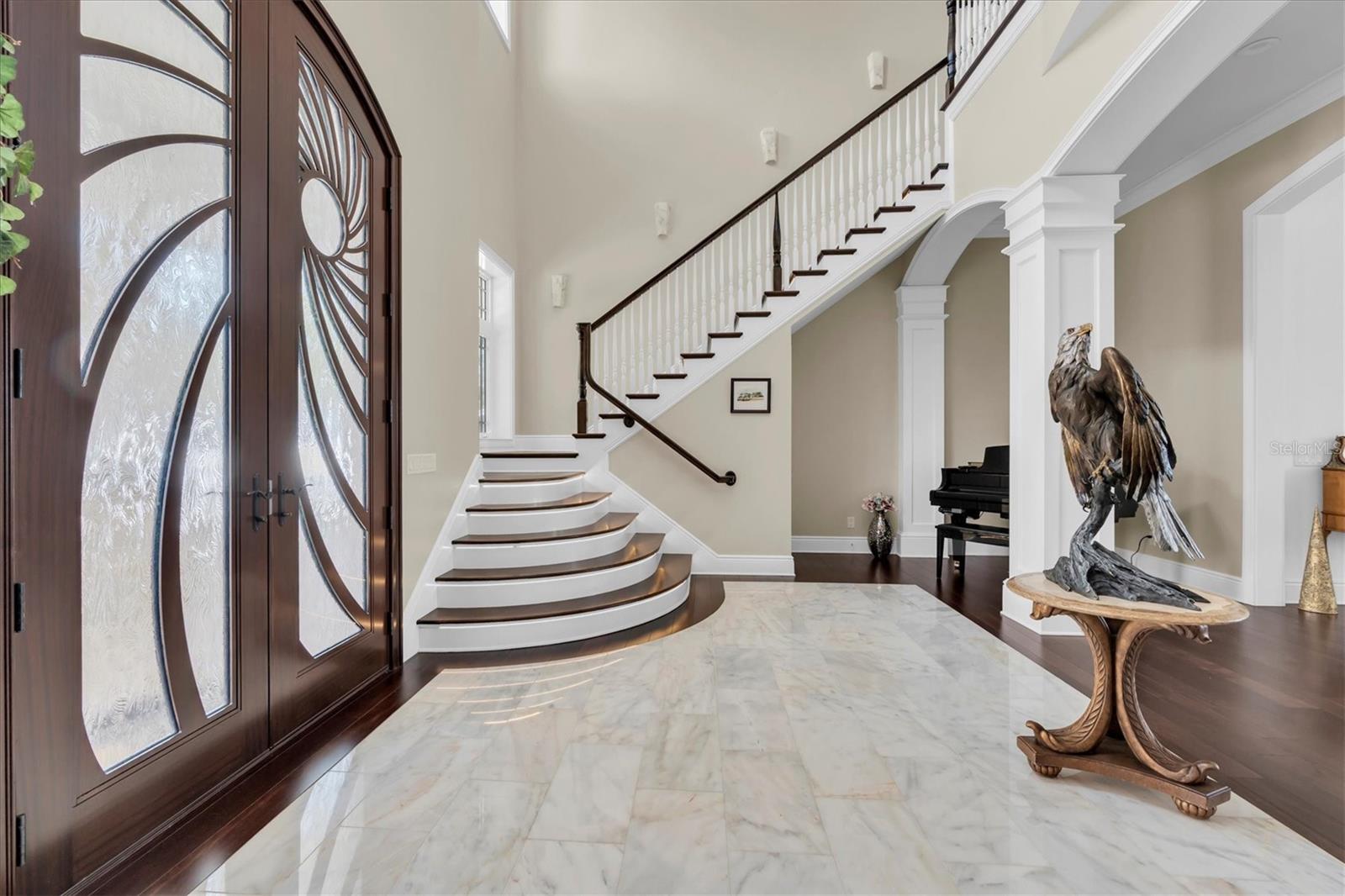 Tucked away on a quiet and beautiful 1 acre lot on Lake Tarpon, this stunning residence offers magnificent water views from nearly every room with one of the most private entrances and lot in the area.