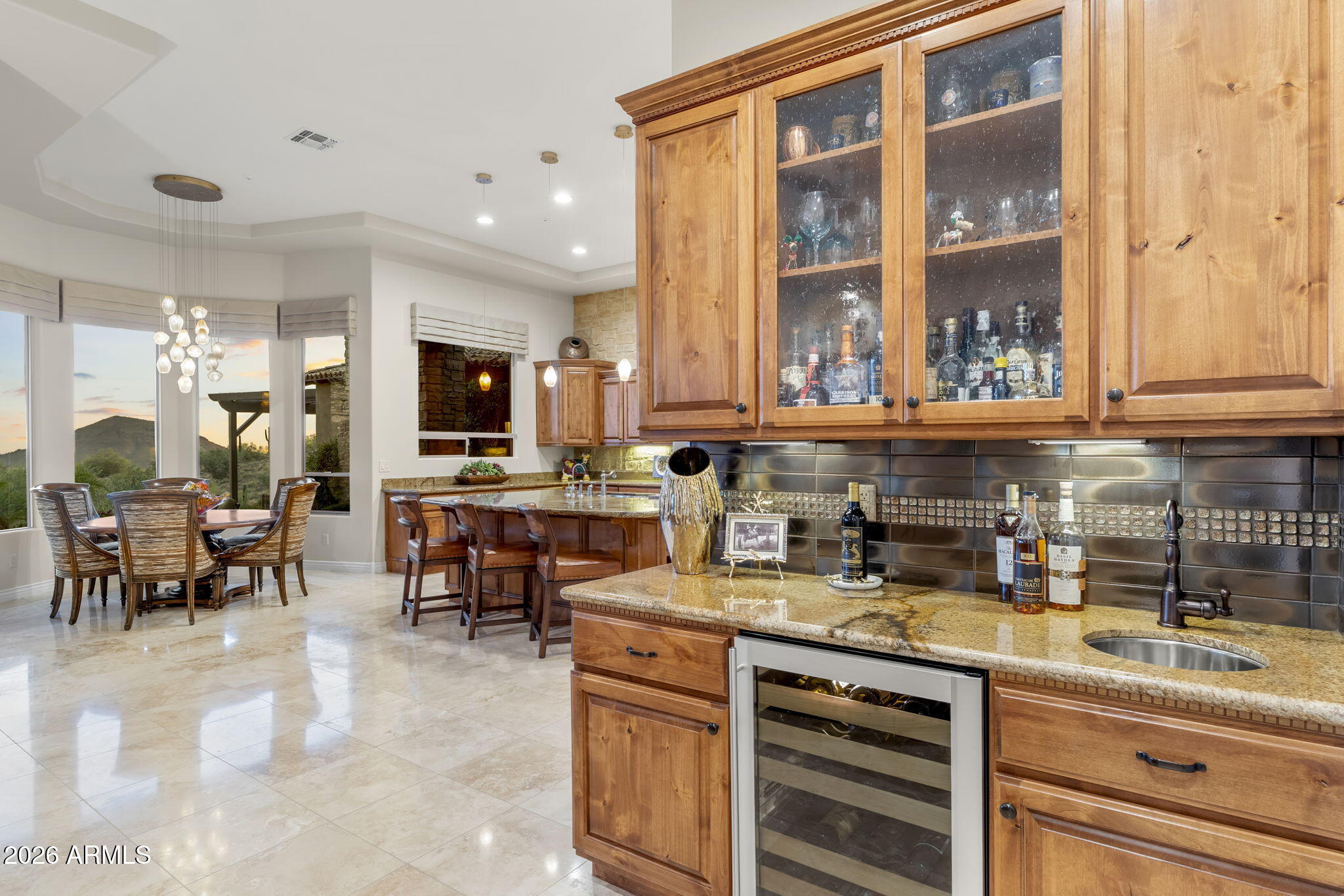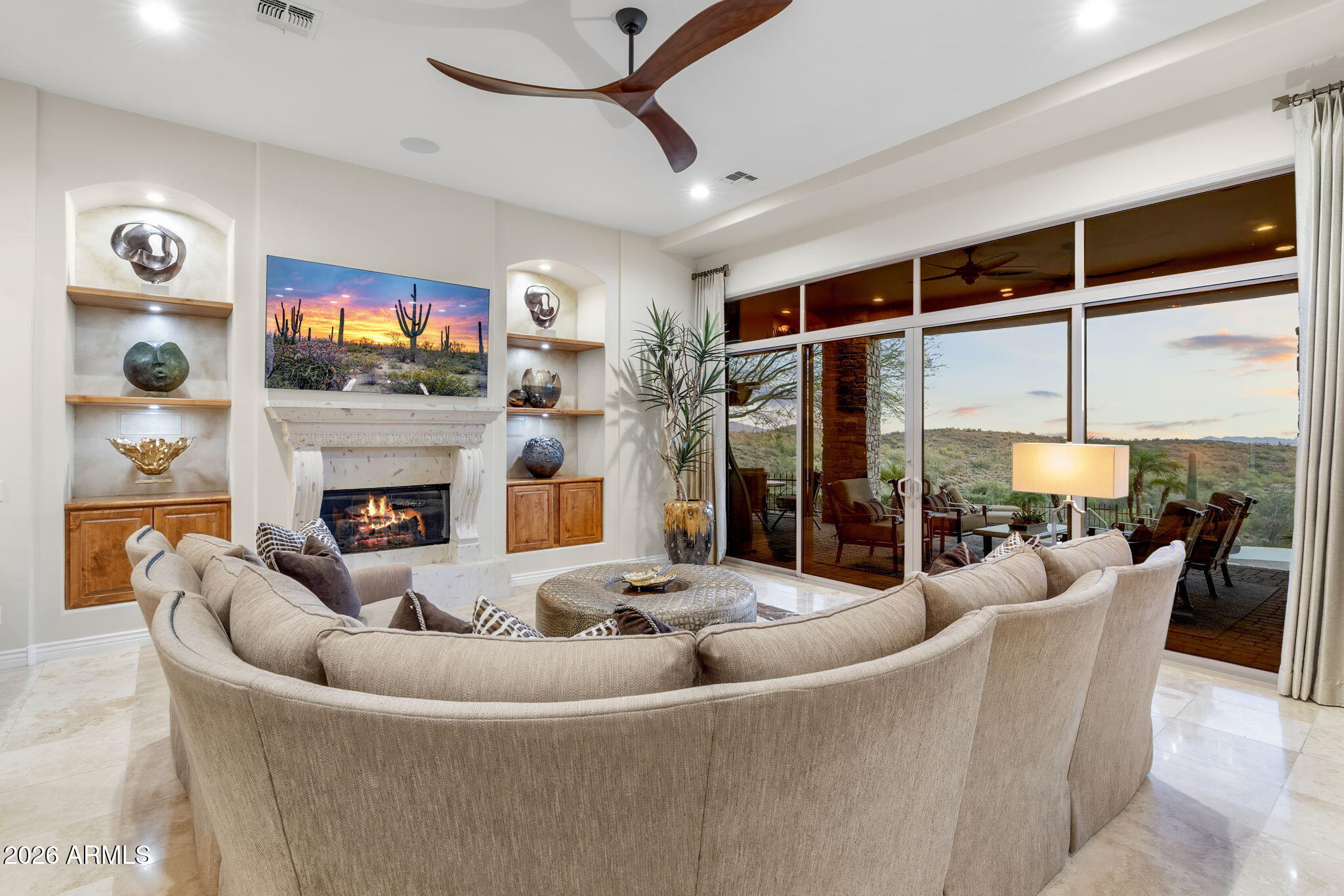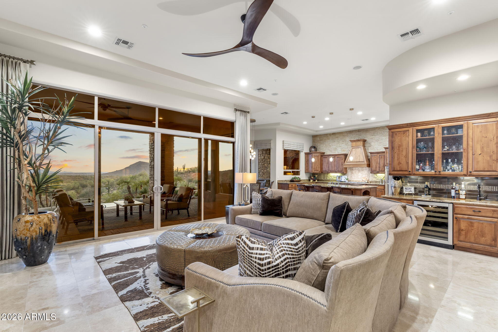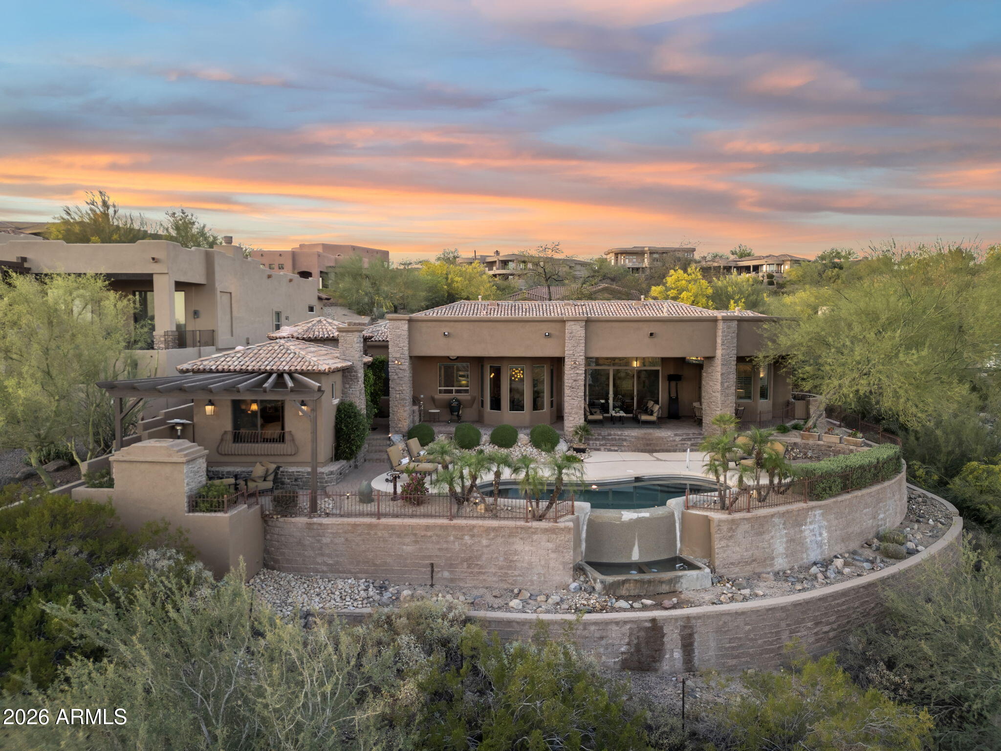 Rare opportunity to own a beautifully updated view property with private guest casita on an elevated ridgeline homesite along Camelview Drive in the highly sought-after gated golf community of Eagle Mountain in Fountain Hills--one of Arizonas premier desert communities known for its protected dark skies, stunning mountain scenery, and breathtaking city light views.Welcome to 15117 E Camelview Drive, an exceptional residence perfectly positioned to capture abundant mountain vistas by day and spectacular city lights by night. Situated along one of Eagle Mountains most desirable view corridors, this elevated homesite offers privacy, dramatic desert surroundings, and sweeping Sonoran Desert views that define luxury living in Fountain Hills. The spacious 3,625 sq ft floor plan features 4 bedrooms and 3.5 baths in the main residence, plus a private detached 1-bedroom, 1-bath guest casita complete with a wet bar and its own fireplace, creating the perfect space for visiting guests, multigenerational living, or a private office retreat.Stylish updates throughout create a fresh, move-in-ready feel, including new appliances, upgraded finishes, and refined design elements that complement the homes timeless architecture. The gourmet kitchen is designed for both entertaining and everyday living and features abundant cabinetry, premium countertops, a butlers pantry, wet bar, and separate wine storage.The primary suite offers a luxurious private retreat featuring a stunning two-way fireplace that creates warmth and ambiance between the bedroom and spa-inspired bath, enhancing the homes resort-style feel.Outdoor living is equally impressive. The backyard is a true Arizona retreat where indoor and outdoor spaces blend seamlessly. Enjoy the dramatic negative-edge pool, lush desert landscaping, paver patio, built-in BBQ, gazebo seating area, and freestanding fireplace--perfect for relaxing evenings under expansive desert skies while taking in panoramic mountain views and the sparkling lights of the Valley below.Additional highlights include an oversized air-conditioned 3-car garage with epoxy flooring, quality stone flooring, and meticulous pride of ownership throughout.Eagle Mountain is one of Fountain Hills most desirable gated golf communities, offering elevated homesites, natural desert preserves, and access to the highly regarded Eagle Mountain Golf Club, consistently ranked among the most scenic golf courses in the region.Fountain Hills itself holds the rare distinction of being an International Dark Sky Community, recognized for preserving natural night skies and limiting light pollution--allowing residents to enjoy remarkably star-filled evenings and the peaceful beauty of the Sonoran Desert.Residents enjoy a unique blend of small-town charm and outdoor lifestyle, with nearby hiking and biking trails, world-class golf, boating on nearby Saguaro Lake, and the iconic Fountain Hills fountain--the fourth tallest fountain in the world--all while remaining just minutes from Scottsdale dining, shopping, and entertainment.Homes with this combination of elevated city light views, negative-edge pool, and private guest casita rarely become available in Eagle Mountain and are even more impressive in person than photos can capture.A rare opportunity to own a private desert retreat with views, versatility, and timeless Arizona beauty in one of the Valleys most distinctive communities.
