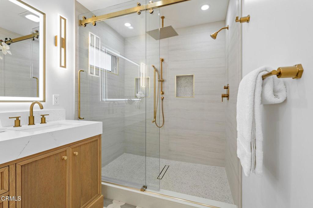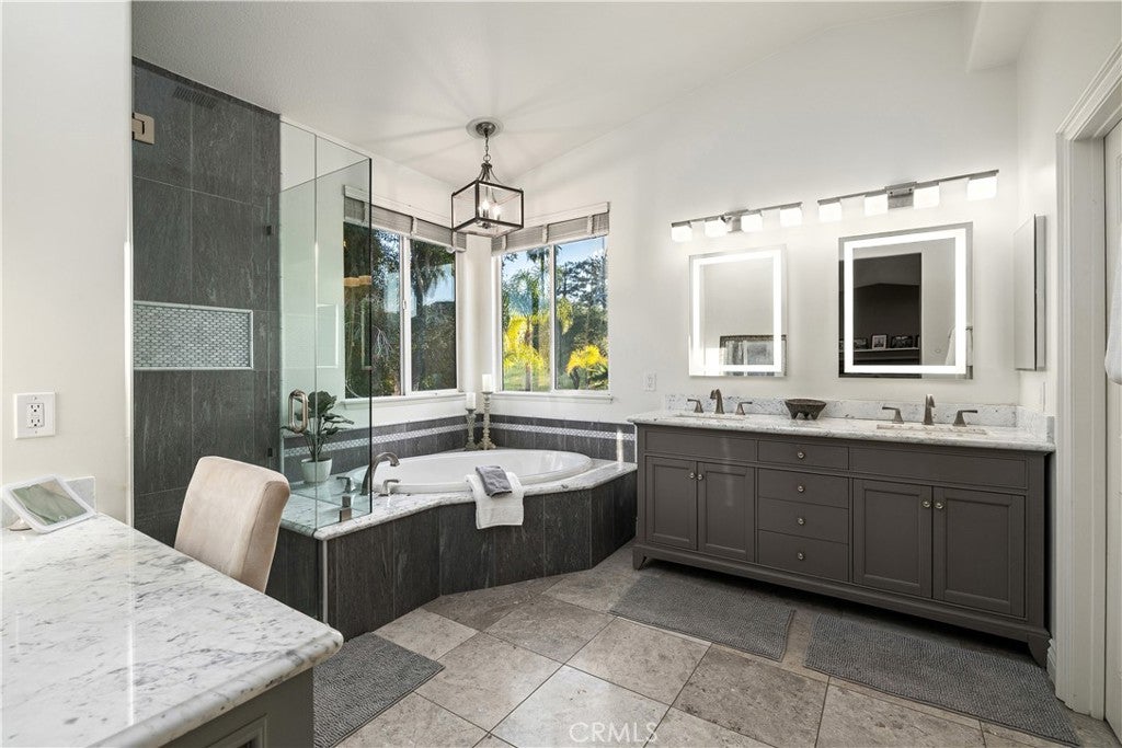 Discover unparalleled living in this meticulously remodeled 4-bedroom, 3-bath home, where every detail has been thoughtfully updated. The exterior showcases a durable metal roof and new stucco, ensuring both curb appeal and longevity. Step inside to an all-new interior, from the modern kitchen with its high-end appliance, waterfall island to the majestic fireplace, Custom cabinetry stylishly appointed bathrooms, including a water room and a convenient, dedicated laundry room.Think economics with new windows, doors, electric panel, HVAC, a/c, automatic shades and car charger.The beauty of this home is a rare art piece. Every detail has a significant personal detailed touch.The outdoor spaces are just as impressive. A beautiful new gazebo sits within the tiered landscape with sprinklers and lighting creating an ideal spot for relaxation, and outside kitchen for the ultimate in alfresco dining & entertaining. Full size Olive, avocado, persimmon trees, beautifully finished concrete stairs and iron fencings round the brick tiered yard. The elevated location provides spectacular, sweeping views of the city lights, the Pacific Ocean, and the majestic mountains. The oversized lot will allow for many activities and friendly gatherings. Parking driveway was expanding for four cars. Coming home every day will be a joy. As a bonus, an optional Ondulando Club membership is available, offering a community hub with a pool, pickleball. Living the Hillside life with space to grow and unparalleled views in a like new home might be just what you need...Come by for the list of upgrades.