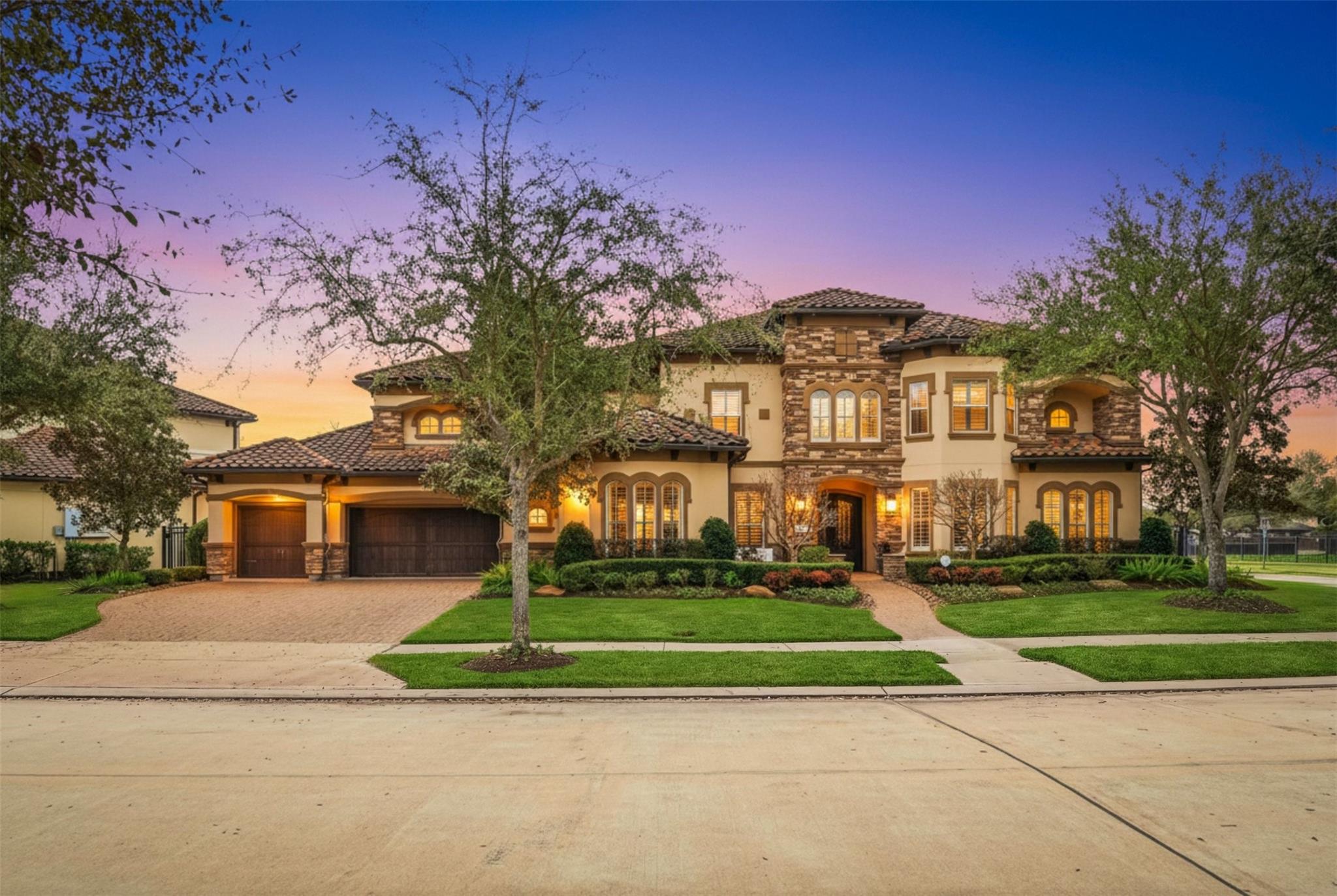 SLEEK CUSTOM ESTATE in the HIGHLY SOUGHT-AFTER master planned community of Riverstone! Impeccably maintained, beautifully updated & LOADED W/ UPGRADES!! Situated on a corner lot & backing to a beautiful green belt this home will impress starting with its beautiful elevation. Double doors lead to a world of luxury starting w/a dramatic 2 story grand entry! Study w/custom built ins plus elegant formal dinning & living are perfect for entertaining! Formal living room could be a second study. Oversized 2 story family room with picture windows w/electric shades. Gourmet island kitchen featuring custom cabinetry, high end appliances and sunken wine room w/wine fridge. Luxurious primary suite w/porcelain accent walls, electric fireplace and study nook. Spa-like primary bathroom w/high end finishes and 2 closets. 2 bedrooms down, 3 beds plus game room & media up. Oversized covered patio, outdoor kitchen, fireplace, pool, plenty of green space and so much more! Call the Aida Younis Team today!