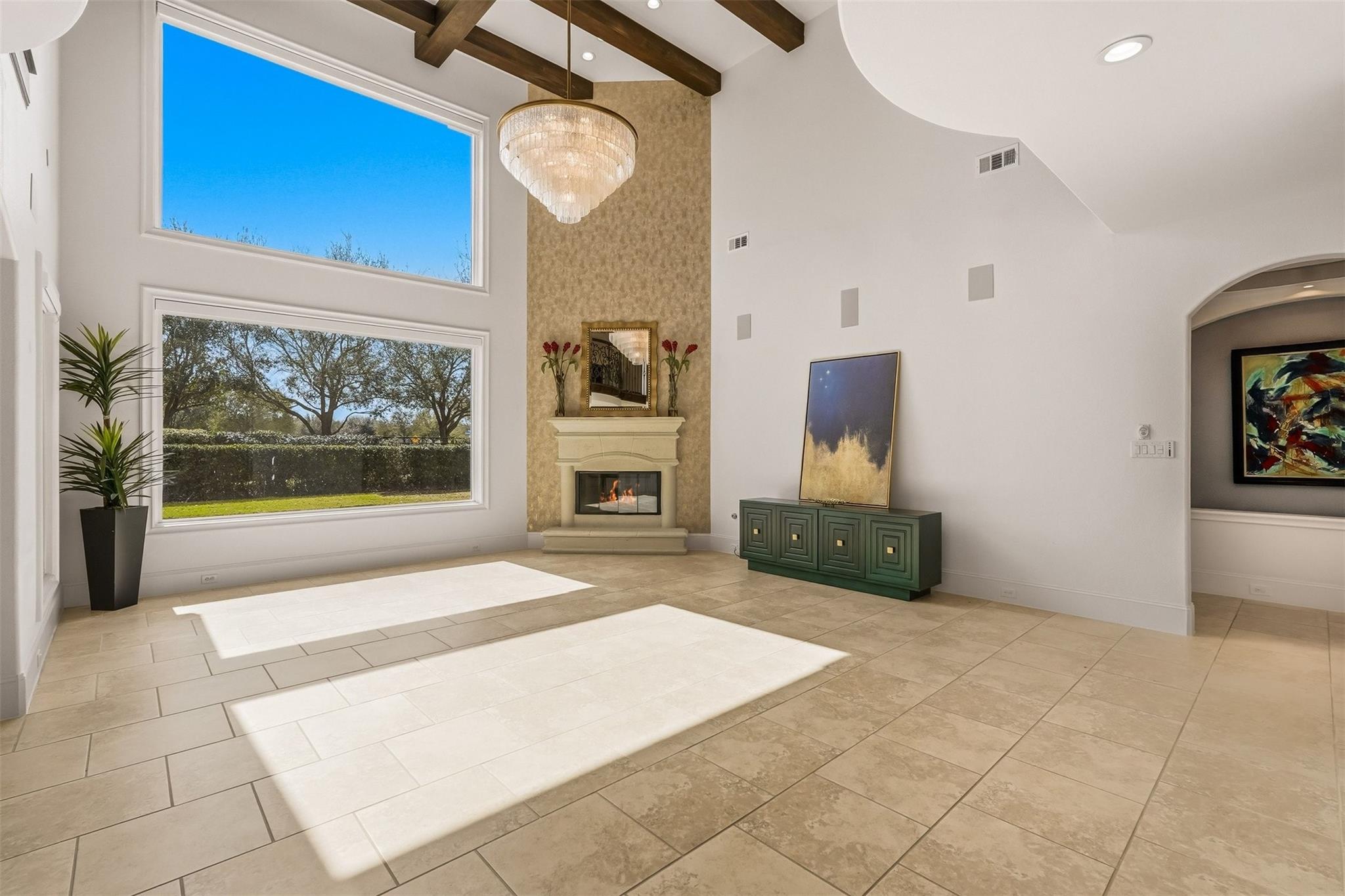 Stunning white-painted brick estate built by Darling Homes with over 400.000 in Upgrades & Improvements in Friscos most desirable gated guarded neighborhood, Newman Village! Show stopping private resort-style backyard perfect for entertaining family & friends with a custom pool with smart phone controls, spacious covered patio with a fireplace, outdoor kitchen plus fully automatic custom landscape lighting with smart phone controls. The ideal perfect multi generational floor plan, impressive primary suite downstairs with fireplace & terrific views of the gorgeous backyard, private in-law casita with its own outdoor living space, front 3-car swing garage, media & office on 1st floor, 3 generous sized secondary bedrooms up all with ensuite baths plus a game room. Designer finishes and numerous upgrades throughout. Wide open floor plan with large windows, soaring ceilings & abundant natural light. Additional Main Garage refrigerator water line, features: wired video surveillance system, Tesla Car charger, Nest doorbell, thermostats & door locks, high speed fiber optics optional access, Commercial grade WIFI inside and out, house audio system indoor and outdoor. centralized telecom closet w UPS backup, custom built-ins, extensive wood flooring & designer lighting. High-End gourmet chef inspired kitchen with commercial appliances & large eat-in island. This 5 bedroom white-painted brick home is move-in ready! Newman Village is known for its sophisticated classical architecture & desirable location with quick access to PGA, DNT, The Star, HEB, shopping, dining & entertainment. Community pool & tennis courts! Great schools. This one will go fast!