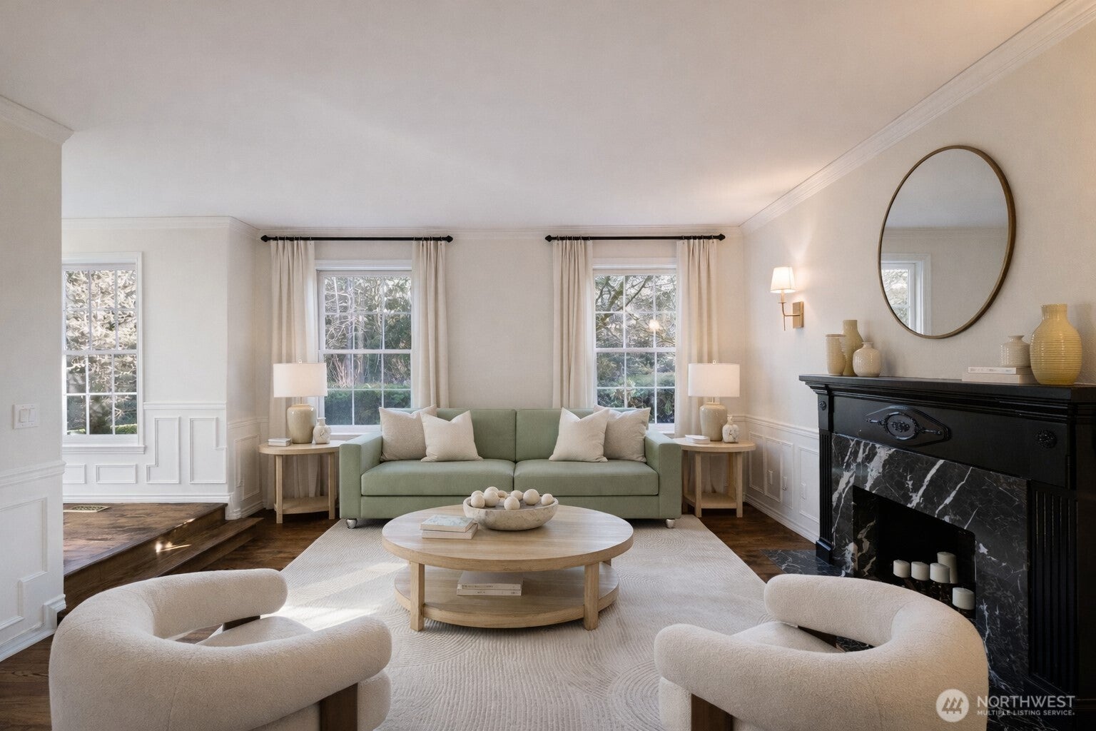 Nestled in a quiet cul-de-sac within the coveted Broadmoore Estates community and backing to a peaceful greenbelt, this extensively updated home offers an exceptional blend of sophistication and versatility. Designed for modern living, the home features three distinct living spaces, including an oversized bonus room that provides endless possibilities for entertaining, relaxing, or working from home. Thoughtful upgrades throughout elevate every space, with rich hardwood flooring, designer lighting, and carefully curated finishes creating a refined yet welcoming atmosphere. The updated kitchen serves as a stunning centerpiece, seamlessly connecting to the main living areas for effortless flowperfect for both lively gatherings and everyday living. Step outside to an expansive deck designed for entertaining, where you can host guests or unwind while enjoying the tranquil natural surroundings. Inside, updated baths showcase spa-inspired details, and spacious, light-filled bedrooms offer comfortable retreats. Ideally located within the prestigious Lake Washington School District and just minutes from parks, shopping, dining, and commuter routes, this home combines luxury, function, and conveniencean exceptional opportunity in sought-after Broadmoore Estates.Estates.