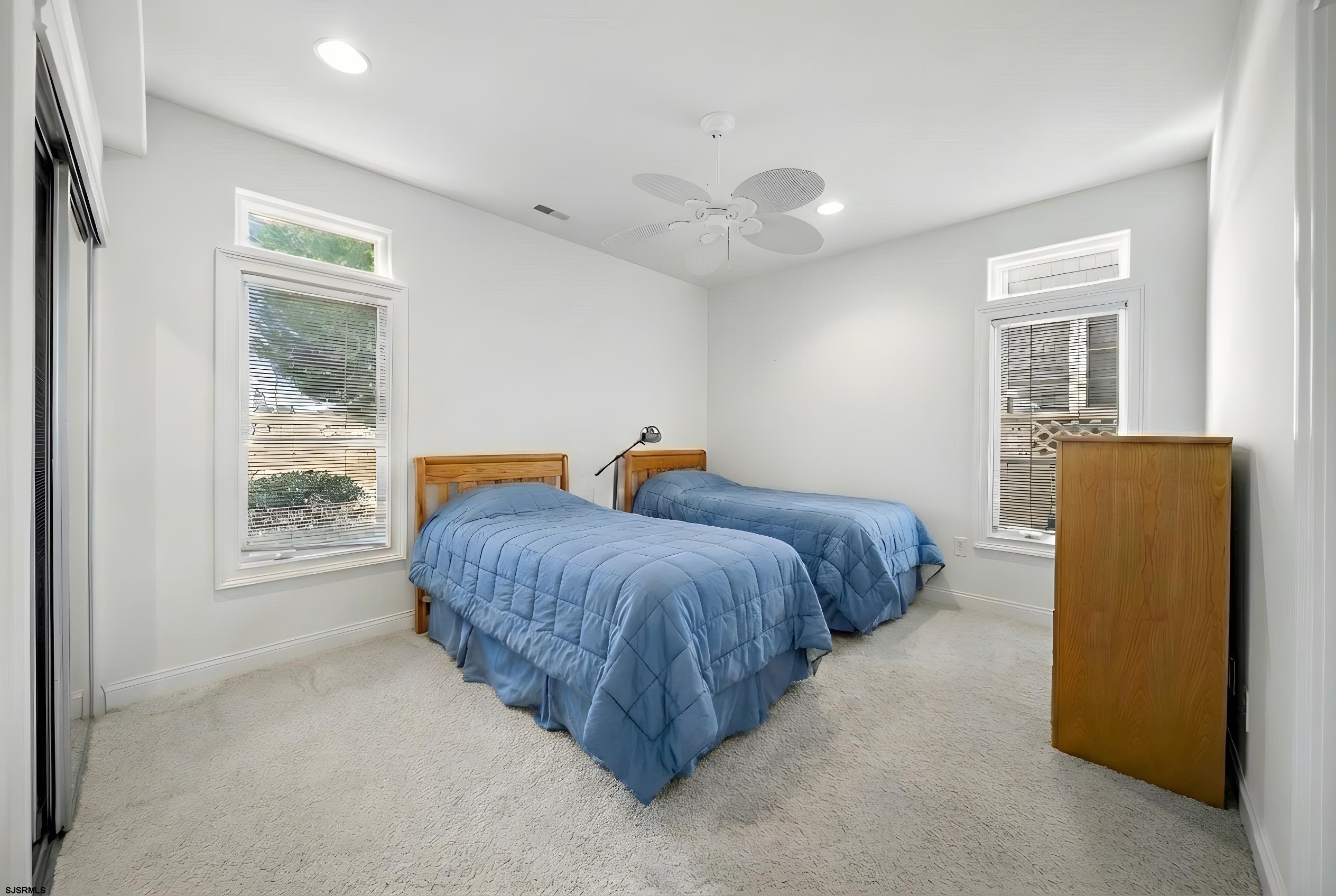 Just four properties to the beach in desirable Brigantine, this exceptional three-story coastal residence is the definition of elevated shore livingcrafted for those who want the luxury of space, light, and effortless entertaining wrapped in a true beach lifestyle. With 5 bedrooms, 3.5 baths, a 2-car garage, and an elevator servicing every level, the home is designed to welcome generations of family and friends with ease, from sun-soaked summer weekends to elegant off-season escapes. The experience begins where beach living belongson the third-floor main living level, where vaulted ceilings and a flood of natural light pour through expansive windows, creating an airy, uplifting atmosphere all day long. An open-concept layout connects the heart of the home: a timeless kitchen with crisp white cabinetry, stainless steel appliances, granite countertops, and a generous island perfect for gathering over coffee, cocktails, or fresh coastal fare. Tucked into a charming alcove, the kitchen seating area opens to a private deck with some ocean views, inviting slow mornings with sea breezes and golden light. The dining area flows beautifully into the family room, where one of three stunning tiled fireplaces anchors the space with warmth and stylecomplete with custom shelving and a TVbefore opening to an expansive deck made for sunset dinners, lively entertaining, and listening to the rhythm of the shore. The second floor is a private retreat, anchored by a stately primary suite positioned at the front of the home. A beautiful fireplace adds a boutique-hotel feel, while the spa-inspired bath features a jacuzzi tub, walk-in tiled shower, and a large walk-in closet. Step outside to your private deck and take in the coastal airan ideal spot for morning quiet or evening unwinding after the beach. Down the hall, a generous open landing creates the perfect library or sitting lounge, leading to two spacious bedroomseach easily accommodating king-size bedroom furnitureand a shared bath with an expansive white double vanity and a beautifully finished tub/shower combination. On the first floor, the home welcomes you with elegant tilework and a relaxed, resort-style vibecomplete with a full bar area and a large family room centered around another dramatic tiled fireplace. Sliders open to a private outdoor patio framed by lush landscaping, and after long days on the sand, the outdoor enclosed shower becomes one of those everyday luxuries youll wonder how you lived without. Two additional spacious bedroomsone currently styled as an officeshare a full bath featuring a double white vanity and a beautifully tiled walk-in shower, offering flexibility for guests, work-from-home, or a private wellness space. Perfectly positioned for the best of Brigantine, youre not only steps from the shoreline, but also a walk to the center of town, where shopping, dining, and coastal charm complete the lifestyle. This is more than a homeits a refined beach escape designed for comfort, connection, and unforgettable shore seasons.