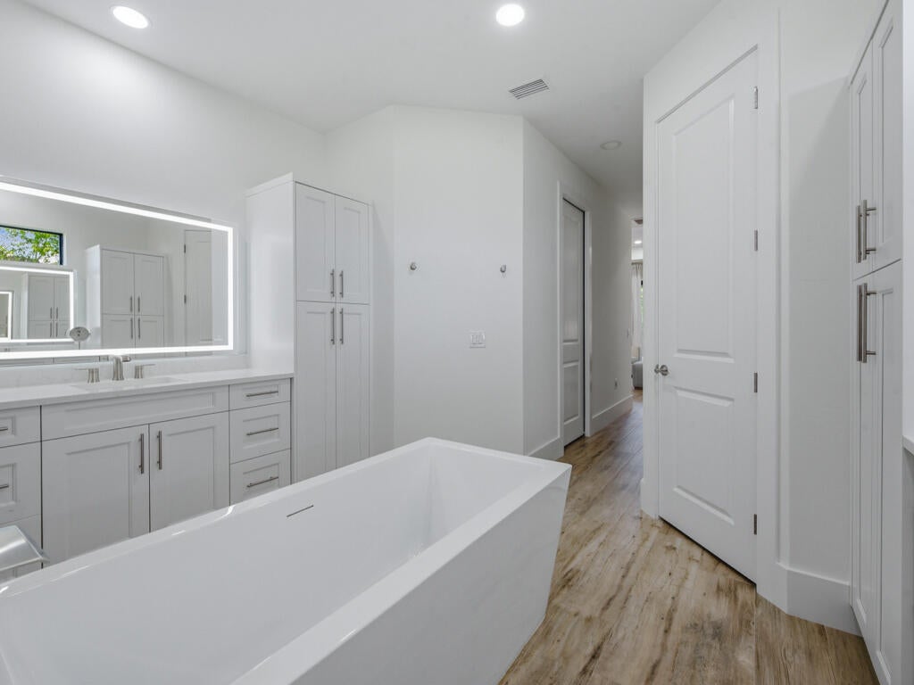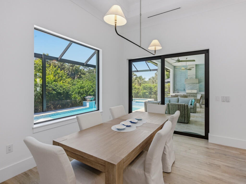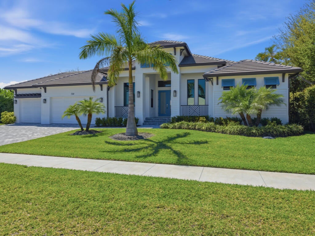 Gorgeous, custom built home (2024) features luxurious finishes throughout and a prime location near Tigertail Beach. This magnificent home boasts 4 bedrooms, 3 baths, 3 car garage, and an extended lanai. The main living space offers a desirable open floor plan with tile flooring throughout and ample natural light.