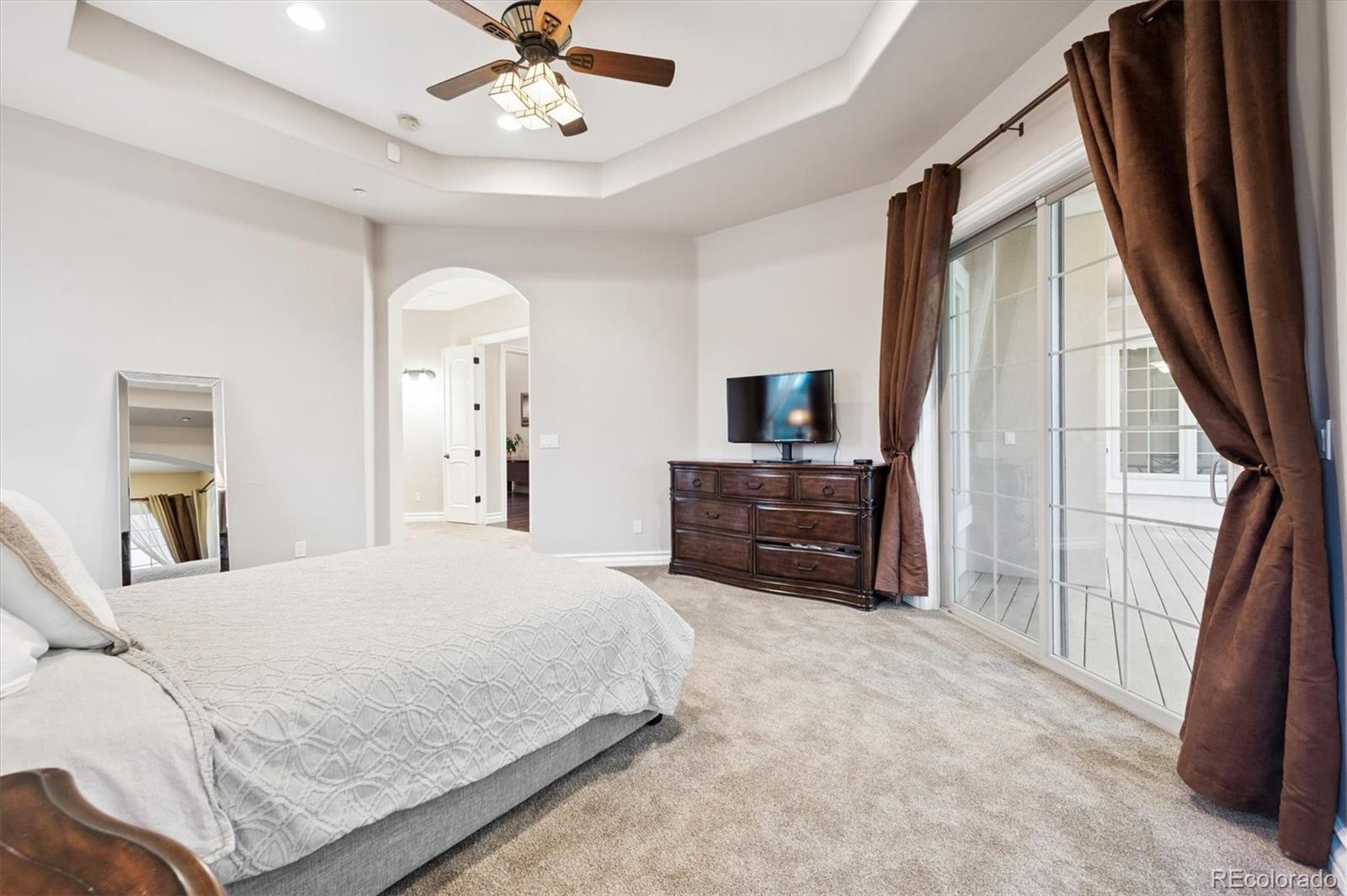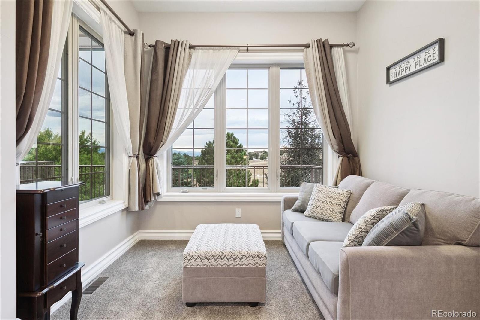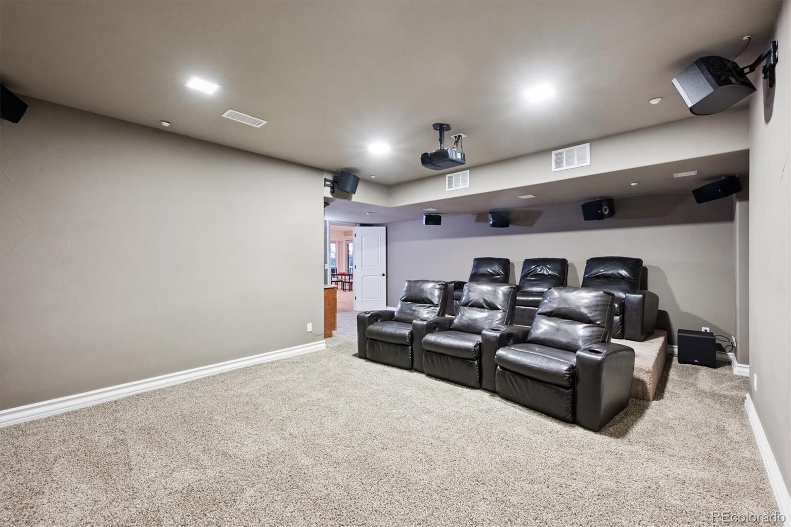Welcome home to serene country living situated on nearly 5.5 acres with breathtaking mountain views and the best part is that the property is only a mile from Downtown Parker! A private, quarter-mile drive arrives at 7372 Talon Trail; a sprawling ranch residence defined by intentional design, seamless flow, and refined finishes throughout. A newer steel-coated roof and professional landscaping greet you from outside and unfold to 12 ceilings with coffered detail, tile-inlay hardwood floors, and over 6,800 sqft of functional living and entertaining space. The main level features formal living and dining spaces, a spacious family room anchored by a dual-sided gas fireplace, and a well-appointed kitchen with granite countertops, a stainless-steel GE Monogram appliance package, a center island, and custom cabinetry. Retreat to the main-level primary suite, complete with deck access, a private sitting area, dual walk-in closets, and a spa-like 5-piece bath. Step outside to a sizable composite deck to take in sunset and mountain views. The finished lower level is an entertainers dream, featuring a spacious recreation room, a sleek wet bar, a game area, and a state-of-the-art home theater with a projector and tiered seating. A secluded guest suite or mother-in-law suite rounds out the lower level and offers easy access to the outdoors. Step outside to the stamped concrete patio to relax under the stars in the hot tub while overlooking mature professional landscaping. Additional features of this turnkey residence include a designated home office, a private well and septic, newer dual furnaces, upgraded Daikin AC, and a 4-car finished garage with epoxy flooring and integrated LED lighting. Just minutes from Downtown Parkers extensive dining, shopping, and entertainment, along with award-winning Douglas County Schools, this location offers the perfect balance of convenience and country living.