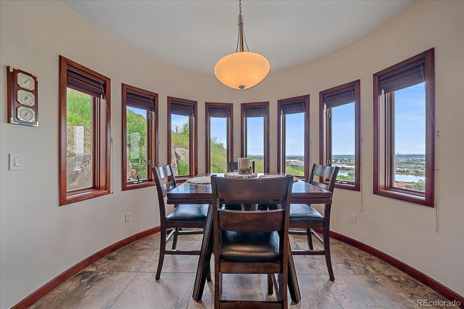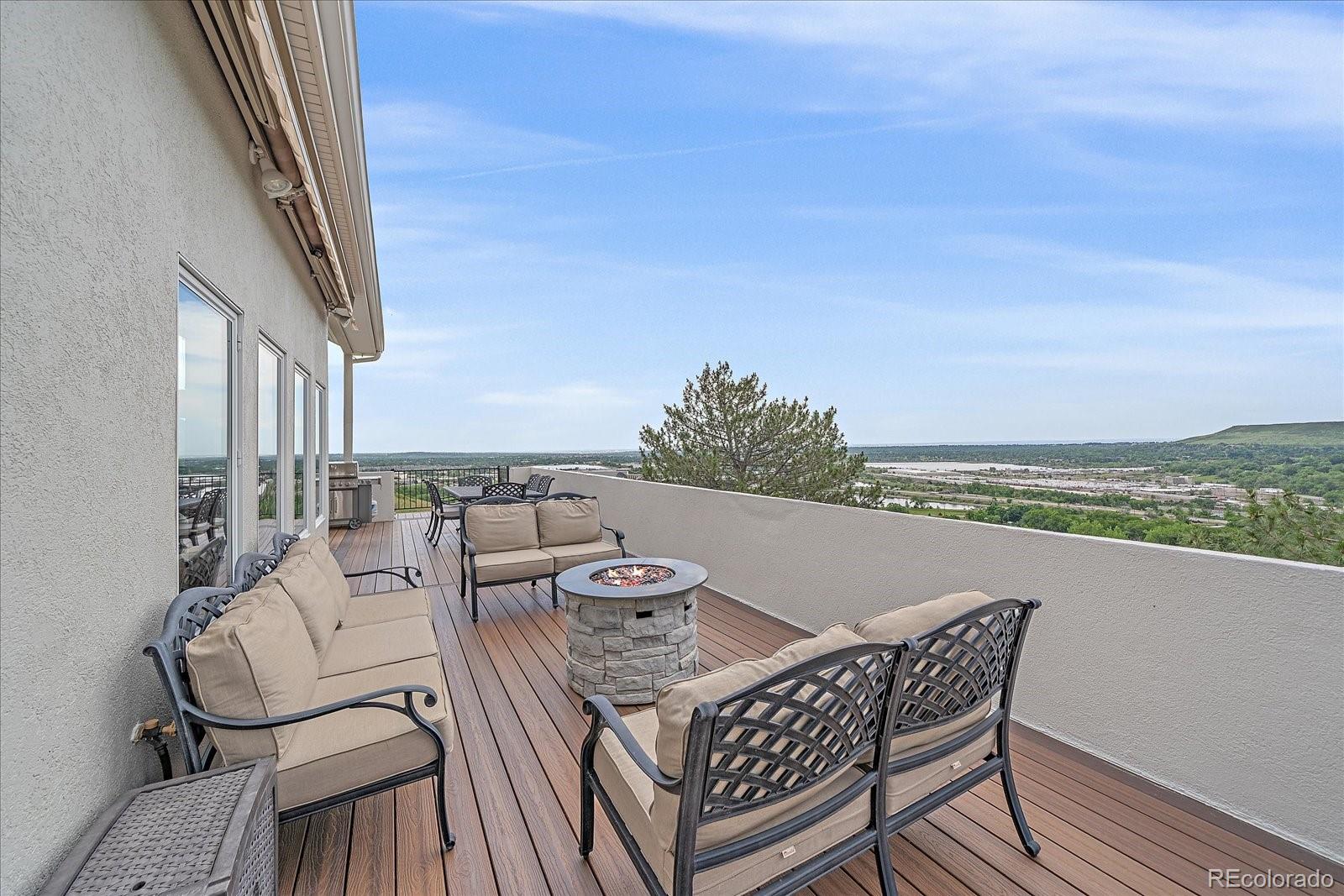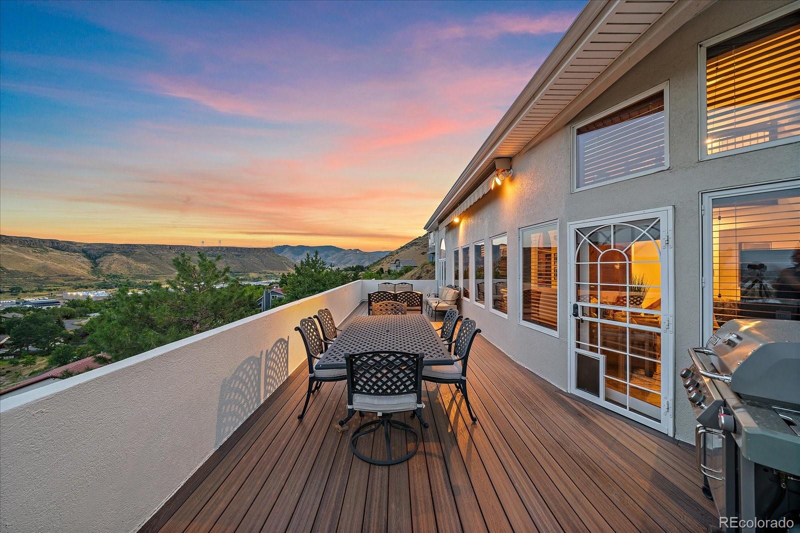 Perched atop North Table Mountain, this one-of-a-kind home offers the rare experience of mountain living with sweeping, unobstructed viewswhile remaining just minutes from the heart of downtown Golden. From sunrise to sunset, enjoy breathtaking vistas of Golden, downtown Denver, North & South Table Mountain, and the surrounding foothills. The home welcomes you with a grand foyer and exquisite craftsmanship throughout. The main level features rich cherrywood paneling in the office and dining room, setting a warm, refined tone. A spacious kitchen with granite countertops, SS appliances, and a sunny dining nook flows seamlessly into the formal dining room and light-filled great room, where expansive windows frame the scenery. Step onto the deck to take in panoramic views and Colorados ever-changing skies. An office with a double-sided fireplace, a remodeled powder bath, and a flexible bonus room currently used as a bedroom complete the main level. Upstairs, the primary suite is a peaceful retreat with large windows and a newly remodeled five-piece bath. Two additional bedrooms and an updated full bath complete the upper level. The walk-out basement is ideal for entertaining, featuring a spacious family room with media center, wet bar, bath, and a versatile bonus room that can function as another bedroom area. Outside, a lower patio with a built-in fire pit offers the perfect place to unwind and enjoy the quiet surroundings. In addition to a two-car garage, the property includes a massive RV garagecurrently set up as a game room with a removable walloffering endless flexibility for recreation, storage, or hobbies. This exceptional location blends privacy, open space, and trail access with the convenience of being minutes from downtown Goldens shops, restaurants, and cultural attractions. With abundant wildlife, stunning scenery, and easy commutes to Boulder and Denver, North Table Mountain remains one of the Front Ranges most sought-after places to call home.