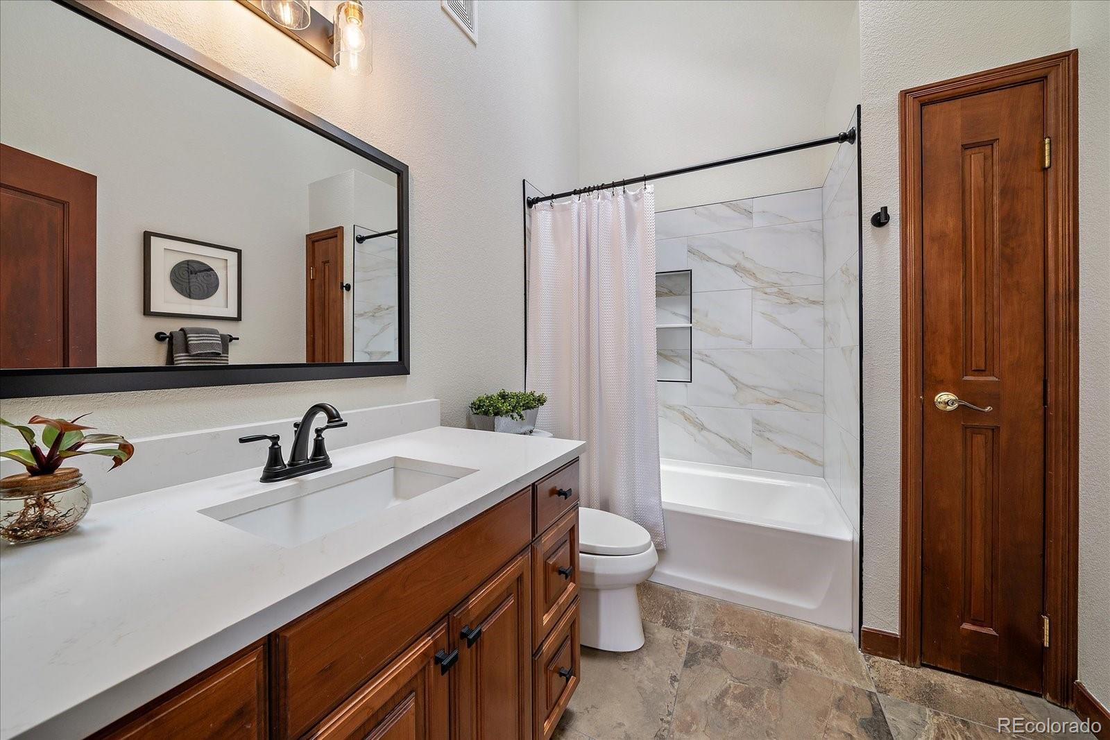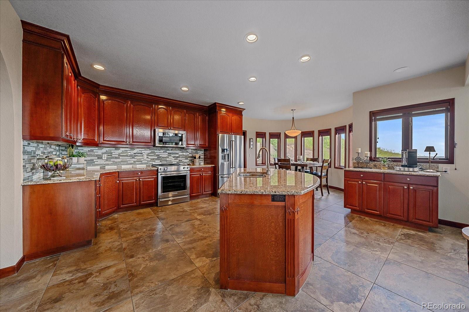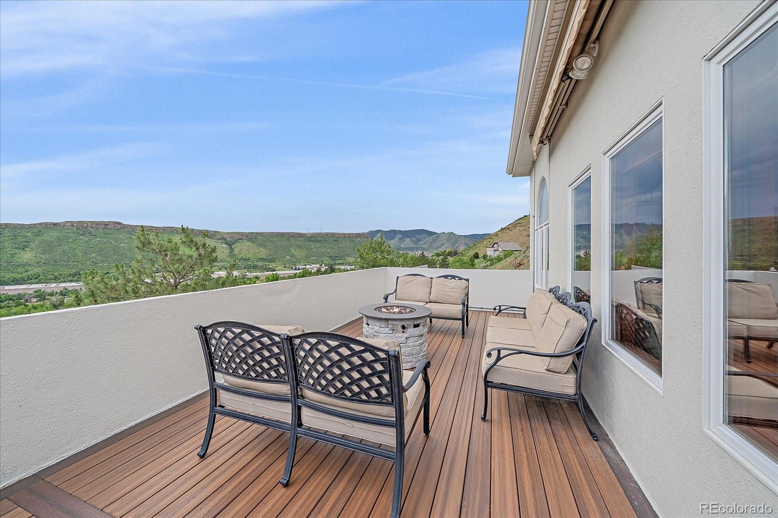 Perched atop North Table Mountain, this one-of-a-kind home offers the rare experience of mountain living with sweeping, unobstructed viewswhile remaining just minutes from the heart of downtown Golden. From sunrise to sunset, enjoy breathtaking vistas of Golden, downtown Denver, North & South Table Mountain, and the surrounding foothills. The home welcomes you with a grand foyer and exquisite craftsmanship throughout. The main level features rich cherrywood paneling in the office and dining room, setting a warm, refined tone. A spacious kitchen with granite countertops, SS appliances, and a sunny dining nook flows seamlessly into the formal dining room and light-filled great room, where expansive windows frame the scenery. Step onto the deck to take in panoramic views and Colorados ever-changing skies. An office with a double-sided fireplace, a remodeled powder bath, and a flexible bonus room currently used as a bedroom complete the main level. Upstairs, the primary suite is a peaceful retreat with large windows and a newly remodeled five-piece bath. Two additional bedrooms and an updated full bath complete the upper level. The walk-out basement is ideal for entertaining, featuring a spacious family room with media center, wet bar, bath, and a versatile bonus room that can function as another bedroom area. Outside, a lower patio with a built-in fire pit offers the perfect place to unwind and enjoy the quiet surroundings. In addition to a two-car garage, the property includes a massive RV garagecurrently set up as a game room with a removable walloffering endless flexibility for recreation, storage, or hobbies. This exceptional location blends privacy, open space, and trail access with the convenience of being minutes from downtown Goldens shops, restaurants, and cultural attractions. With abundant wildlife, stunning scenery, and easy commutes to Boulder and Denver, North Table Mountain remains one of the Front Ranges most sought-after places to call home.