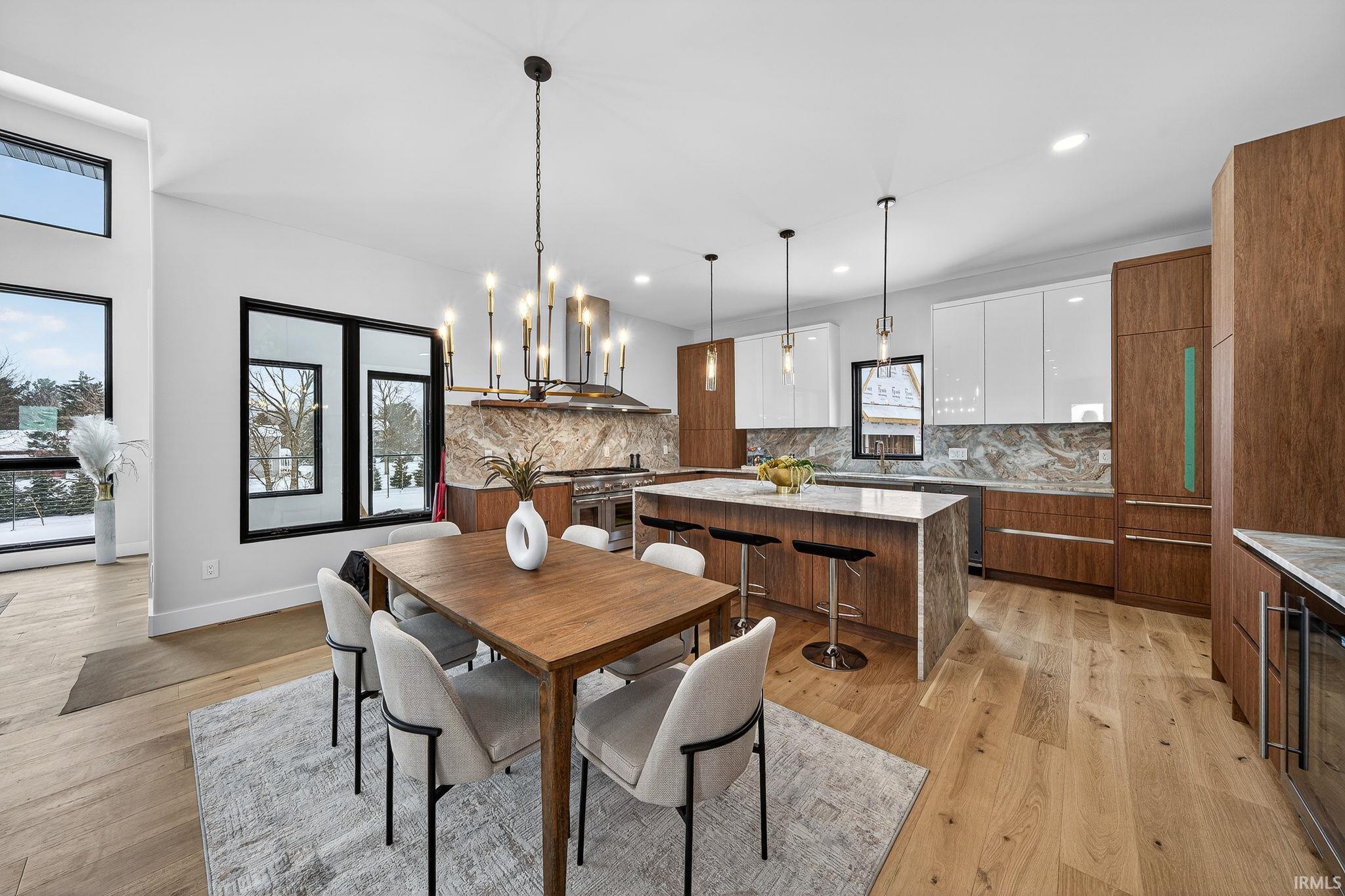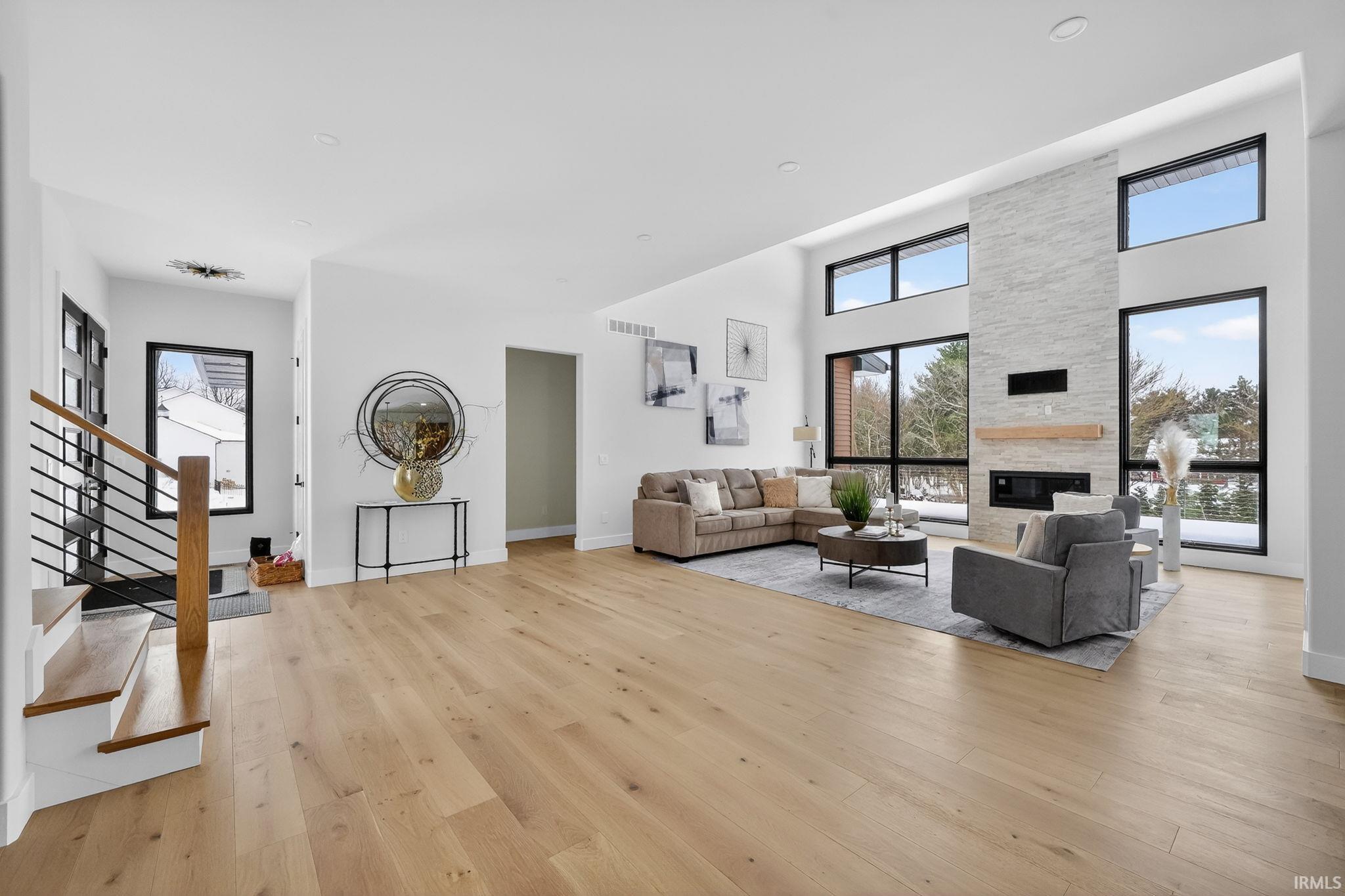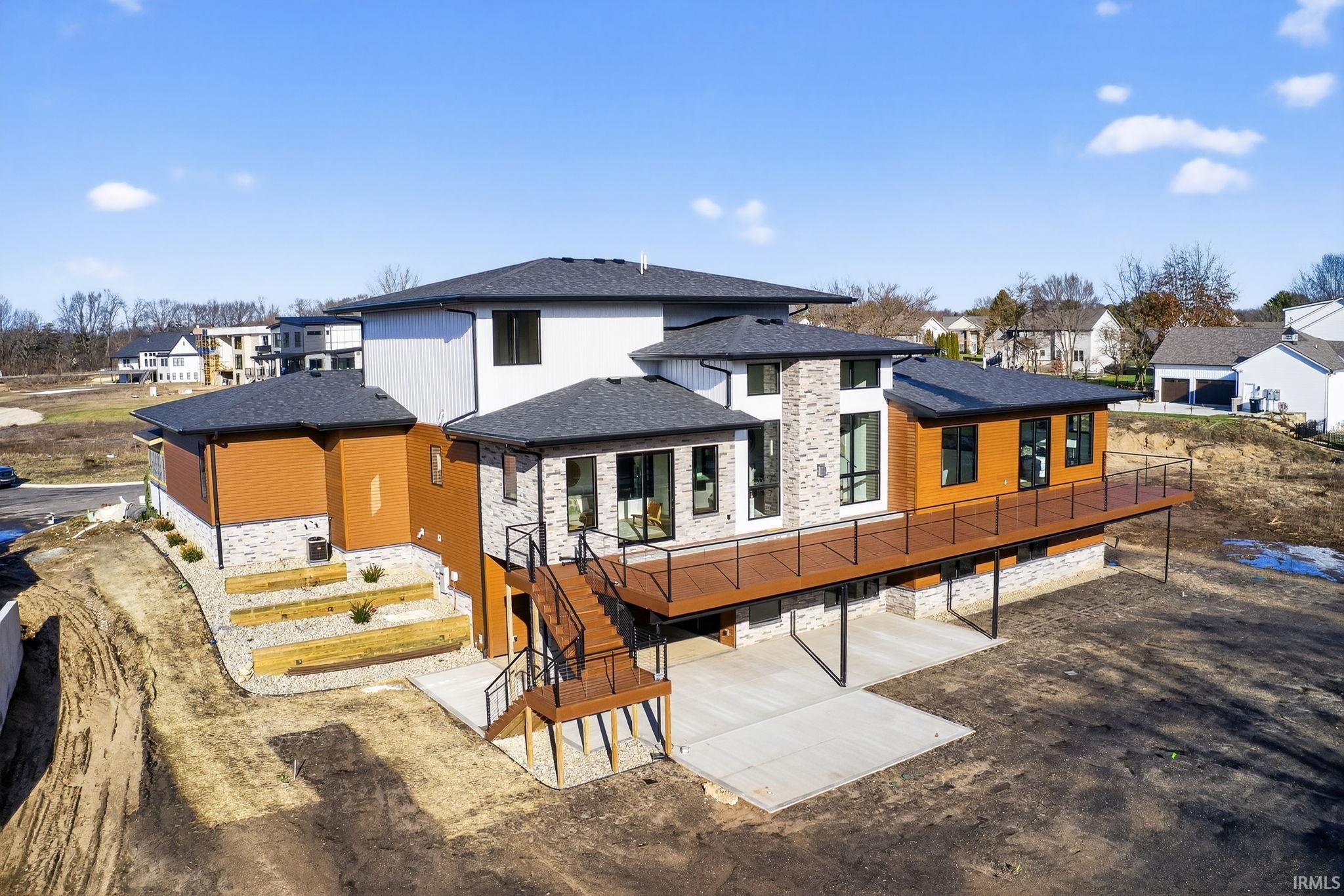 *OPEN HOUSE SUNDAY, MARCH 29TH FROM 2:30-5PM*Amazing lifestyle in this luxurious modern new construction by Shamrock Builders in Clover Hill! Scandinavian built in Penn Schools (Northpoint & Discovery) offers approximately 7,030 sq ft with five bedrooms, five full baths, and two half baths, featuring solid-wood engineered European oak flooring and quartz countertops. The main level features a 23 ft great room, a split floor plan with a luxurious primary suite, an office, and a private guest bedroom with a full bath. Spectacular kitchen with walk-in pantry, leathered granite countertops and island, Thermador appliances, opens to the great room and sunroom: 74x14 composite deck and full patio. Upstairs, there is a loft and two en-suite bedrooms. Finished lower-level walk-out features a family room with a fireplace, a 5th bedroom, a flex room, a workout room, a full bath, and a 1/2 bath. Attached 3-car finished garage. Large back yard ready to put a pool in! Minutes from Granger path, Knollwood CC, toll road, dining, and the University of Notre Dame!