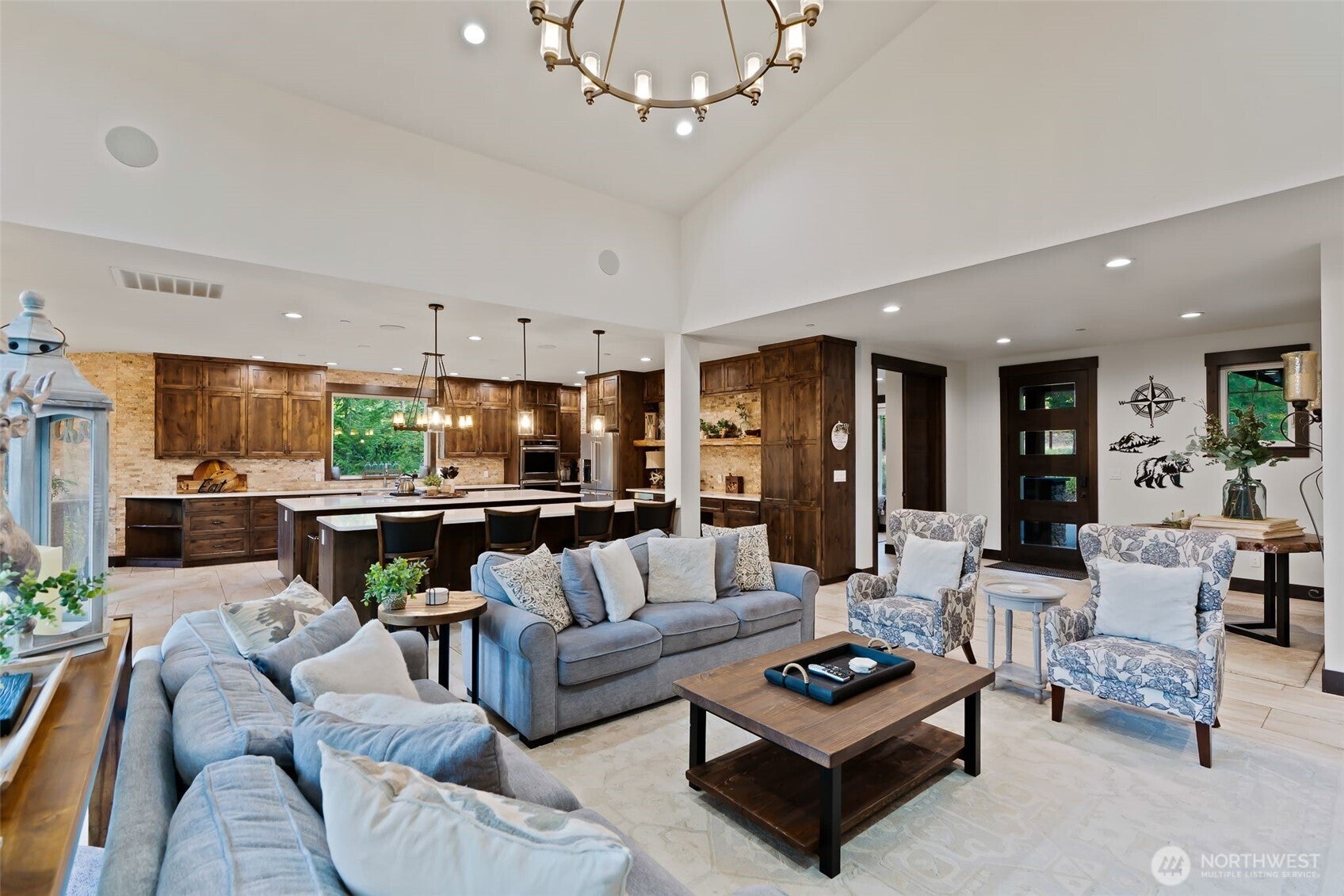 Spectacular mountain home in Suncadia with open-concept living and panoramic Cascade views. Main level features chefs gourmet kitchen offers double ovens, expansive center island, and dining bar flowing to great room with scenic outlooks. primary suite with spa-like bath; an additional bedroom ensuite on main level, 4.5 total baths serve bedrooms and guest spaces efficiently.