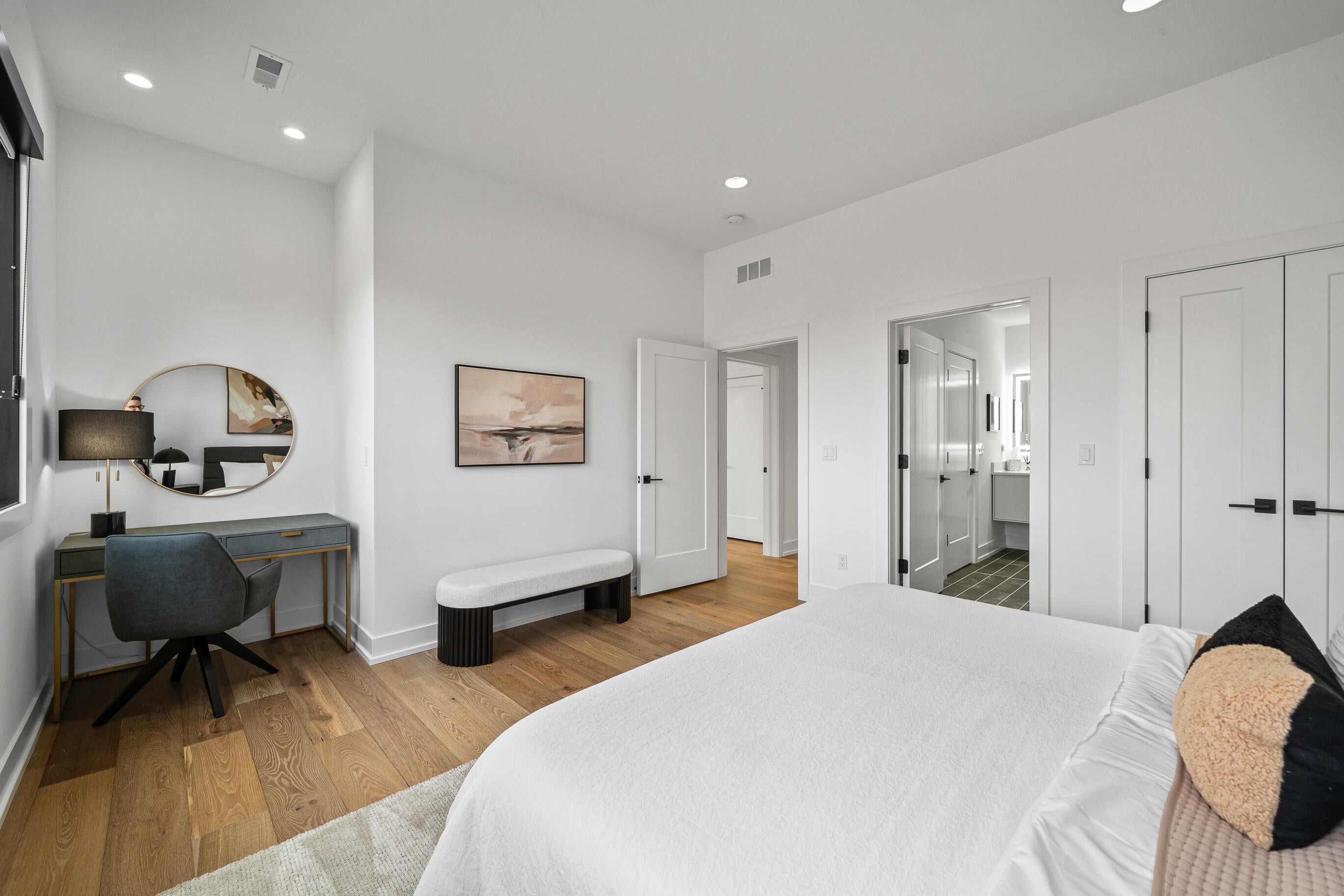 Stunning residence nestled on a quiet cul-de-sac in Memorial, featuring high-end finishes throughout. The open-concept layout showcases soaring ceilings, herringbone wood floors, and abundant natural light. The gourmet kitchen is equipped with custom cabinetry, stainless steel appliances, and a spacious islandideal for gatherings.
