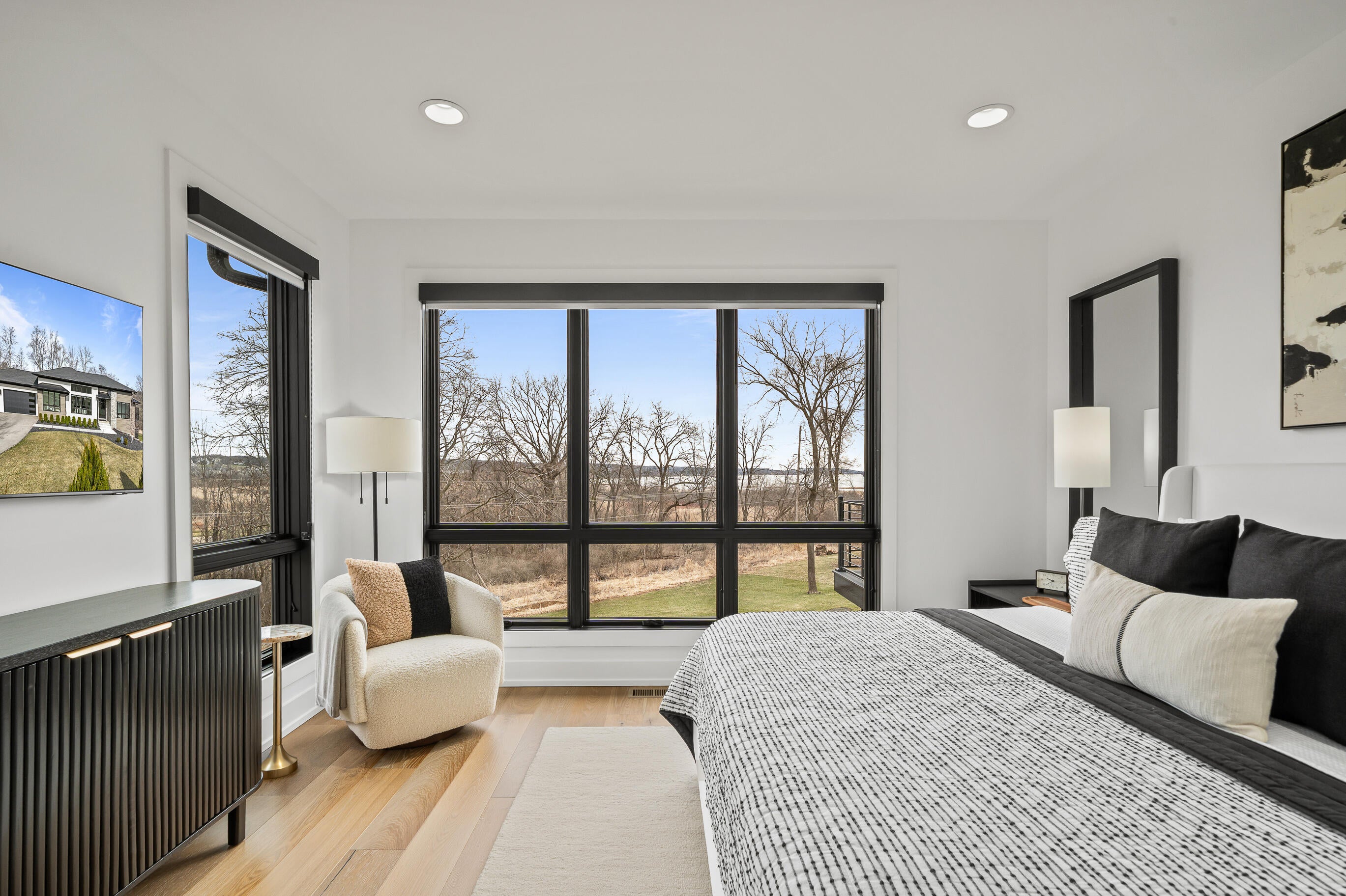 Spacious, modern 4-bedroom, 4-bath home with Lake Views. Nestled in The Preserve at Lakeview Glen with over 40 acres of nature preserve, this 2023-built home offers luxury and serenity minutes from Williams Bay and Lake Geneva.The striking main floor features dramatic 13-ft ceilings in the expansive family room, high end kitchen with subzero and wolf appliances, walk-out deck with lake views, a primary suite with luxurious bath, a second bedroom, 2nd full bath and access to the radiant-heated 3-car garage.The lower level includes radiant floor heating throughout, a large family room with walk-out patio, exercise room, wet bar, two bedrooms with ensuite baths, and a flexible space stubbed for a potential 5th bedroom & bath (bringing home to 4,000 sqft).