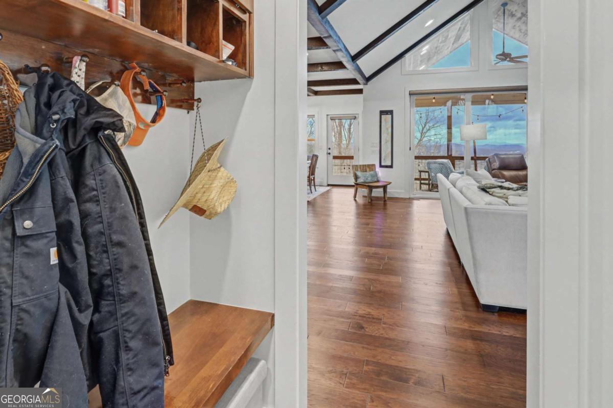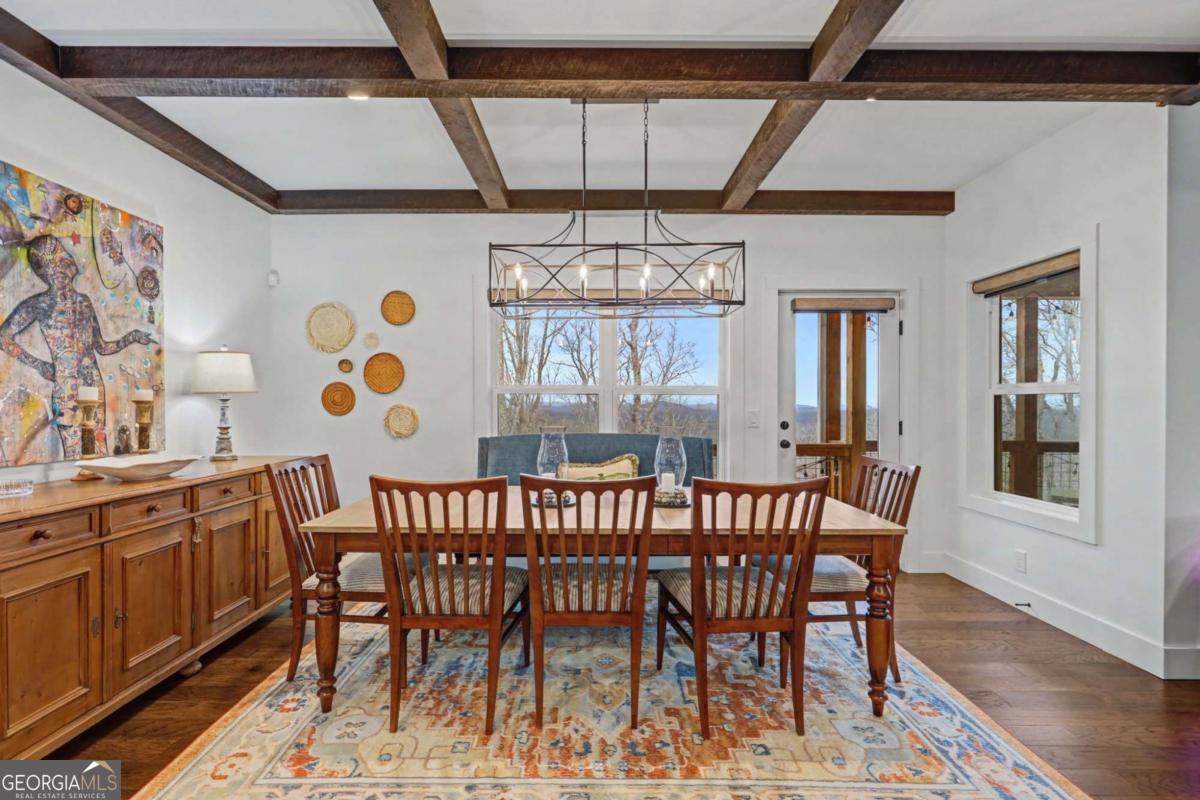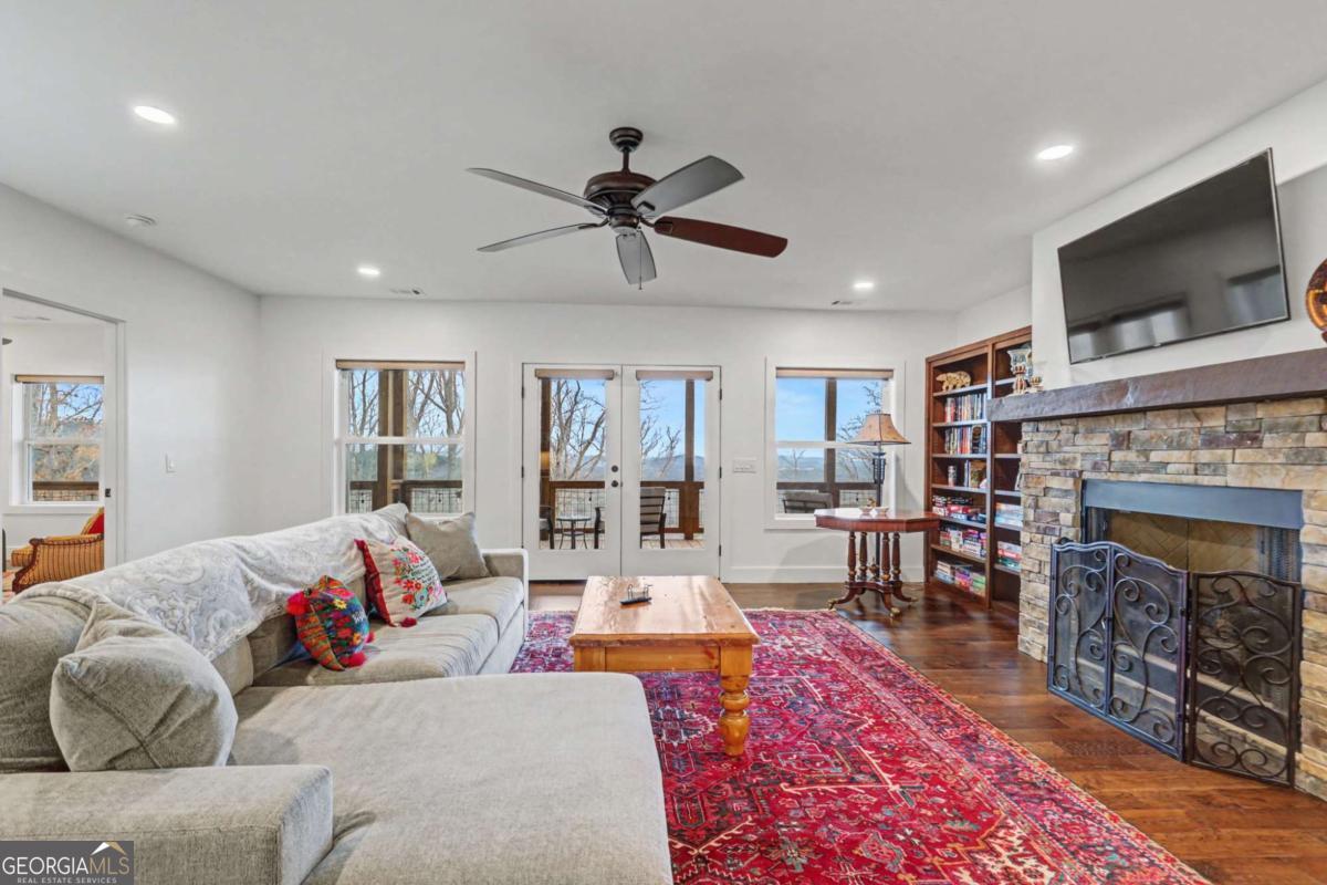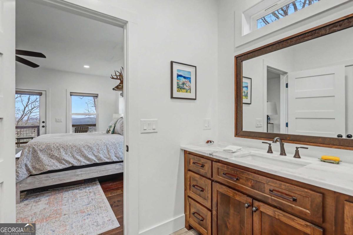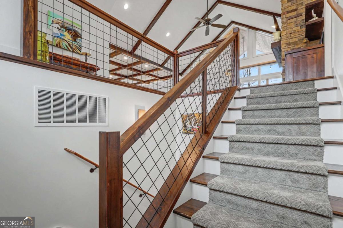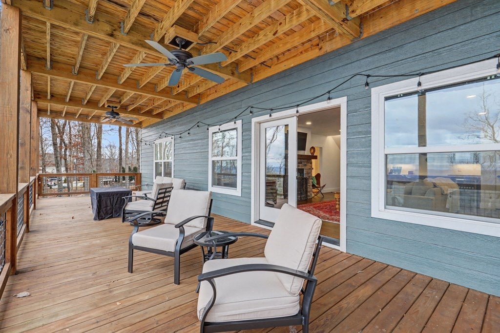 Welcome to refined mountain and lake living in the prestigious Crown Point enclave of Highland Park, complete with a deeded boat slip with lift at the community marina on Lake Nottely. This exceptional residence blends upscale finishes, thoughtful architecture, and natural surroundings to create a true retreat or an executive home worthy of its setting. Every detail reflects comfort, quality, and timeless design, with the boat slip providing an exceptional bonus for owners who value premium care and protection for their vessel. Step inside the home to experience unparalleled craftsmanship at every turn, from the stately coffered ceilings to the expansive picture windows that capture sweeping, panoramic views from nearly every angle. Natural light fills the open living spaces, creating a warm atmosphere. The chefs kitchen features a generous center island, gas range with vent hood, and a dedicated pantry, serving as the heart of the home for entertaining or everyday living. The spacious floor plan offers 4 bedrooms and 3.5 baths, including the refined luxury of two main-level ensuite bedroom sanctuaries, with the primary suite enjoying private access to the deck. This rare configuration allows for effortless one-level living while providing comfort and privacy for guests. The finished terrace level adds versatility to the home with an additional living area, 2 bedrooms, and a full bath-ideal for a private retreat. Outdoor living is equally impressive. Covered rear porches on every level deliver outstanding, layered views of Lake Nottely and the surrounding mountains. Perfectly positioned to face west, the home captures unforgettable sunset skies that transform each evening into a private show. Residents of Highland Park enjoy a gated, amenity-rich lifestyle with a beautifully appointed clubhouse, theater room, fitness center, childrens area, and a striking infinity-edge pool overlooking the lake, all within one of Blairsvilles most sought-after gated communities.