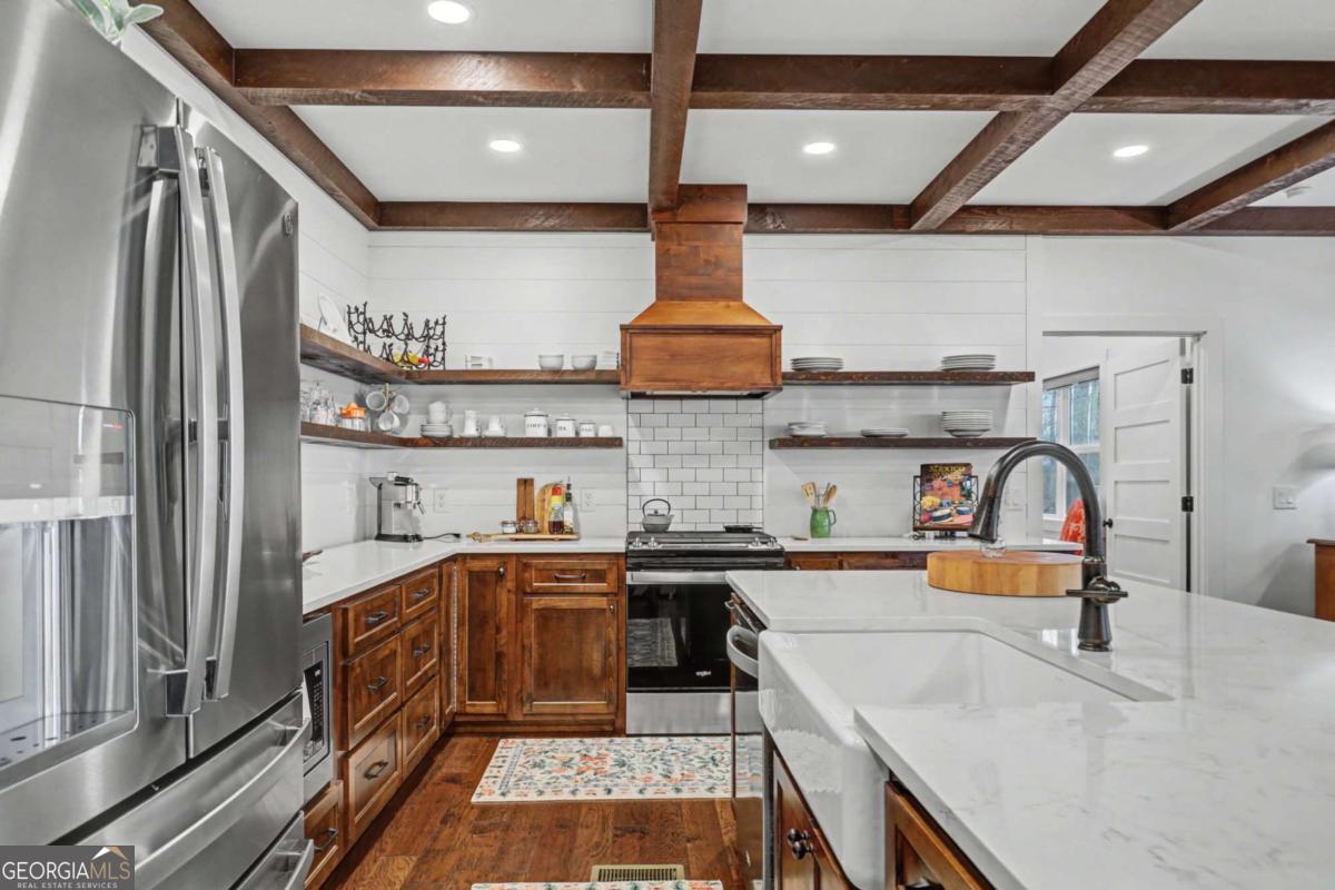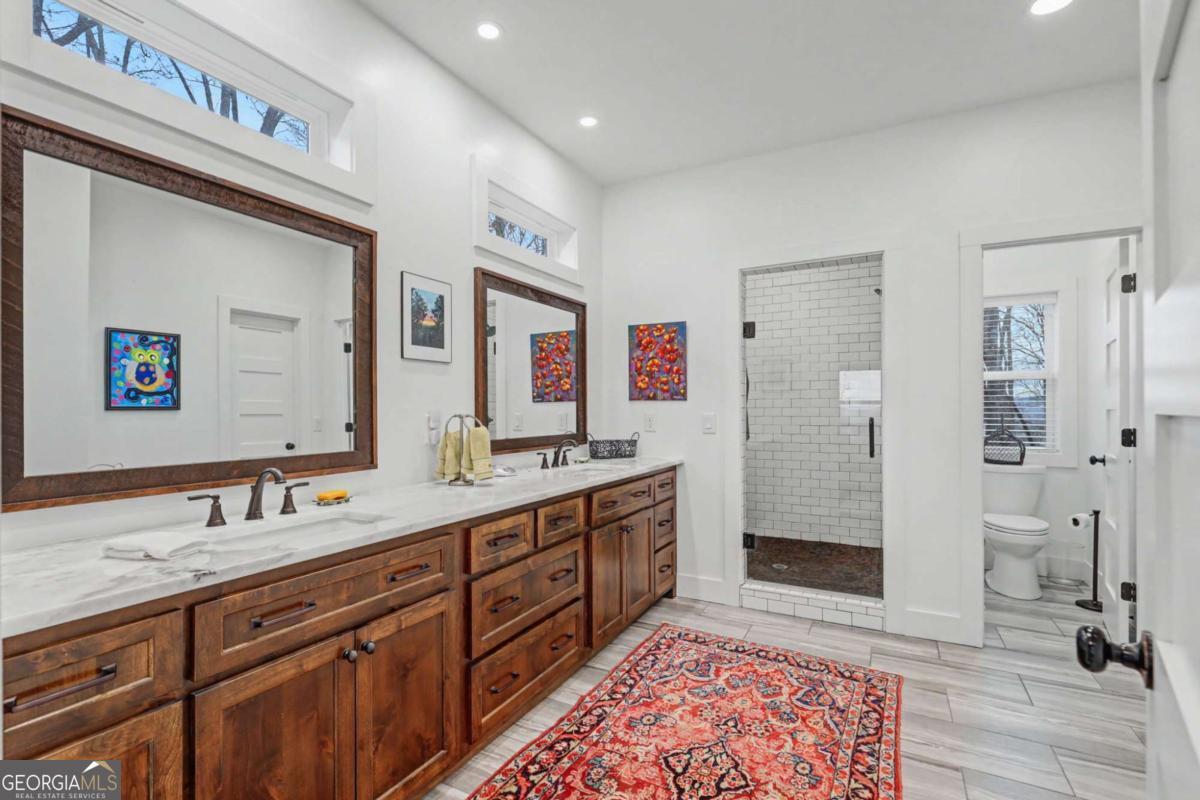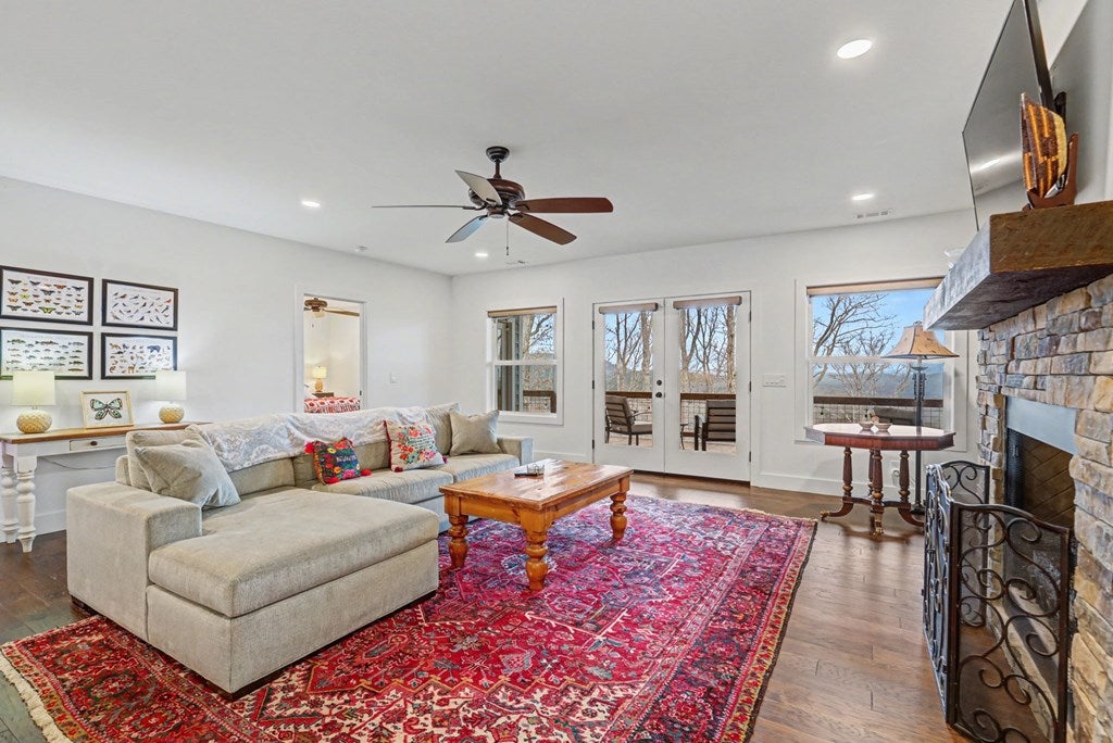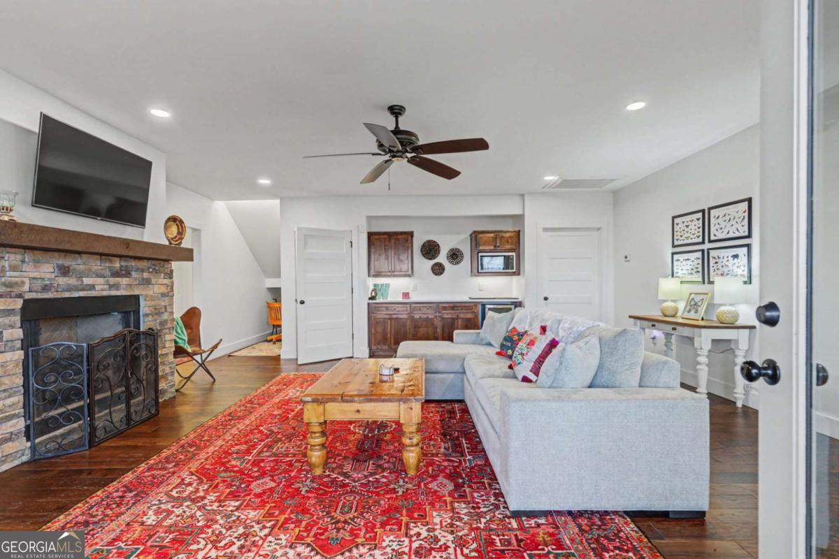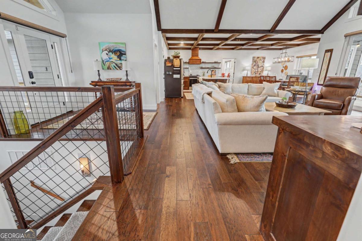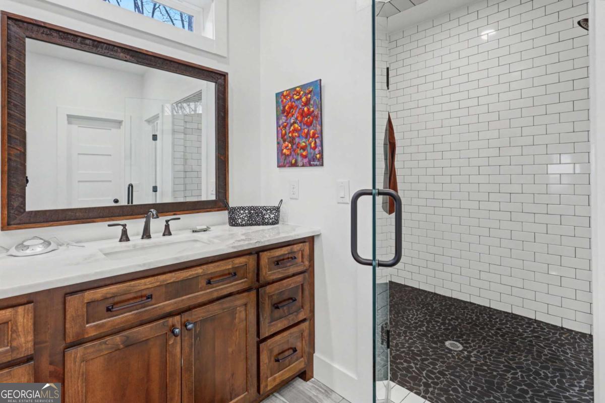 Welcome to refined mountain and lake living in the prestigious Crown Point enclave of Highland Park, complete with a deeded boat slip with lift at the community marina on Lake Nottely. This exceptional residence blends upscale finishes, thoughtful architecture, and natural surroundings to create a true retreat or an executive home worthy of its setting. Every detail reflects comfort, quality, and timeless design, with the boat slip providing an exceptional bonus for owners who value premium care and protection for their vessel. Step inside the home to experience unparalleled craftsmanship at every turn, from the stately coffered ceilings to the expansive picture windows that capture sweeping, panoramic views from nearly every angle. Natural light fills the open living spaces, creating a warm atmosphere. The chefs kitchen features a generous center island, gas range with vent hood, and a dedicated pantry, serving as the heart of the home for entertaining or everyday living. The spacious floor plan offers 4 bedrooms and 3.5 baths, including the refined luxury of two main-level ensuite bedroom sanctuaries, with the primary suite enjoying private access to the deck. This rare configuration allows for effortless one-level living while providing comfort and privacy for guests. The finished terrace level adds versatility to the home with an additional living area, 2 bedrooms, and a full bath-ideal for a private retreat. Outdoor living is equally impressive. Covered rear porches on every level deliver outstanding, layered views of Lake Nottely and the surrounding mountains. Perfectly positioned to face west, the home captures unforgettable sunset skies that transform each evening into a private show. Residents of Highland Park enjoy a gated, amenity-rich lifestyle with a beautifully appointed clubhouse, theater room, fitness center, childrens area, and a striking infinity-edge pool overlooking the lake, all within one of Blairsvilles most sought-after gated communities.