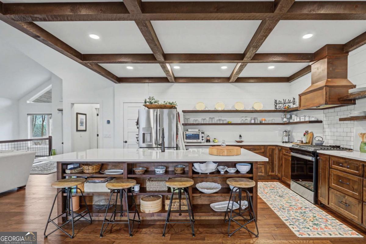 Welcome to refined mountain and lake living in the prestigious Crown Point enclave of Highland Park, complete with a deeded boat slip with lift at the community marina on Lake Nottely. This exceptional residence blends upscale finishes, thoughtful architecture, and natural surroundings to create a true retreat or an executive home worthy of its setting. Every detail reflects comfort, quality, and timeless design, with the boat slip providing an exceptional bonus for owners who value premium care and protection for their vessel. Step inside the home to experience unparalleled craftsmanship at every turn, from the stately coffered ceilings to the expansive picture windows that capture sweeping, panoramic views from nearly every angle. Natural light fills the open living spaces, creating a warm atmosphere. The chefs kitchen features a generous center island, gas range with vent hood, and a dedicated pantry, serving as the heart of the home for entertaining or everyday living. The spacious floor plan offers 4 bedrooms and 3.5 baths, including the refined luxury of two main-level ensuite bedroom sanctuaries, with the primary suite enjoying private access to the deck. This rare configuration allows for effortless one-level living while providing comfort and privacy for guests. The finished terrace level adds versatility to the home with an additional living area, 2 bedrooms, and a full bathideal for a private retreat. Outdoor living is equally impressive. Covered rear porches on every level deliver outstanding, layered views of Lake Nottely and the surrounding mountains. Perfectly positioned to face west, the home captures unforgettable sunset skies that transform each evening into a private show. Residents of Highland Park enjoy a gated, amenity-rich lifestyle with a beautifully appointed clubhouse, theater room, fitness center, childrens area, and a striking infinity-edge pool overlooking the lake, all within one of Blairsvilles most sought-after gated communities.