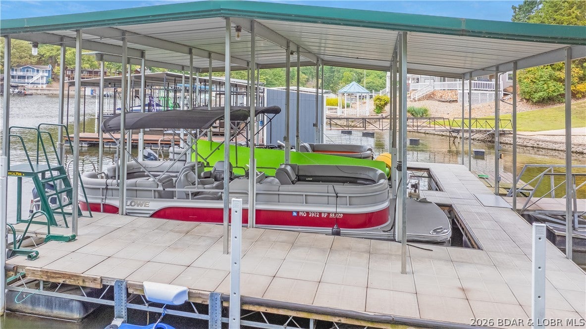 Exceptional turnkey waterfront investment opportunity at Lake of the Ozarks featuring 2 homes on 1 premier lakefront property at the 24MM. This proven high-demand vacation rental is being offered fully furnished and is designed to maximize both guest experience and income potential. The main home offers 7 private ensuite bedrooms, vaulted ceilings, spacious open-concept living, large kitchen, game room, full bar, and multiple lakeside decks. The guest home adds 2 additional ensuite bedrooms, full kitchen, living space, and upper/lower lakeview deckscreating ideal flexibility for larger groups and premium rental performance. Situated on 1.17 acres with 171 of waterfront in a quiet cove just off the main channel, the outdoor setup is a major draw with a private dock featuring 2 boat slips, PWC lift, swim dock, beach area, hot tub, fire pit, and large yard. Recent updates include new roof and HVAC. Rarely does a property combine size, sleeping capacity, amenities, location, and proven rental appeal this well. A standout opportunity for investors seeking a high-capacity, income-producing lake asset.