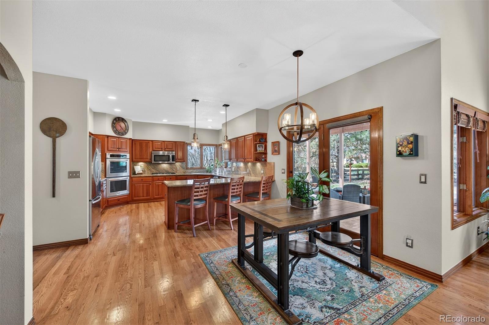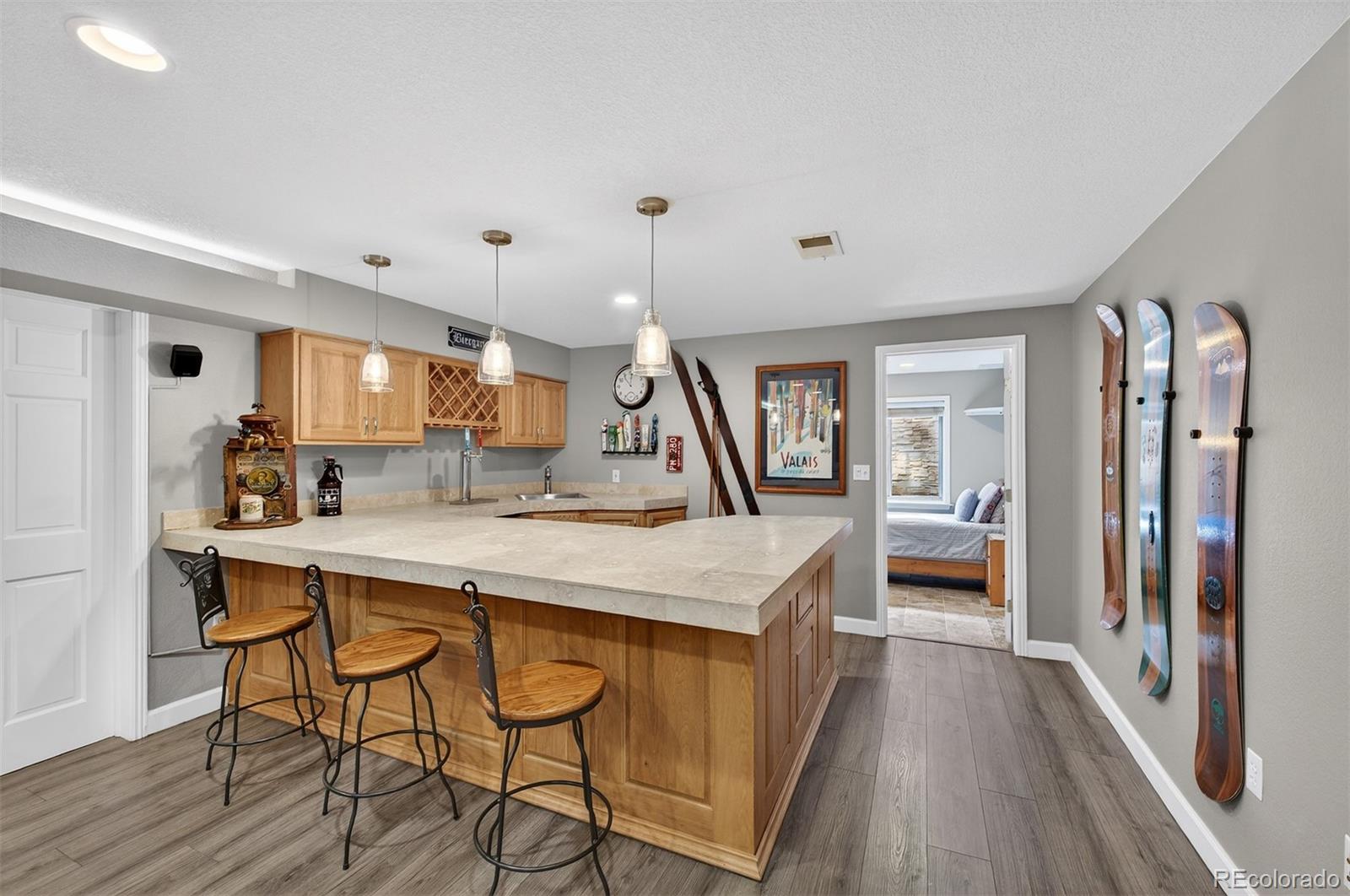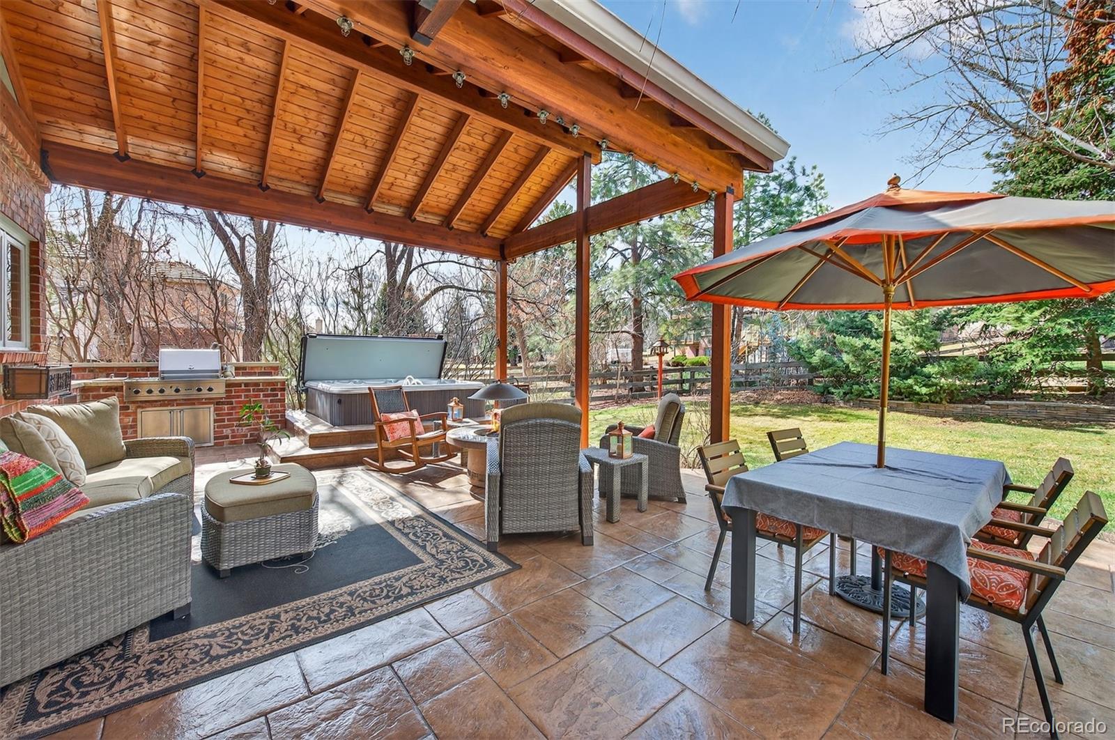 Welcome to this exceptional custom home in North Ranch at Ken Caryl Valley, perfectly positioned on a quiet street just moments from Bradford Pool, tennis courts, and scenic neighborhood parks. Bathed in natural light, this elegant residence offers a seamless blend of comfort and sophistication. The main level is thoughtfully designed with a private study, formal living and dining rooms, an expansive mud and laundry room, and a stunning great room that effortlessly connects to the kitchen, ideal for both everyday living and entertaining. The kitchen is warm and inviting, featuring rich cherry cabinetry, a pantry, abundant storage, an eat-in dining area, and a generous breakfast bar, perfect for gathering with family and friends. Upstairs, the luxurious primary suite serves as a true retreat, complete with dual closets and a spa-inspired bath featuring dual vanities and heated floors. Three additional bedrooms and two well-appointed bathrooms provide ample space for family and guests. The finished basement is an entertainers dream, offering a guest bedroom, a bath, and an expansive game room with a statement wet bar, beverage refrigerator, and draft beer tower, creating the perfect setting for hosting and relaxation. Step outside to your own private outdoor oasis custom-created by Mosaic Outdoor Living. Surrounded by mature trees, the beautifully designed backyard features a covered stamped-concrete patio, an outdoor kitchen with a Viking grill, a natural gas fire pit, a hot tub, and a flat lawn, offering the perfect balance of tranquility and space to play or entertain. Hardwood FloorsFront PorchTile RoofOversized 3-Car Garage. Residents enjoy premier community amenities including three pools, miles of interior trails, 4,800 acres of private open space, tennis and pickleball courts, an equestrian center, and numerous parks and playgrounds.
