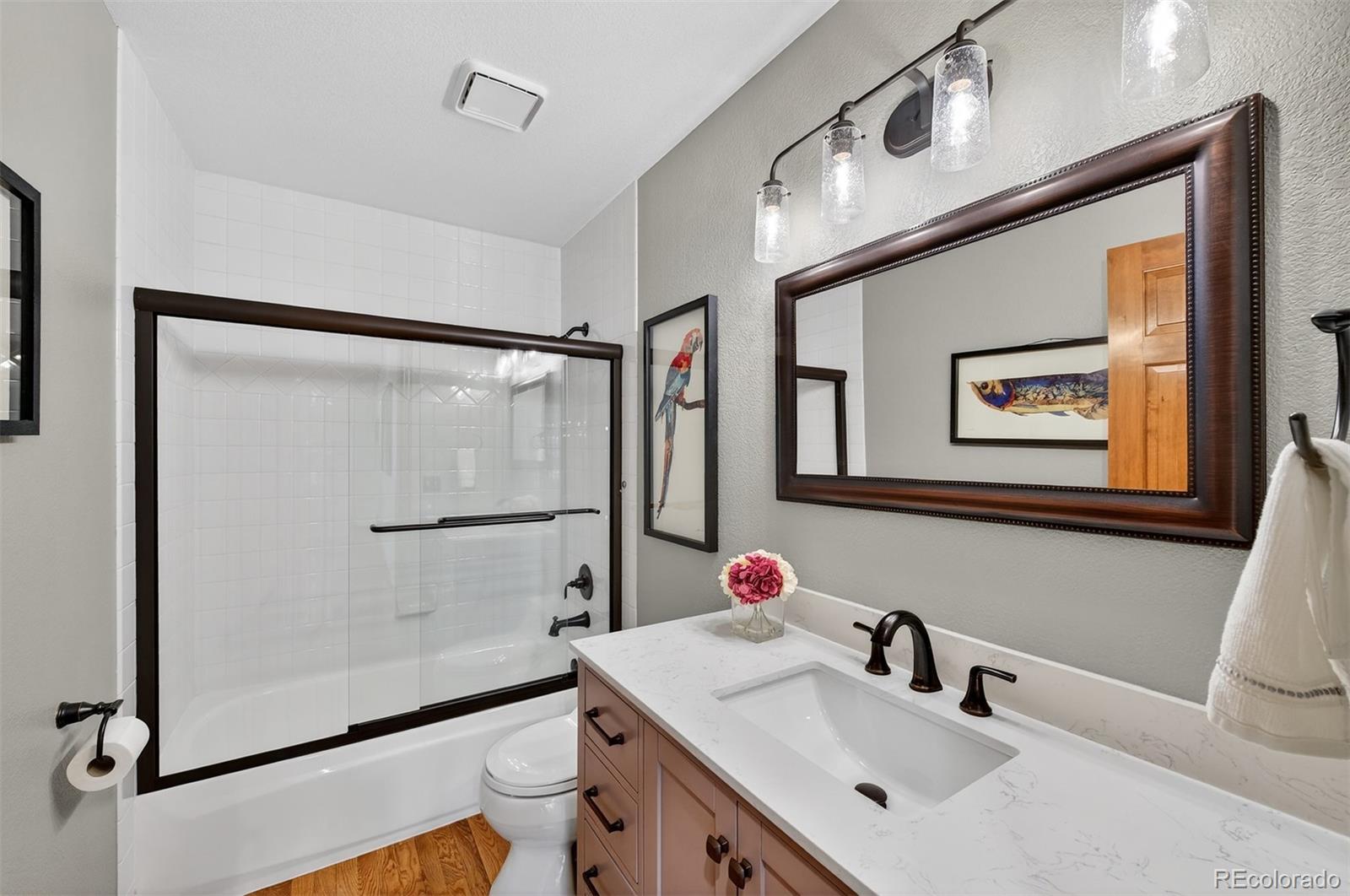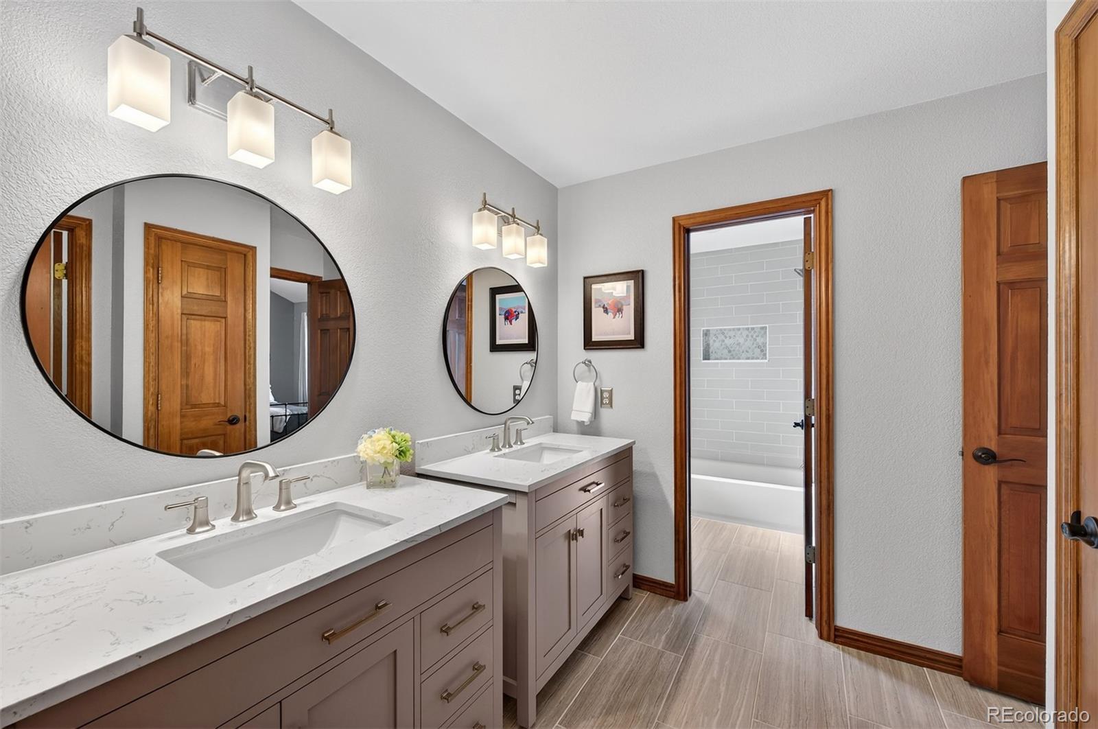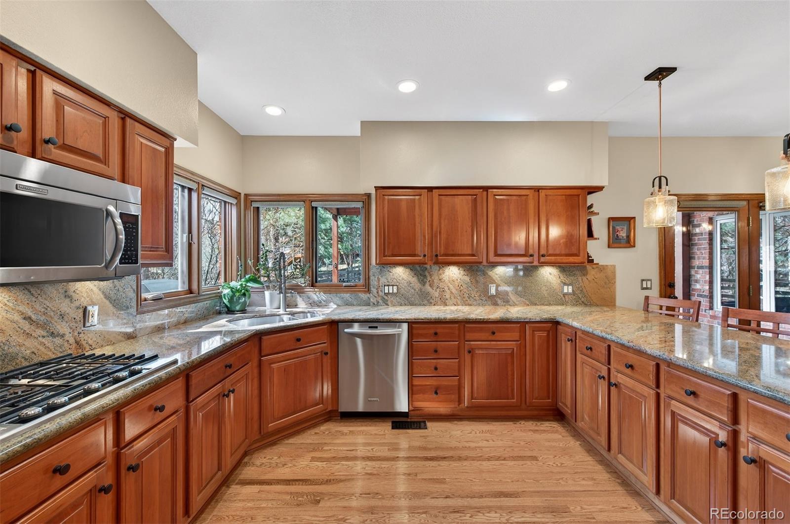 Welcome to this exceptional custom home in North Ranch at Ken Caryl Valley, perfectly positioned on a quiet street just moments from Bradford Pool, tennis courts, and scenic neighborhood parks. Bathed in natural light, this elegant residence offers a seamless blend of comfort and sophistication. The main level is thoughtfully designed with a private study, formal living and dining rooms, an expansive mud and laundry room, and a stunning great room that effortlessly connects to the kitchen, ideal for both everyday living and entertaining. The kitchen is warm and inviting, featuring rich cherry cabinetry, a pantry, abundant storage, an eat-in dining area, and a generous breakfast bar, perfect for gathering with family and friends. Upstairs, the luxurious primary suite serves as a true retreat, complete with dual closets and a spa-inspired bath featuring dual vanities and heated floors. Three additional bedrooms and two well-appointed bathrooms provide ample space for family and guests. The finished basement is an entertainers dream, offering a guest bedroom, a bath, and an expansive game room with a statement wet bar, beverage refrigerator, and draft beer tower, creating the perfect setting for hosting and relaxation. Step outside to your own private outdoor oasis custom-created by Mosaic Outdoor Living. Surrounded by mature trees, the beautifully designed backyard features a covered stamped-concrete patio, an outdoor kitchen with a Viking grill, a natural gas fire pit, a hot tub, and a flat lawn, offering the perfect balance of tranquility and space to play or entertain. Hardwood FloorsFront PorchTile RoofOversized 3-Car Garage. Residents enjoy premier community amenities including three pools, miles of interior trails, 4,800 acres of private open space, tennis and pickleball courts, an equestrian center, and numerous parks and playgrounds.