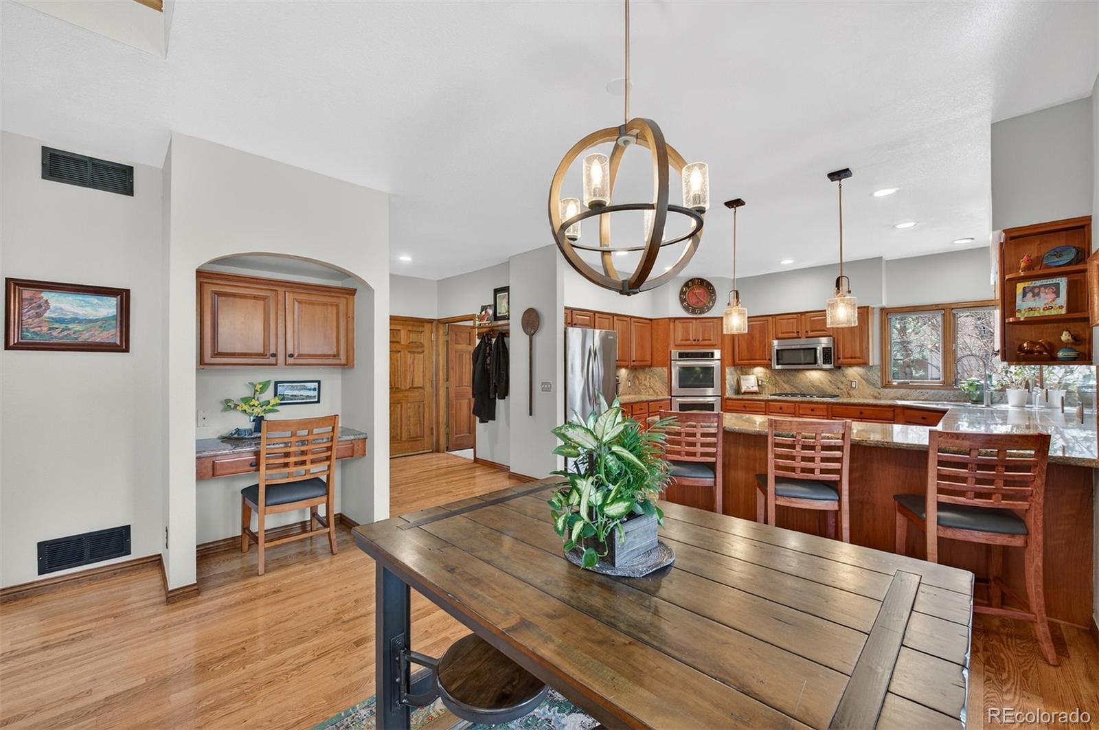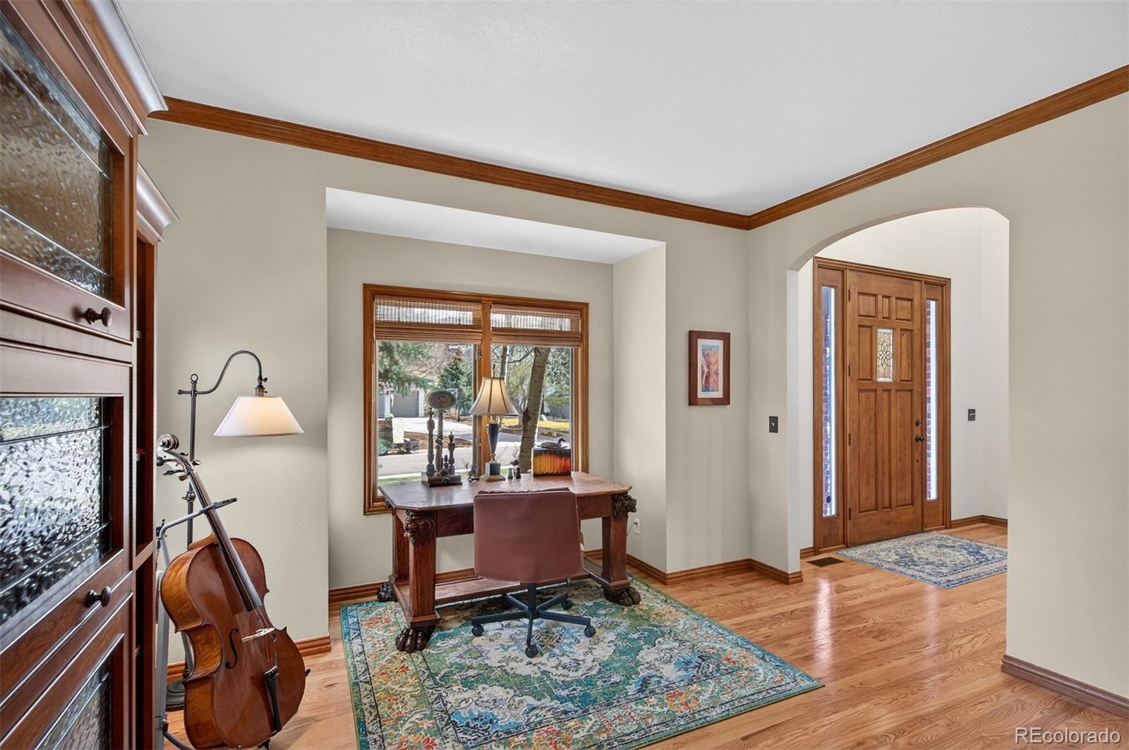 Welcome to this exceptional custom home in North Ranch at Ken Caryl Valley, perfectly positioned on a quiet street just moments from Bradford Pool, tennis courts, and scenic neighborhood parks. Bathed in natural light, this elegant residence offers a seamless blend of comfort and sophistication.