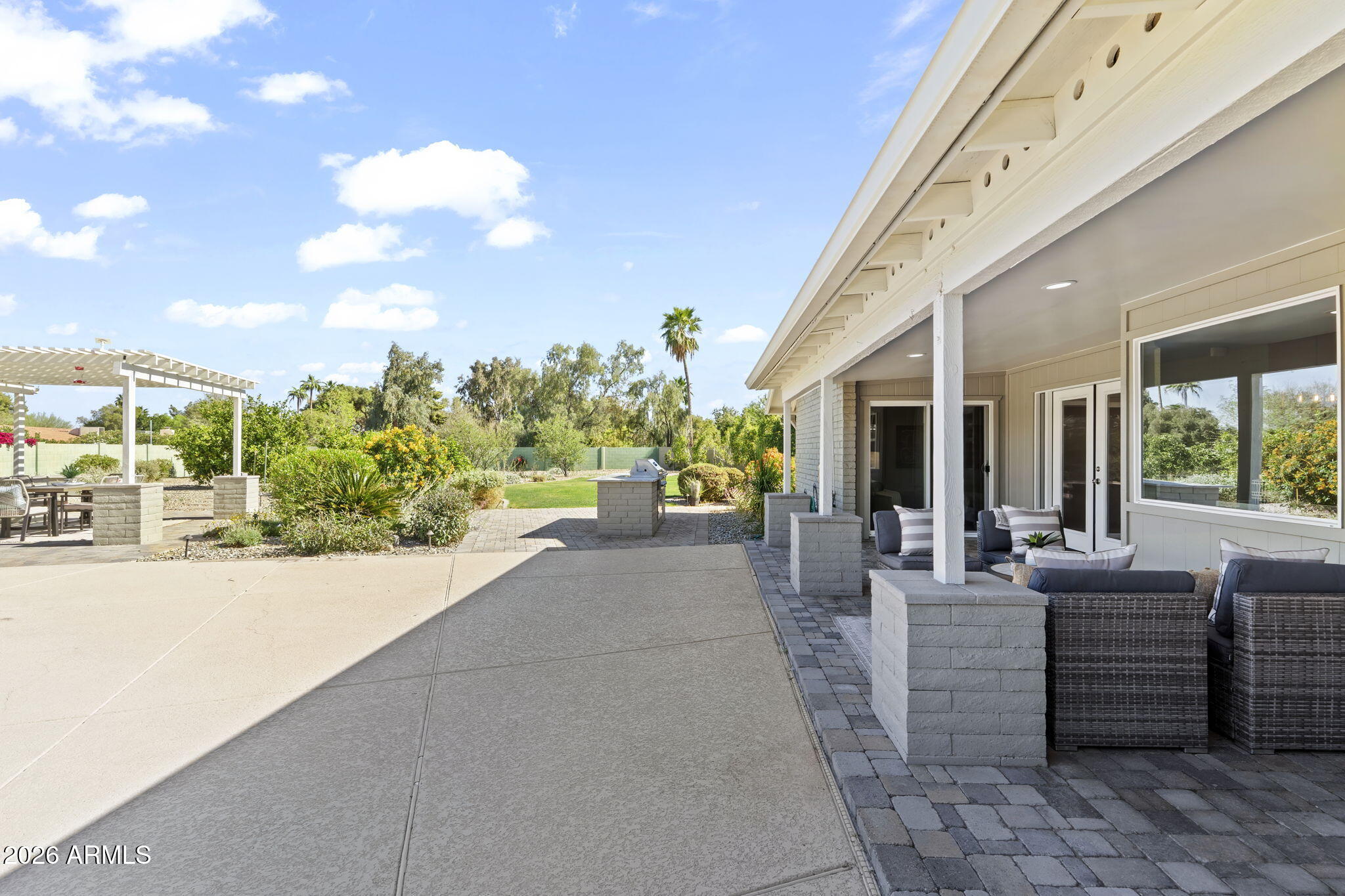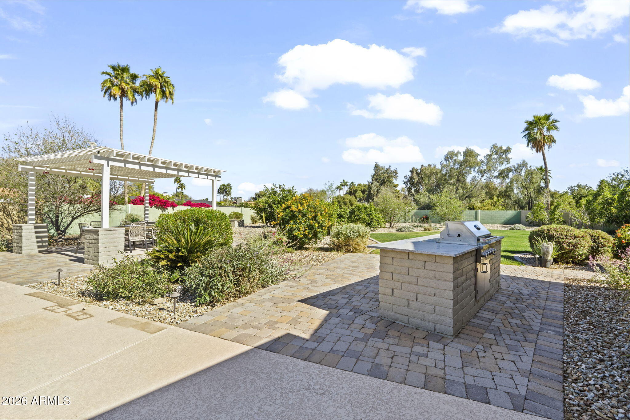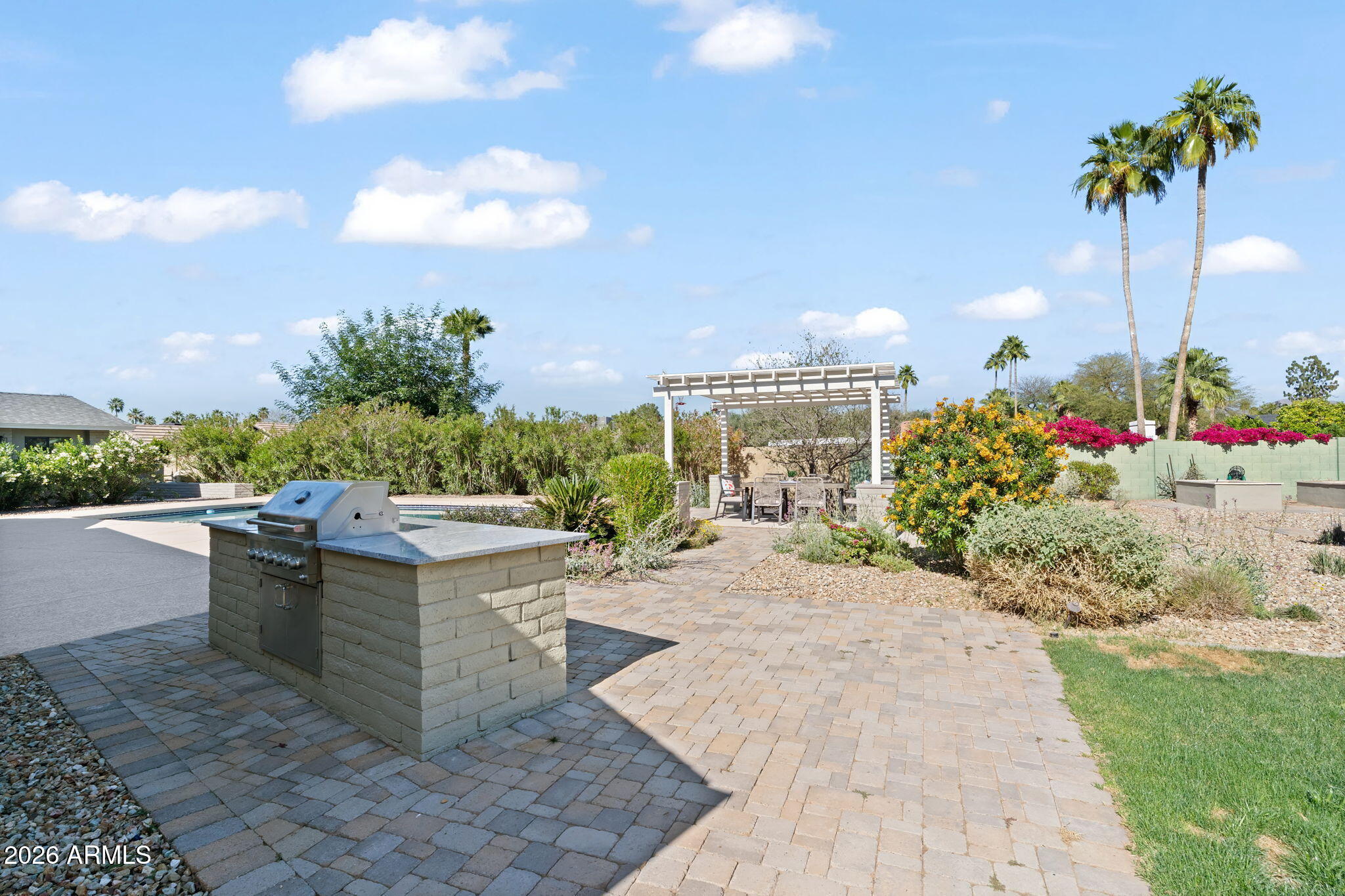 HUGE 24,000 sq ft cul-de-sac lot in coveted Buenavante! NO HOA! This fully remodeled home is a true surprise--unassuming at first, but unforgettable once inside. Open the front door and youre immediately met with soaring ceilings, a split floor plan, and beautifully updated interiors that deliver an instant wow. The kitchen is best in class, featuring a large island, honed marble countertops, double dishwashers, a 48 Thermador gas range with vent hood and pot filler, and a Thermador side-by-side refrigerator. At the heart of the home, a large great room anchors the space with a two-way fireplace connecting the kitchen, dining, and family areas. The layout offers 3 bedrooms plus a bonus room and dedicated office, with secondary bedrooms separated by a flex space ideal for a den, playroom, or teen retreat.If the home impresses, just wait until you walk through the French doors into the ultra-secluded, expansive backyard. The scale and sense of privacy are unexpected--especially this close to everyday amenities--creating a rare feeling of openness. Mature landscaping surrounds a large pool with a baja deck, along with pergola dining, a built-in grill, a storage shed, and paver patios and walkways throughout. The space offers unmatched flexibility--whether you envision a guest house, a pickleball court, or simply keeping it open to enjoy.Rare 4-car garage w RV gate, owned solar, whole house fan and newer roof complete the package. Do not miss this one!!! Minutes from shopping and dining at Kierland Commons, the Scottsdale Quarter, A Sonoran Sky Elementary and the JCC. Easy 101 access.